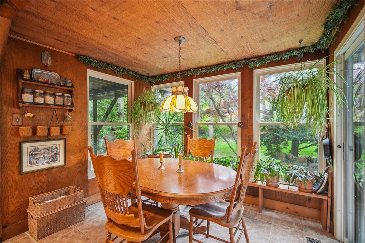 • Open concept living/dining area with custom wood wainscoting.
