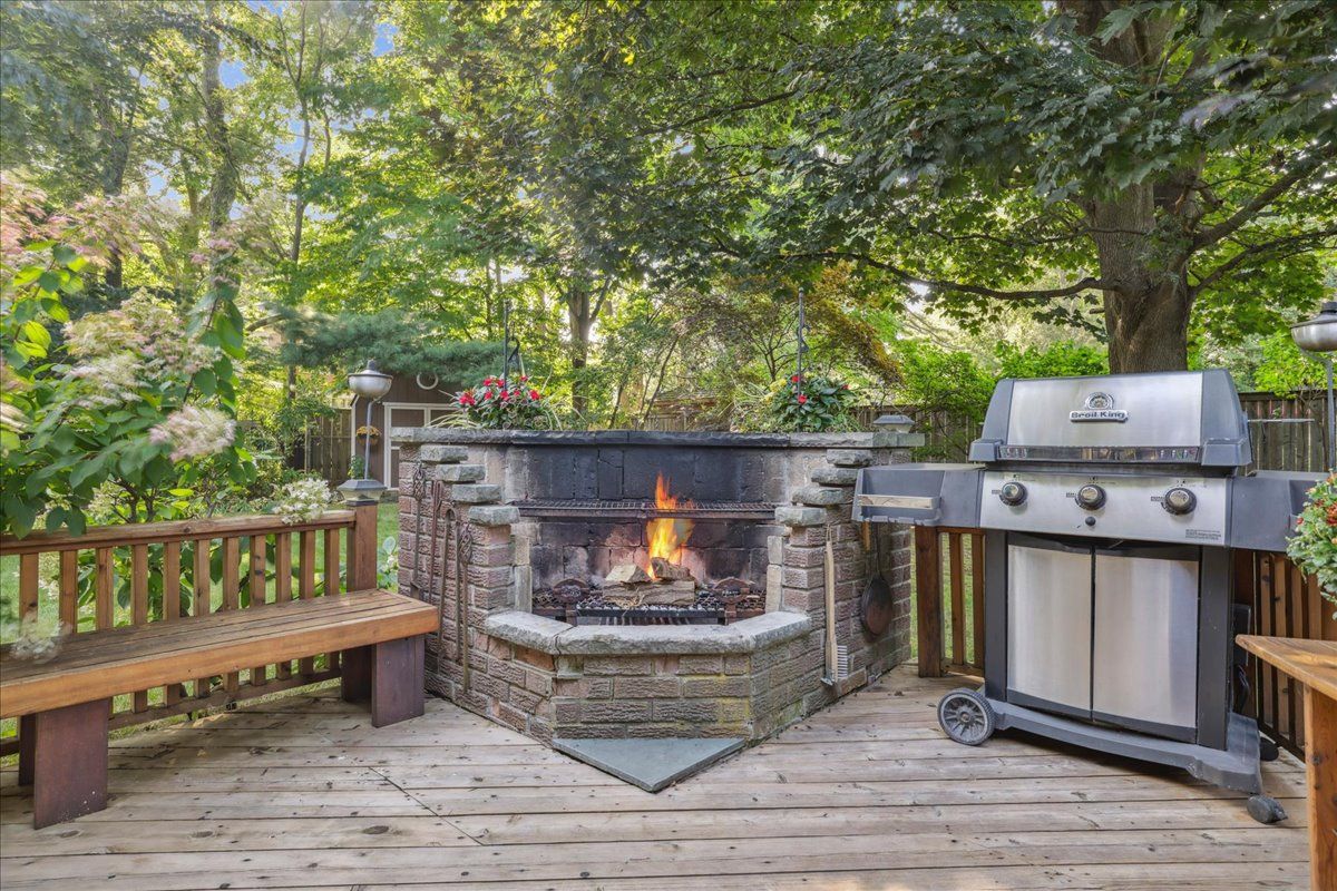 Welcome to 250 gatestone avenue- where every season feels like home! Tucked away on a picturesque tree - lined street, this pride of ownership home is situated in a sought after neighborhood of east oakville. Sprawling property of 100 x 150 ft lot size is surrounded by mature trees , professionally landscaped complete w/irrigation and shed (2020). This 5 bedroom home has elegant curb appeal and the driveway conveniently accommodates 6 vehicles with an additional double car garage ! Step inside the covered veranda to an oversized foyer featuring a solid wood staircase and lots of natural light from the bay windows showcasing the front gardens. Elegant living room/dining room open concept, carpet free w/custom wood wainscoting. The eat-in kitchen is complete with island, desk area and walk out to a private deck, ideal for entertaining around the outdoor fireplace perfect for your own personal escape. The family room has a cozy wood fireplace w/ walk-out to the backyard deck. The home boasts over 3500 square ft of total liveable space, all five bedrooms on the second level are generous in size and offer comfort and connection for the family . The spacious primary has double door entry , ensuite privileges (renovated 2019) walk in closet and a balcony accommodating lounge chairs and table. The lower level is timeless w/solid wood wet bar and bar fridge and oversized recreation room w/custom wood built-in shelves and wood panelling. An additional bathroom , work shop, cedar closet and tons of storage! Excellent schools in the area such as st. Vincents, oakville trafalgar highschool, maple grove public school, st. Mildreds lightbourne schools and close proximity to qew. Follow your dream, home.