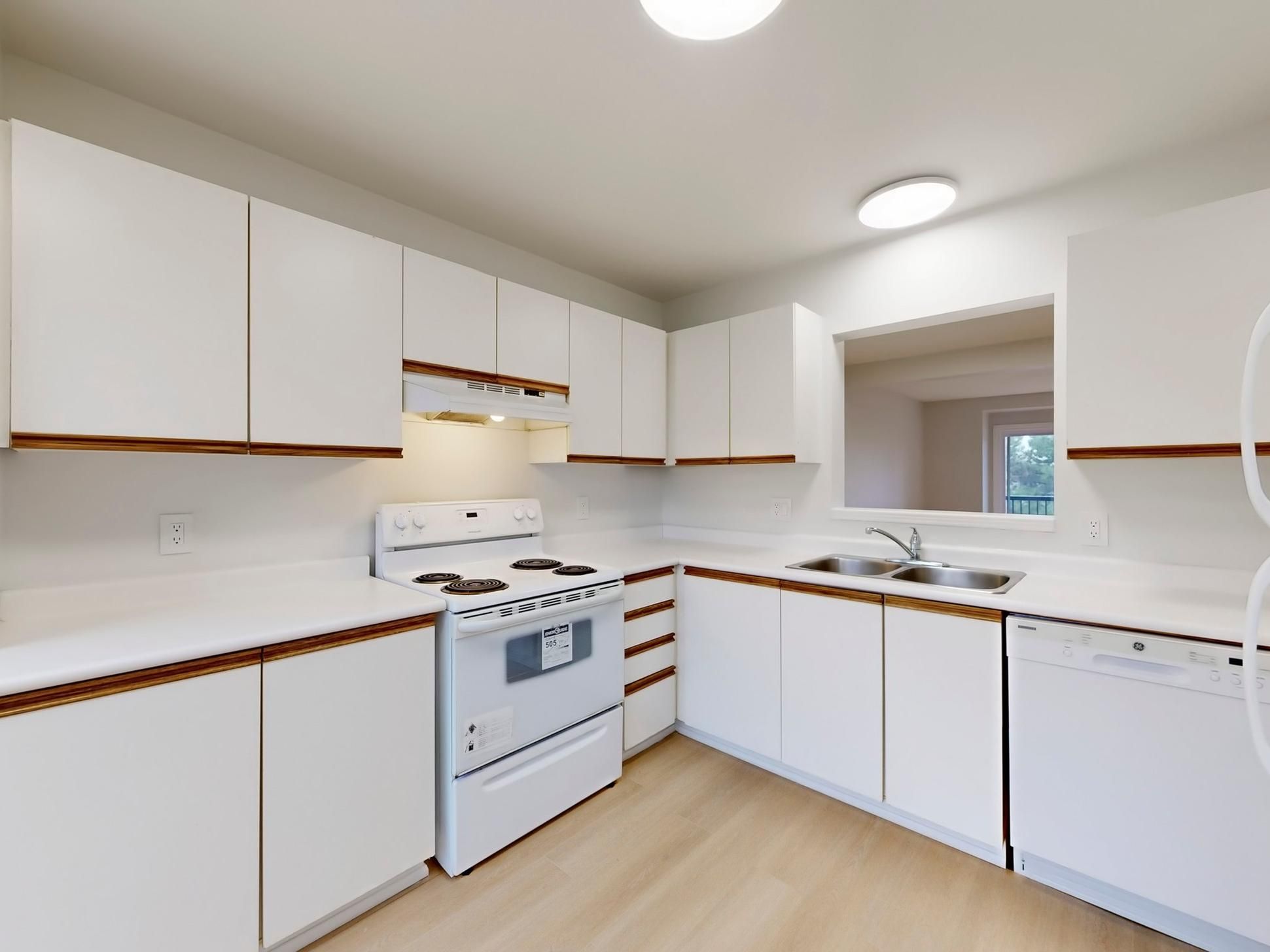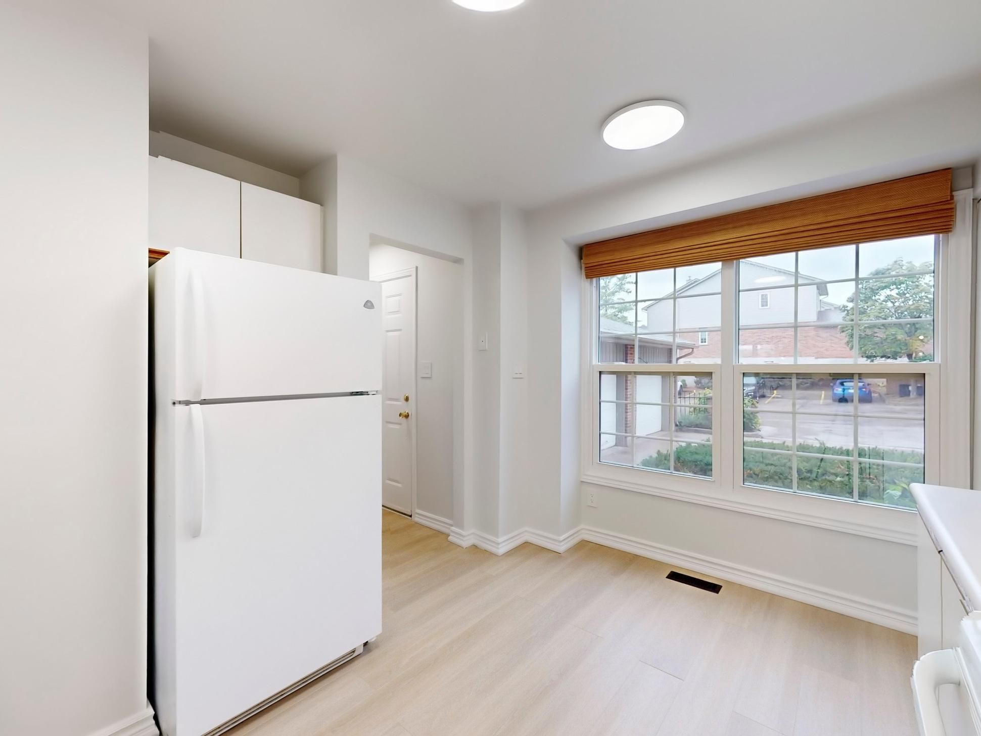 • Sunny eat-in kitchen with plenty of cabinetry for storage.
