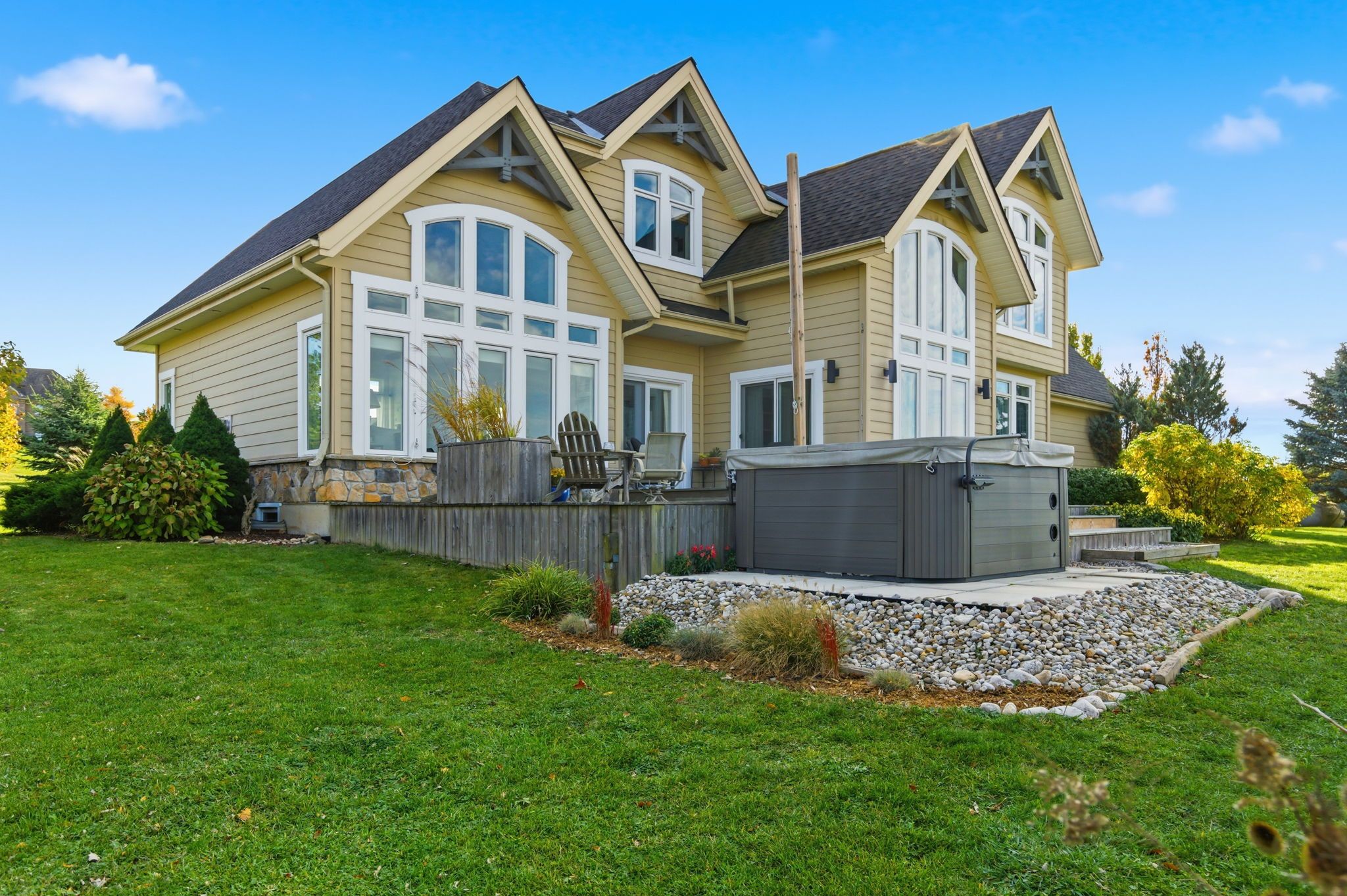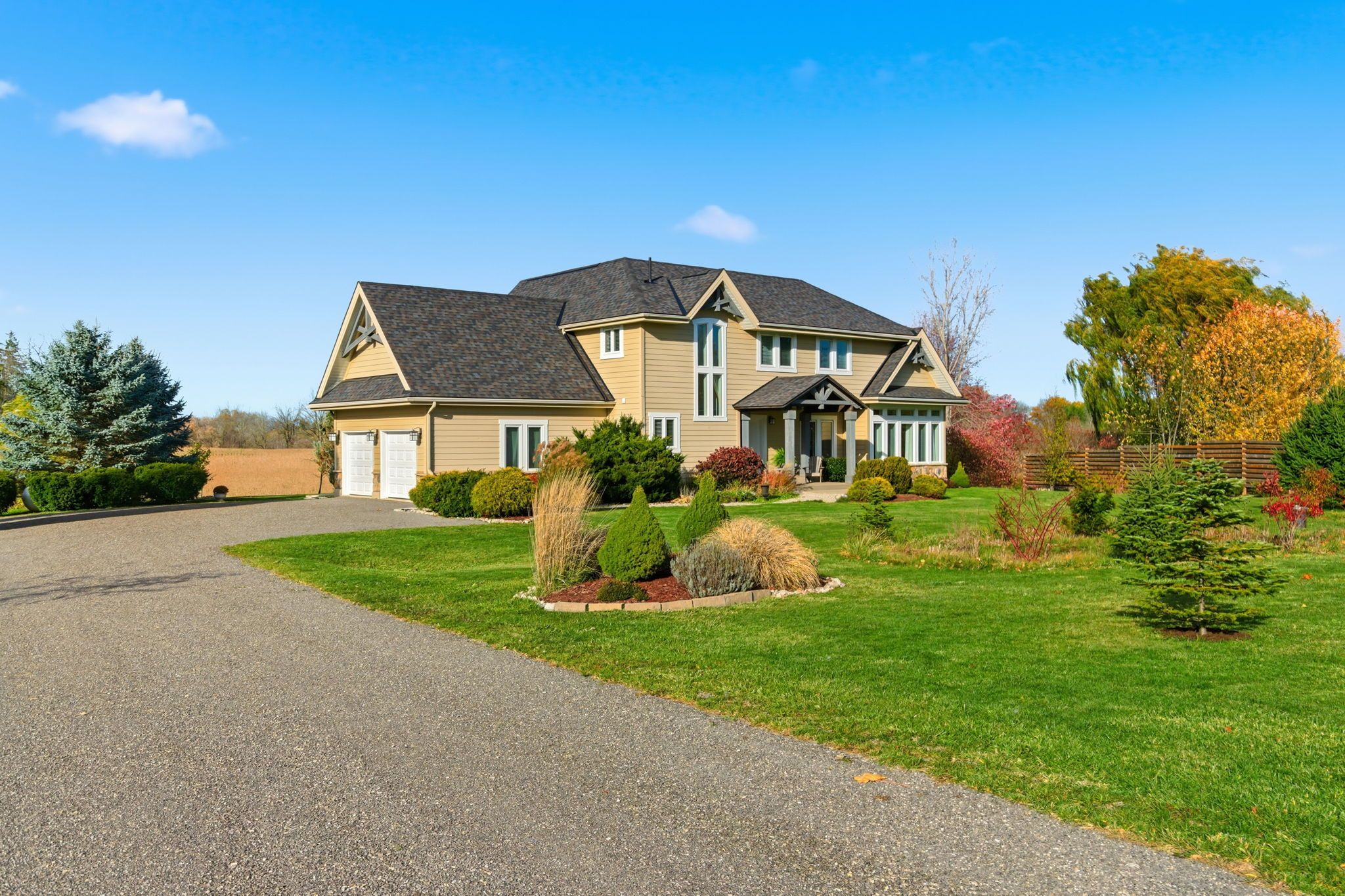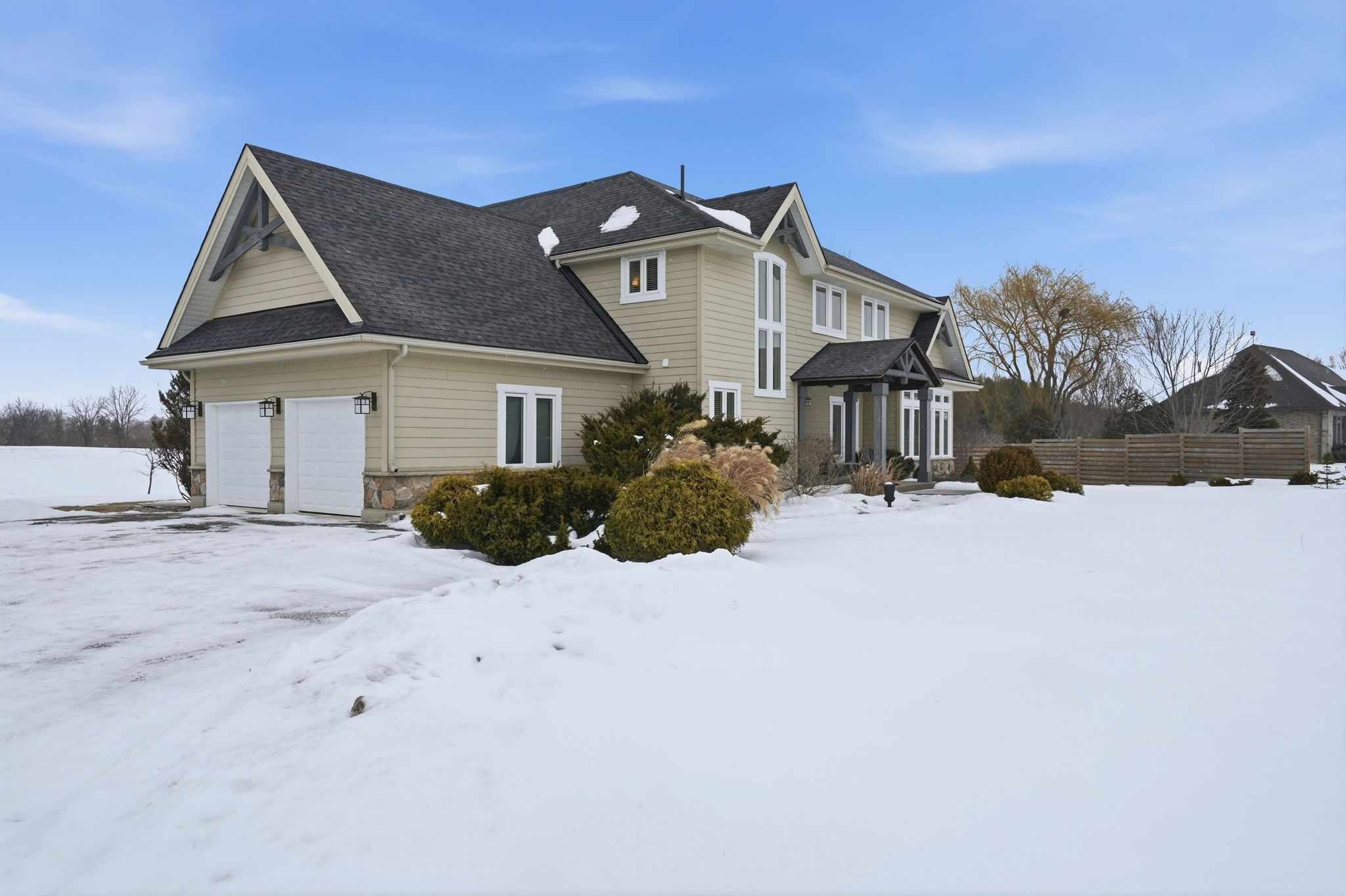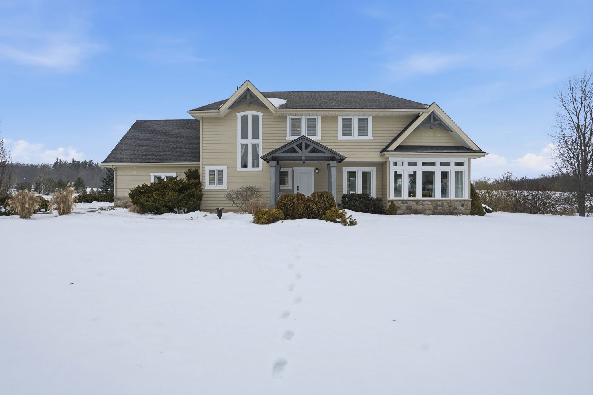 Beautifully positioned on a serene 196 x 240-foot lot, welcome to 250 old onondaga road east, a spacious, custom-built home located in a quiet rural setting in brant county. Featuring 3 generous bedrooms, 2. 5 bathrooms, and a thoughtfully designed floor plan with large principal rooms, this home impresses from the moment you step inside. A fabulous foyer welcomes you into the home, where abundant natural light greets you. In the great room, your attention naturally gravitates to the soaring 15-foot vaulted ceiling, the stunning valor fireplace, and the perfectly framed windows that connect your sightlines to the surrounding outdoors. The dining room is both elegant and captivating, featuring a 17-foot vaulted ceiling, tall windows and beautiful maple hardwood. The kitchen is thoughtfully appointed with stainless steel appliances, abundant cabinetry, and generous counter space. Completing the main floor is a mudroom with inside access from the garage and a tasteful 2-piece bathroom. Make your way upstairs to the spacious primary bedroom, a private retreat of its own, featuring a generous walk-in closet and a 3-piece bathroom. Two additional bedrooms share a 4-piece bathroom. The carefully selected details and design, including an interior balcony, accent walls, and the 12-foot vaulted ceiling in the primary suite, enhance the home's overall character and style. The large, open basement offers the opportunity to create your own layout and design, complete with a roughed-in bathroom and a dedicated laundry area. Enjoy ample parking for vehicles in the double garage and expansive driveway. Breathtaking in every season, the backyard features a large deck, hot tub, firepit, and open green space, with the sights and sounds of local wildlife providing a serene, natural backdrop. This peaceful yet connected location is just a short drive to schools, amenities, golf courses, and conservation areas, with easy access to major commuting routes.