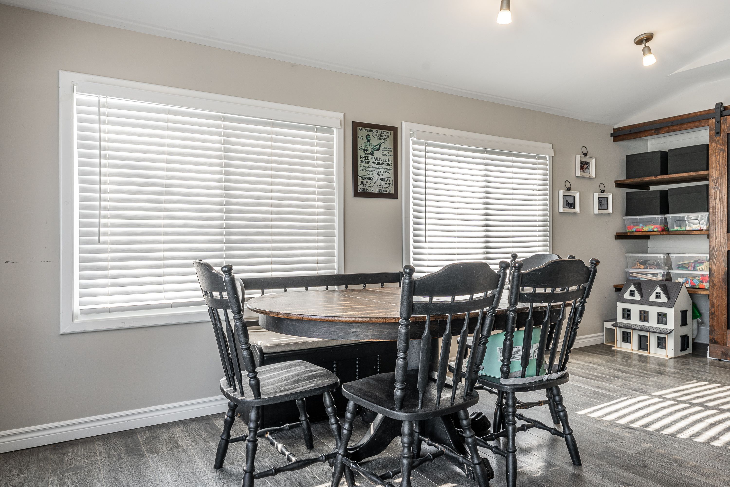 • Insulated garage with heating, cooling, and plenty of storage space.