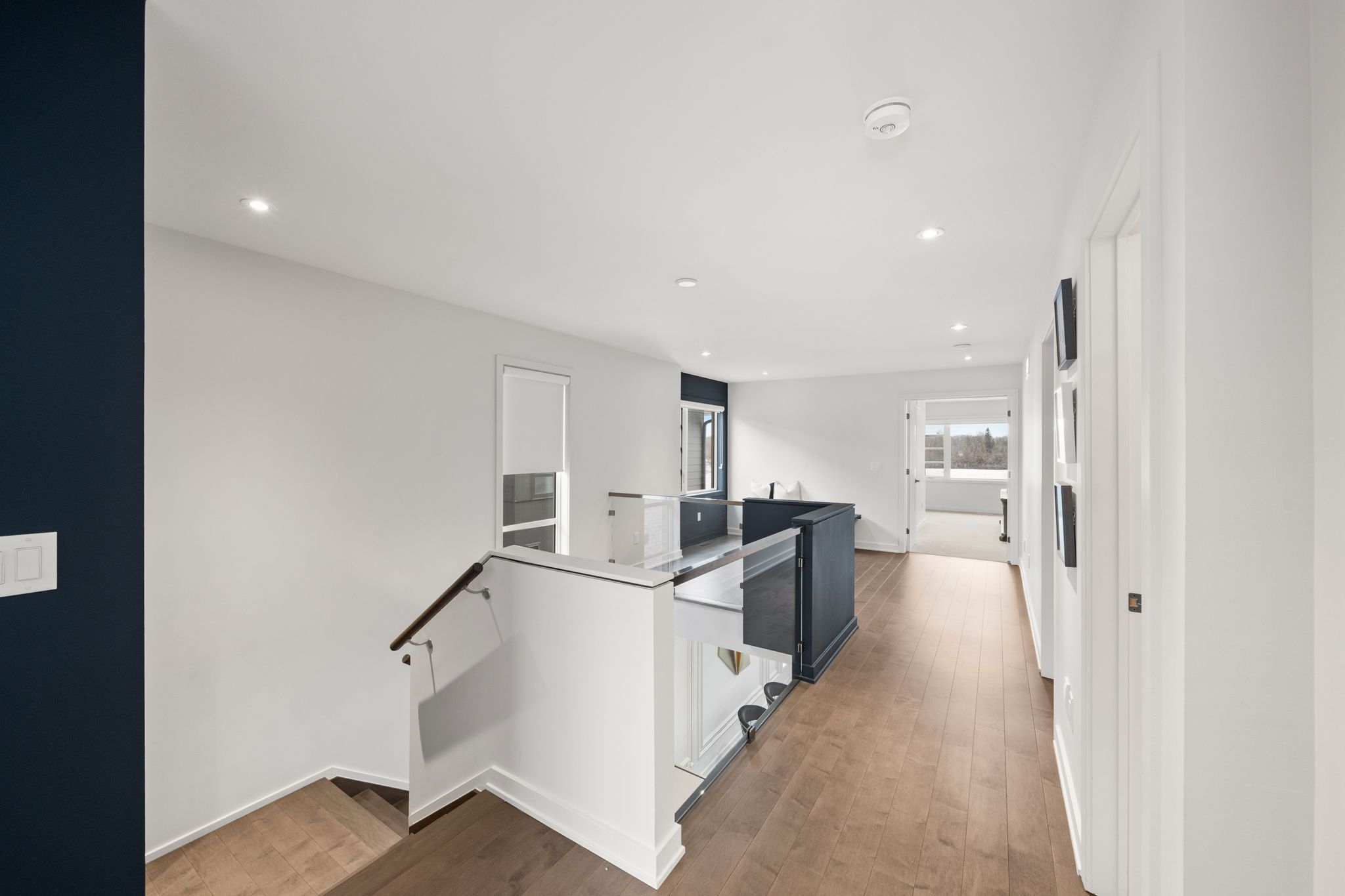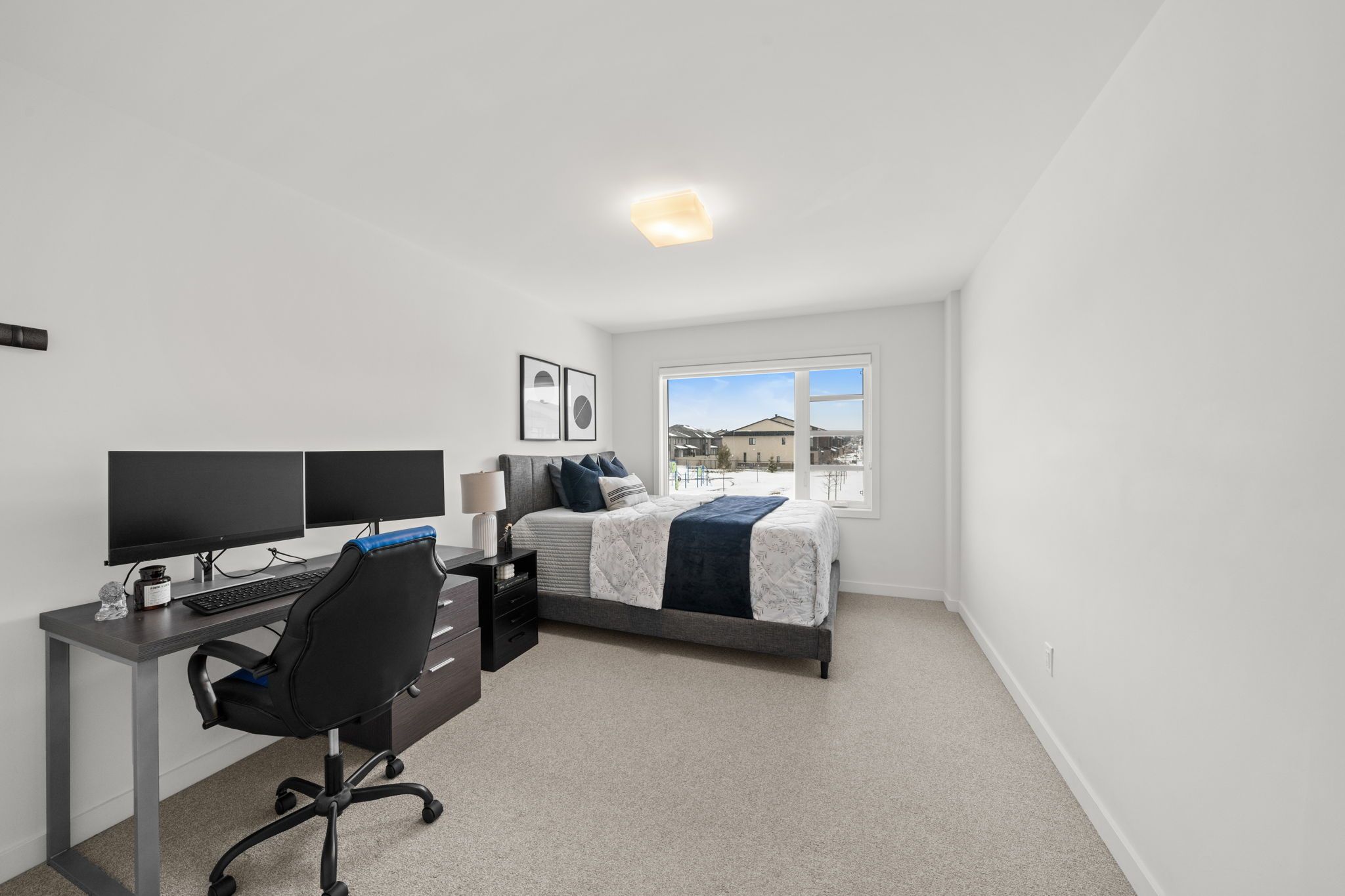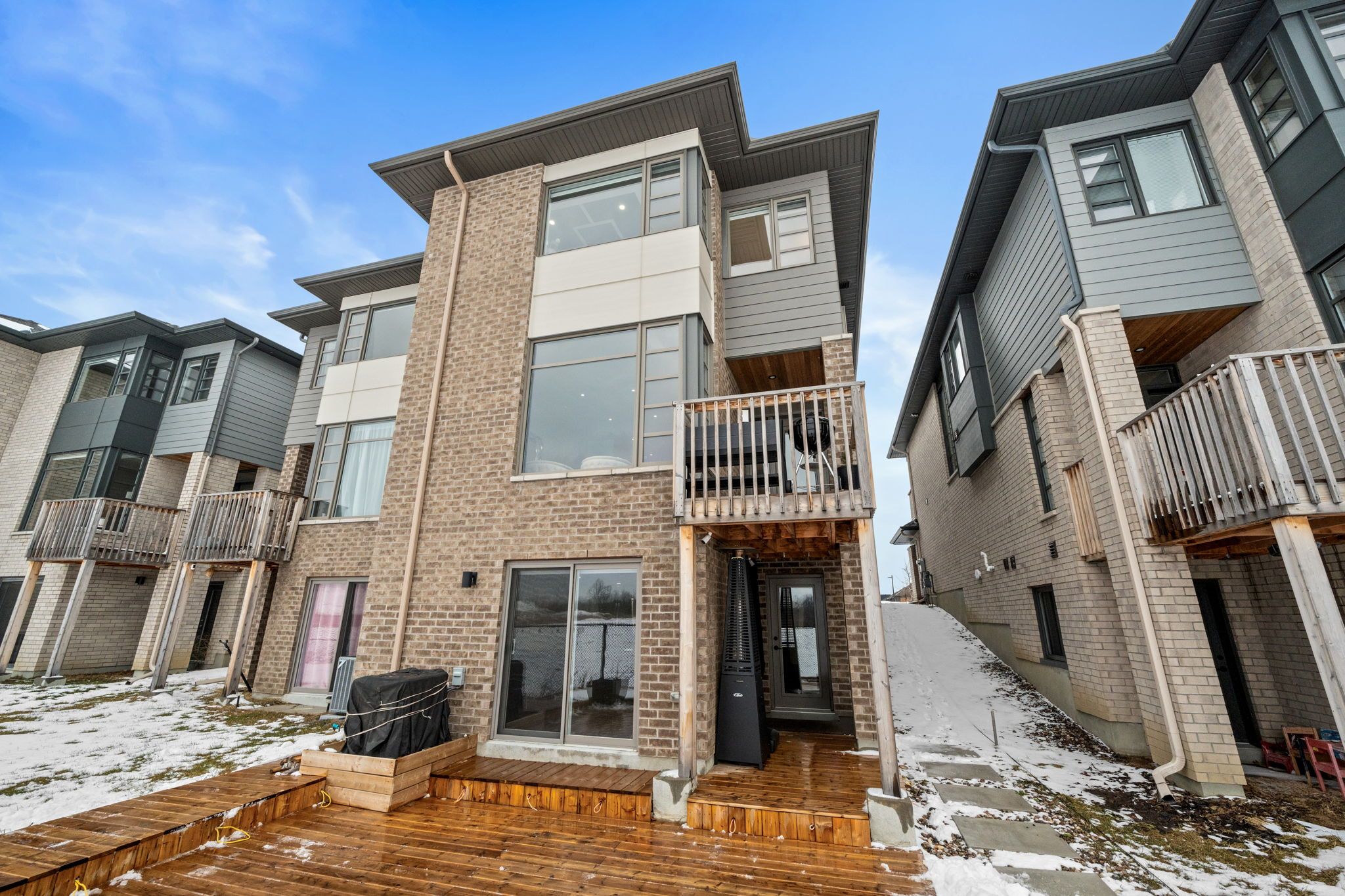 This turnkey one-of-one, hn homes parkway model semi-detached home in findlay creek, with over $100k in upgrades, has striking curb appeal, upgraded flooring throughout, and a basement walk-out. The main level features a bright, open-concept layout with a glass-filled foyer, an upgraded powder room, garage access, and a den, ideal for an office. The designer kitchen features a dramatic waterfall quartz island, high-gloss cabinetry, a full-height quartz backsplash, and matching kitchenaid stainless-steel appliances, including a gas cooktop and a built-in oven. The bright dining area with recessed lighting offers direct access to the balcony, while the living room, tucked at the back of the home, provides a cozy setting with a contemporary gas fireplace and large picture window. Upstairs, the spacious primary suite features a tray ceiling with integrated lighting, a large window, and a walk-in closet, along with a luxurious ensuite with a double vanity, glass shower, and soaker tub. 2 additional bedrooms are both bright and well-proportioned, with ample closet space, and are complemented by a full bathroom with matching finishes to the ensuite. A convenient upper-level laundry room with cabinetry and an open loft space that adds to the livability and convenience of this home. The fully finished lower level boasts a bright, open area with vinyl flooring and recessed lighting throughout, ideal for an additional living area or entertainment space with a wet bar and large sliding doors that provide walkout access to the backyard. This level also includes a storage area and a 4-piece bathroom! Outside, the backyard has a deck for outdoor dining below the main-level balcony. Located in a quiet nook of a family-friendly neighbourhood, this home is near walking and directly across the street from a children's park, and only a few minutes from schools, a range of daily amenities and the meadows golf club. This is the perfect home for growing families!