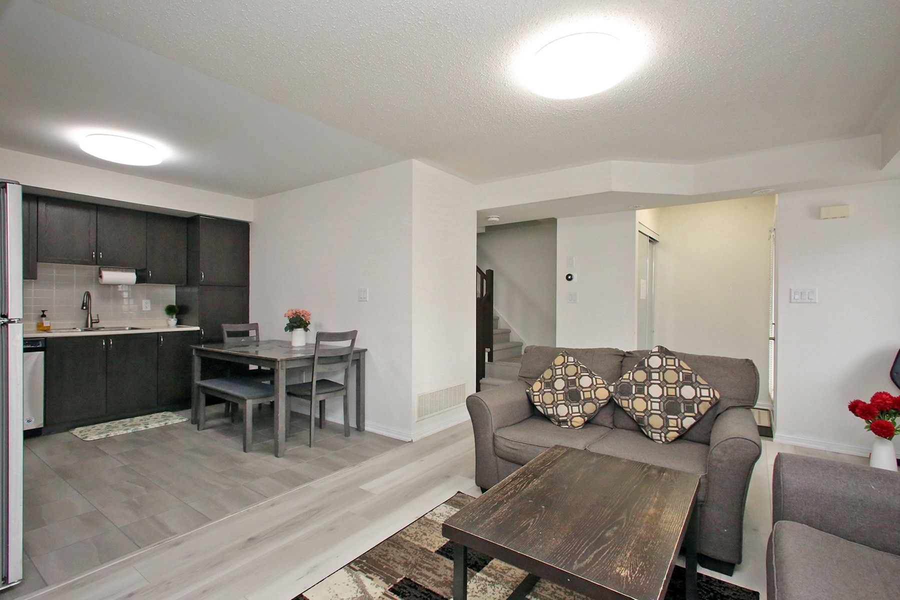 • Modern stacked townhome with an open-concept layout and large windows.