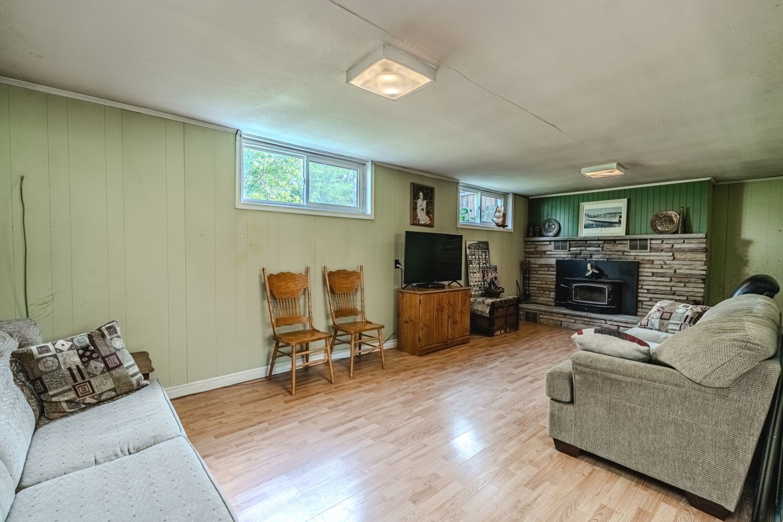 Charming community living close to waterfront fun & urban convenience! Welcome to your next home in the peaceful, family-friendly community of stroud, where tree-lined streets and a quiet residential atmosphere create the ideal setting for relaxed living. This standout property is just minutes from all the essentials - groceries, restaurants, schools, child care, public transit, shopping, and a vibrant community centre - plus only 5 minutes to south barrie and the barrie south go station, and 12 minutes to beautiful innisfil beach for lakeside recreation. This charming home features a detached 2-car garage with a 60-amp sub panel, a generous front yard providing great curb appeal, and a sprawling backyard with lush green space and a large deck perfect for outdoor living. Step inside to a bright, open-concept main living space with a warm wood-burning fireplace, a handy pass-through window between the kitchen and living room, and a seamless walkout to the back deck. Three spacious main floor bedrooms and a stylish 4-piece bath add practicality, while the fully finished basement delivers even more living space with a rec room, second fireplace, large storage zones, an extra bedroom, and a dedicated office. With carpet-free slate, laminate, and hardwood flooring throughout, and gas and municipal water available at the lot line, this #hometostay truly checks all the boxes.