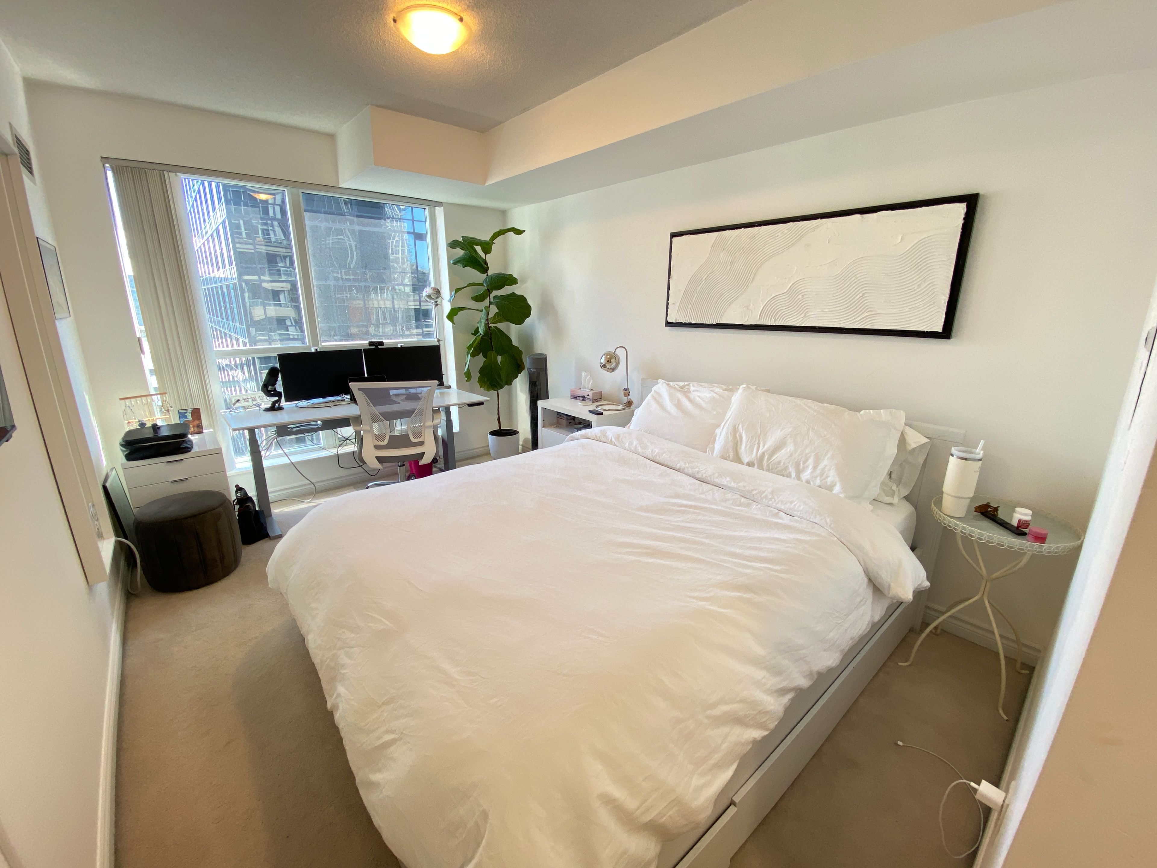 All-inclusive urban living at icon ii! This spacious, high-floor south-facing residence offers 855 sq. Ft. Of premium living space in the heart of toronto's vibrant entertainment district. Bathed in natural light from floor-to-ceiling windows, unit 1439 features a highly functional 2-bedroom plus den layout. The versatile den is perfectly suited as a formal dining room or a quiet home office, offering the extra space today's professionals crave. Open the sliding doors to your charming french balcony to enjoy fresh air and energetic city views. This is a truly hassle-free rental. The monthly rent includes hydro, heat, and water, providing total peace of mind with no extra utility bills to manage. With a 99 walk score, you are mere steps from the financial district, tiff lightbox, rogers centre, and the city's best nightlife and dining on king and mercer streets. Commuting is a breeze with st. Andrew station and union station just a short walk away. The suite comes with a private bicycle locker, ideal for an active downtown lifestyle. Live in a meticulously managed building with top-tier amenities and 24-hour security. Perfect for those seeking a spacious, sun-filled sanctuary in the center of it all. Move in and enjoy the gold standard of downtown living!