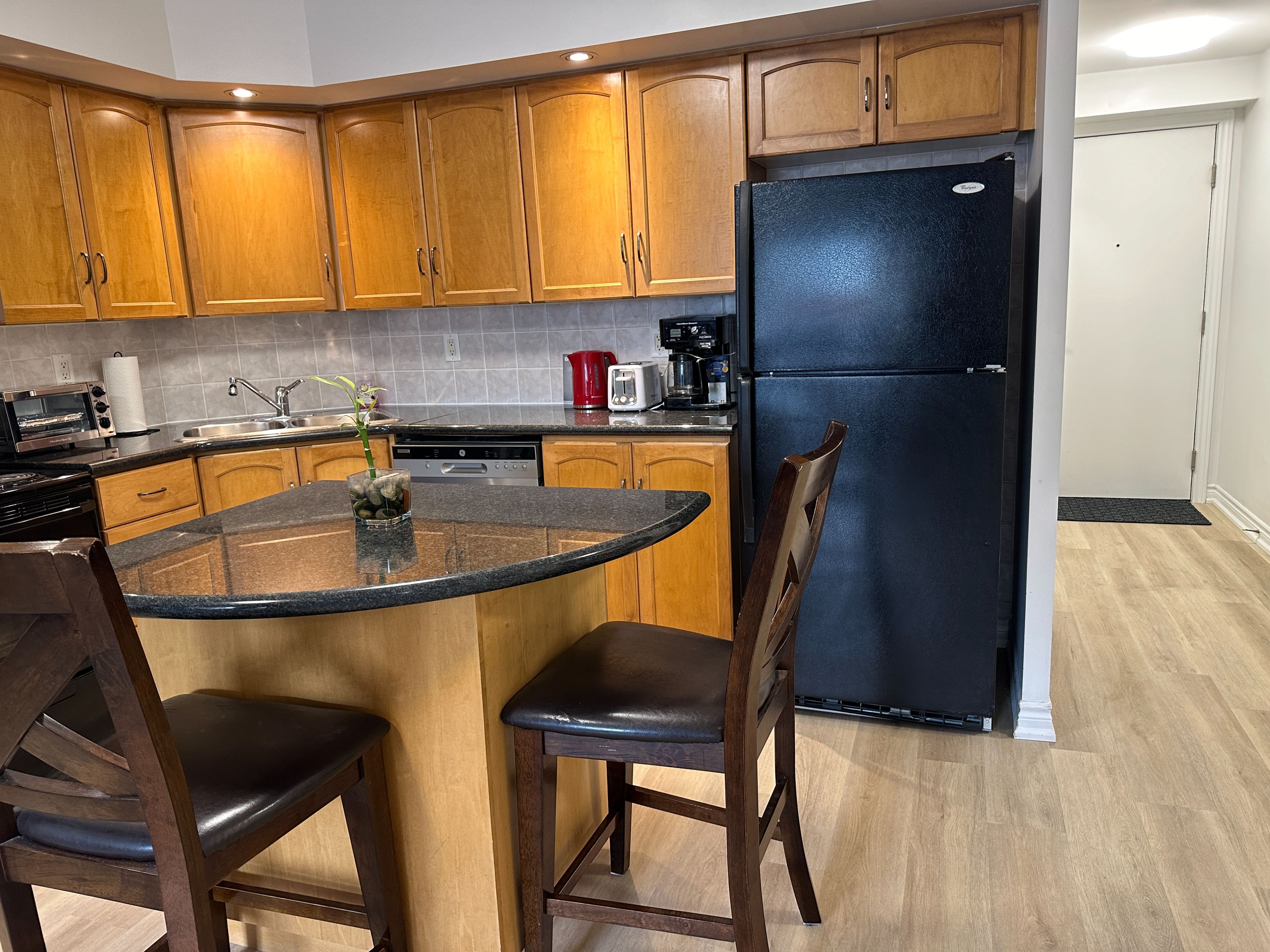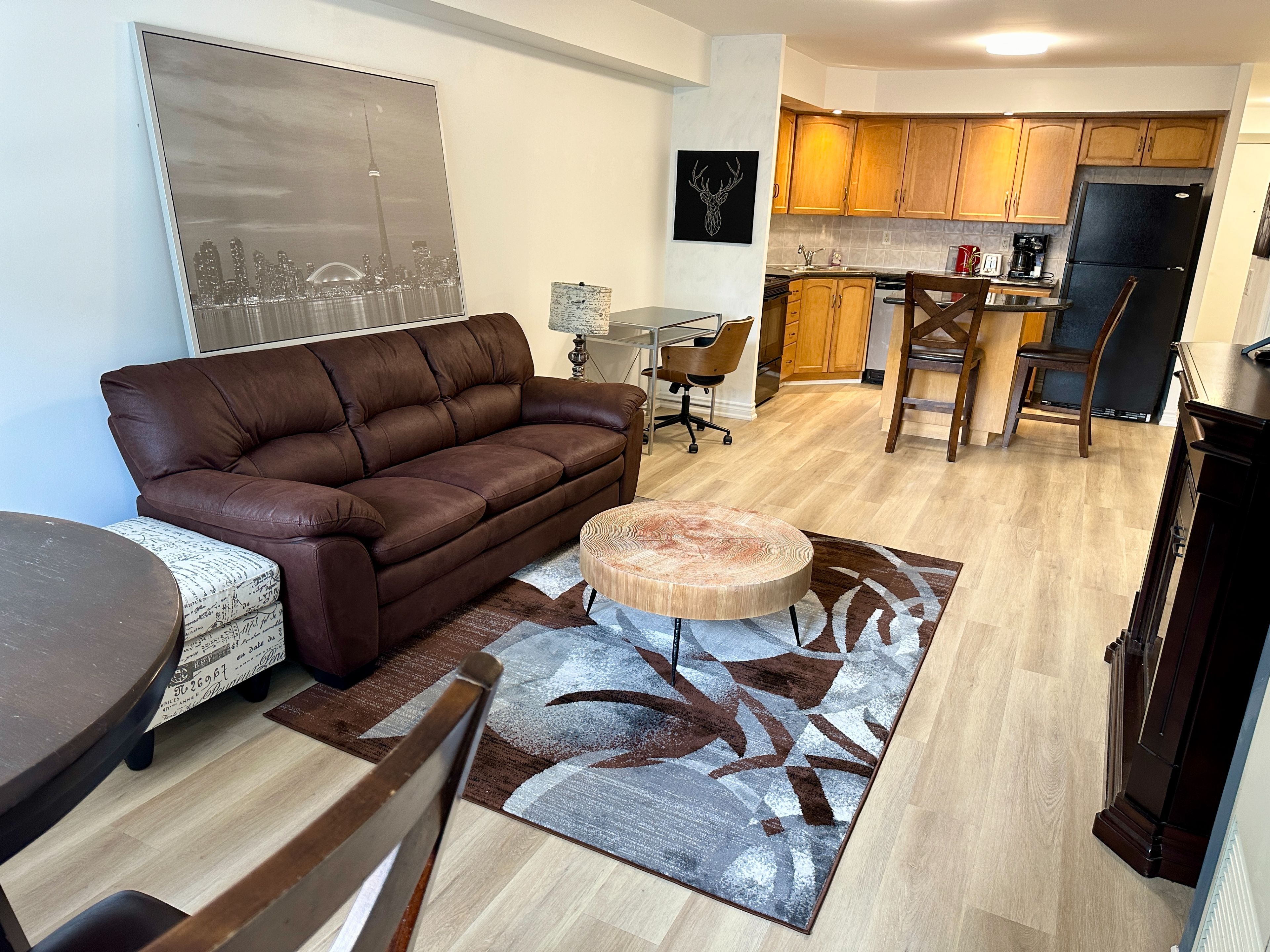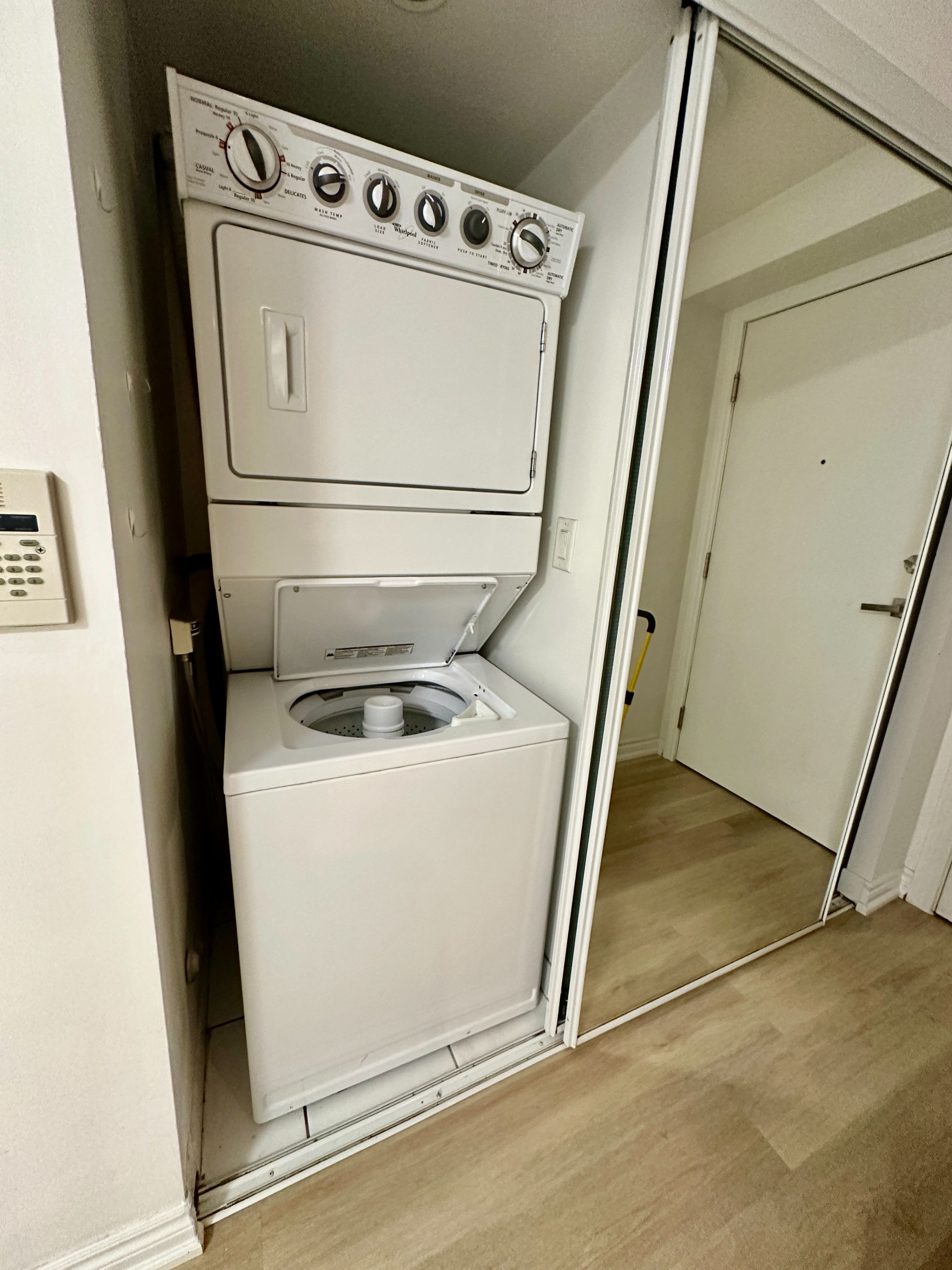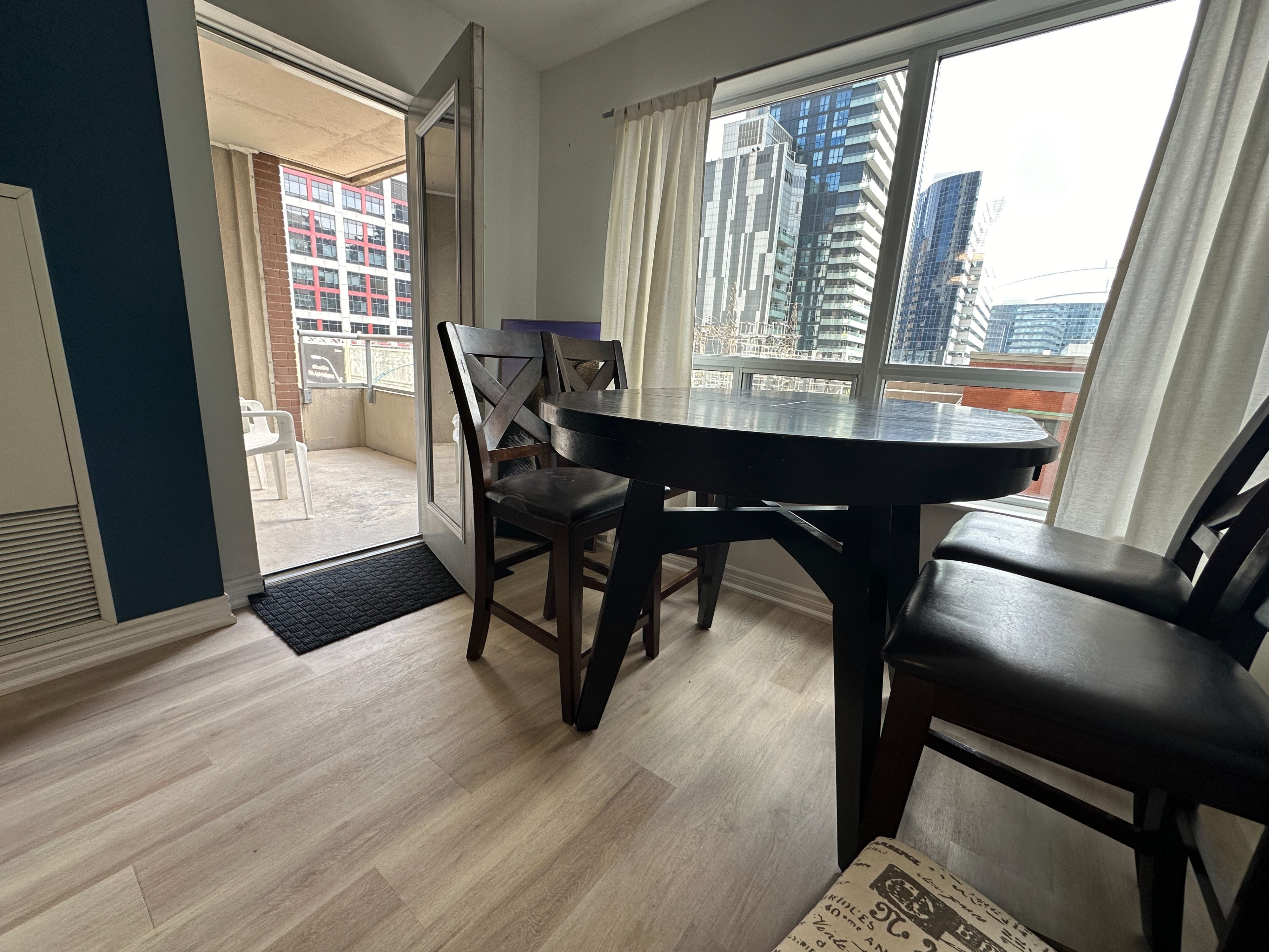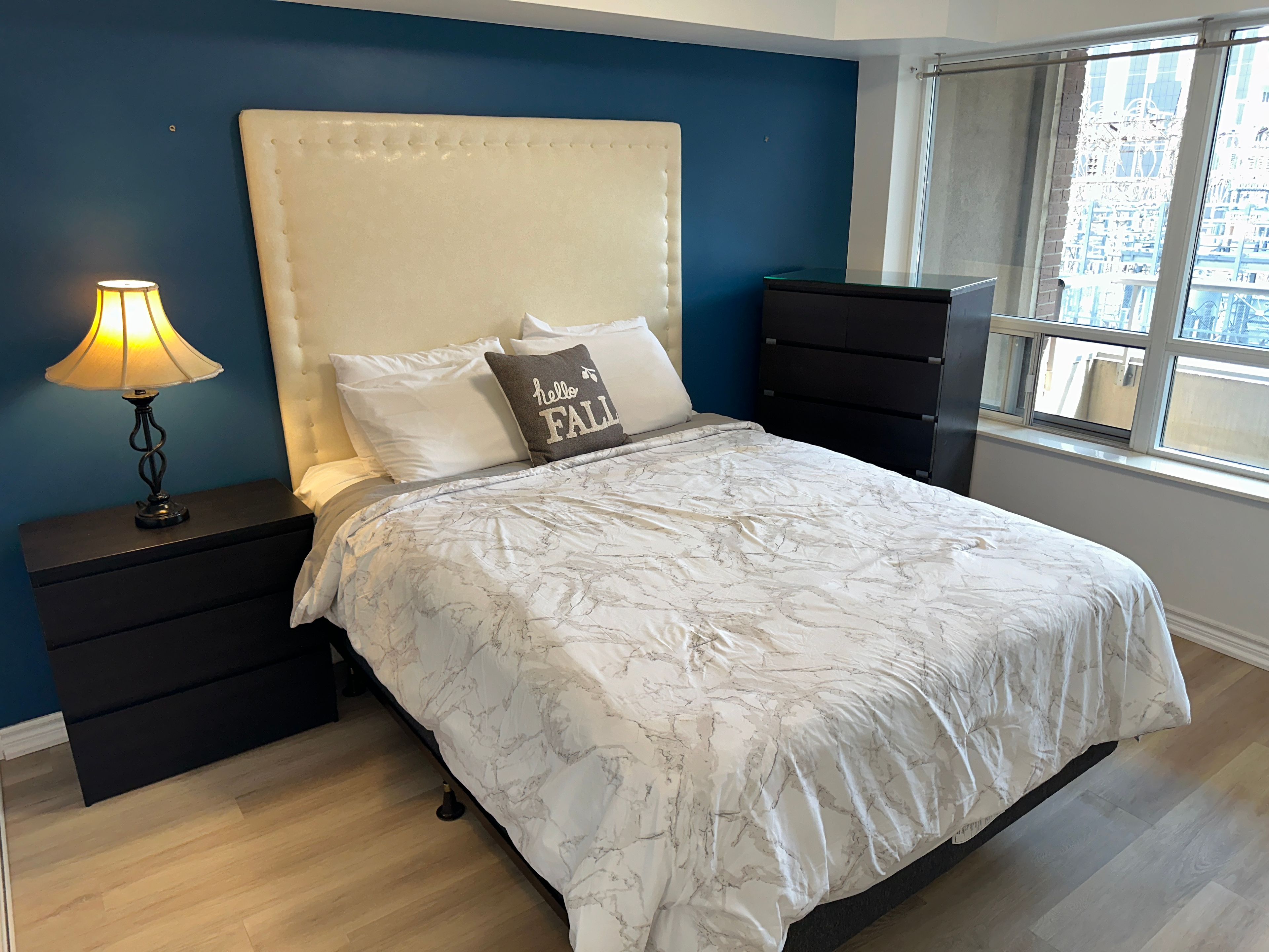 Welcome 740 sqft fully furnished luxury 1 + 1 condo that redefines urban living. Accommodations from 4 to 8 months, this exquisite property is perfect for pro athletes, corporate contract professionals, business and medical professionals seeking a stylish comfortable home. Brand new, beautiful modern vinyl flooring that complements the spacious living area. Relax on the plush sofa, complete with open-concept dining and work space, featuring a large table with four chairs perfect for entertaining or productivity. The chef-inspired kitchen boasts a breakfast bar, quartz countertops, and an extensive selection of small and large appliances, along with all the dishes, pots, pans, and bakeware you need to create culinary masterpieces breathtaking views of iconic cn tower and rogers centre from your private walk-out balcony. The master bedroom is a true retreat, featuring a luxurious brand new queen-size bed, a dresser, night table, and a double closet. A convenient double bed equipped with storage cabinet is also in the den to ensure comfort. Enjoy the convenience of a well-appointed 4-piece bathroom with a tub and shower. This remarkable unit was recently furnished with a flare of modern and elegance. The icon is situated in toronto's vibrant entertainment district, just a three-minute walk from the cn tower, rogers centre, metro convention centre, and metro hall p. A. T. H. Experience unparalleled amenities, including a stainless steel fridge, stove, built-in dishwasher, built-in microwave/hood fan, washer/dryer, window coverings, 24-hour concierge service, and access to a stunning 19th-floor rooftop, exercise gym, sauna, and pool. Don't miss the opportunity to enjoy this lovely condo in the heart of the city! **** extras **** 24 hr concierge, top quality equipment in exercise/gym, sauna, aqua spa indoor pool, two 19th floor terraces, bbq's, loungers * stunning view of cn tower and rogers center > cyber lounge, party room, billiard room - amazing building *