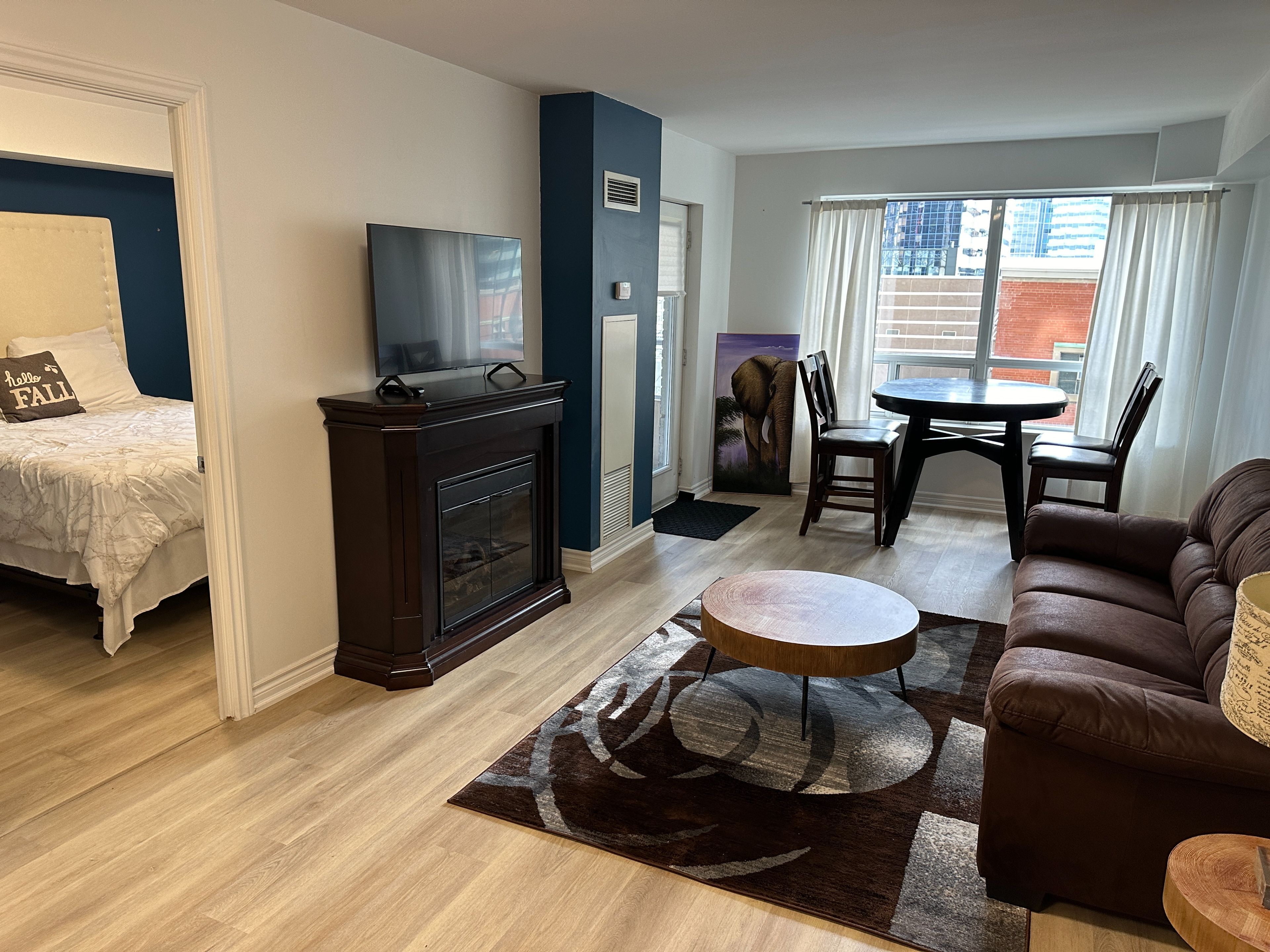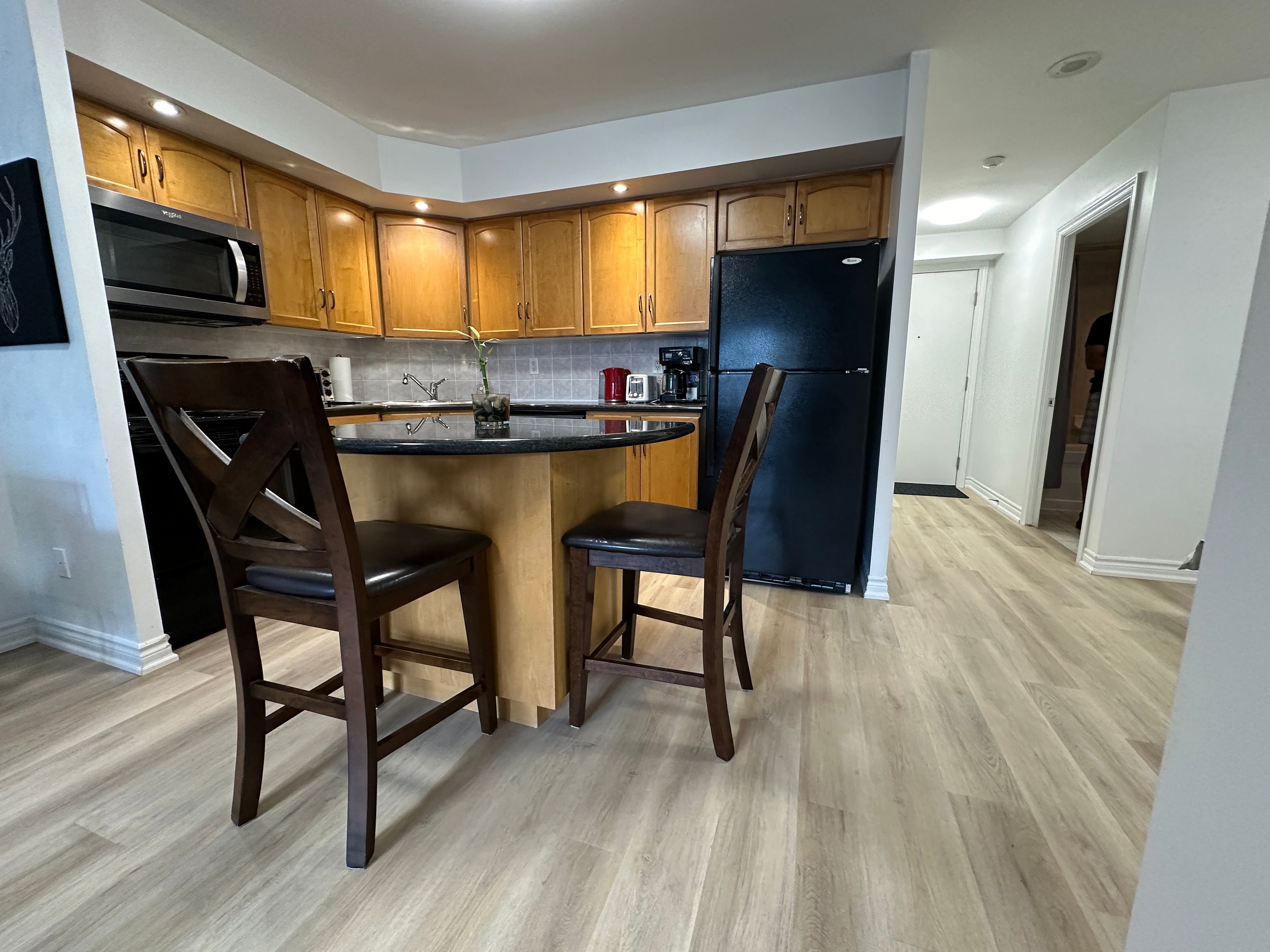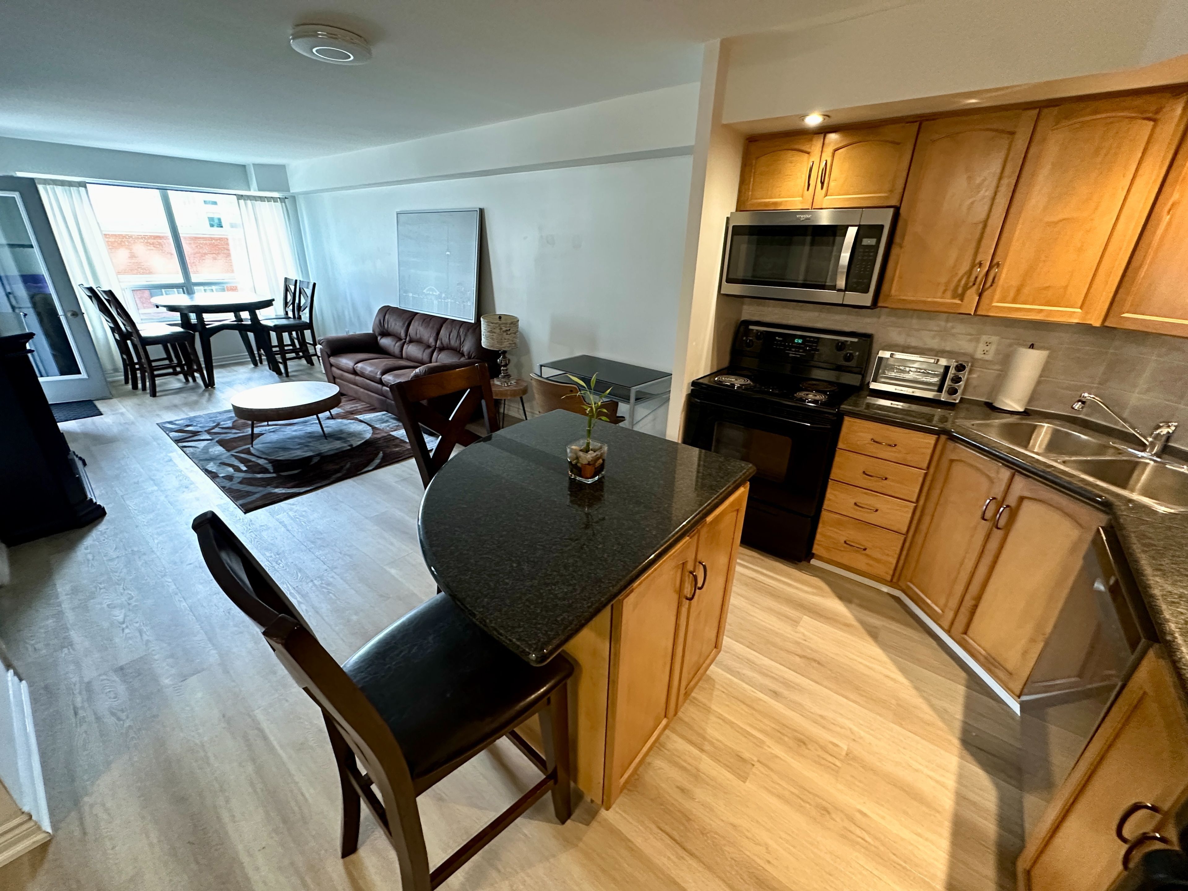 • Furnished luxury condo with modern vinyl flooring for stylish living.