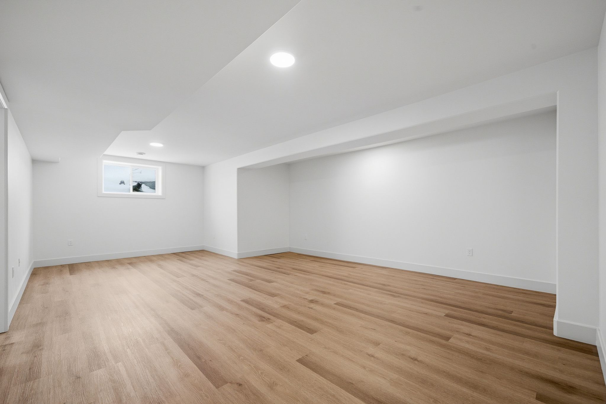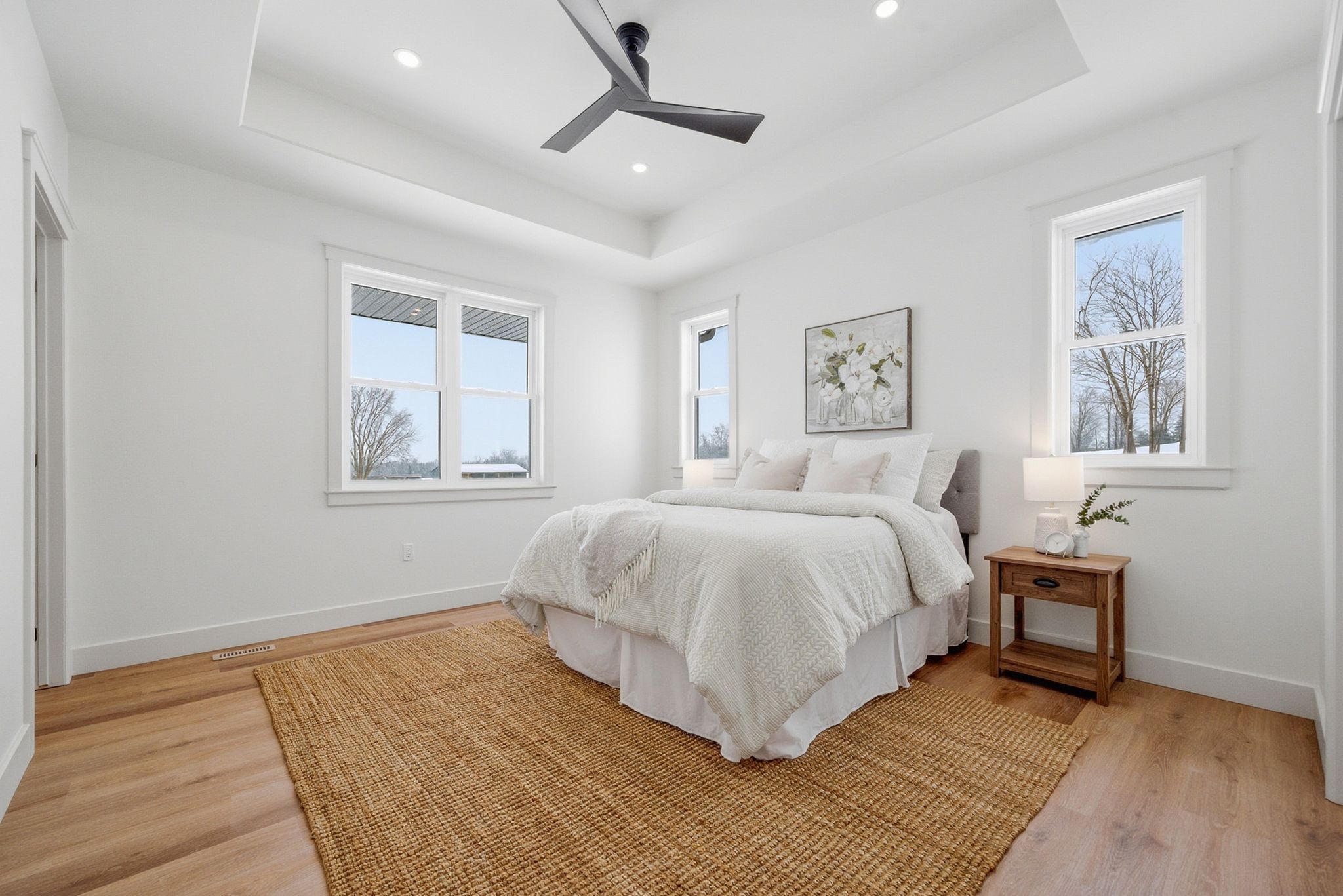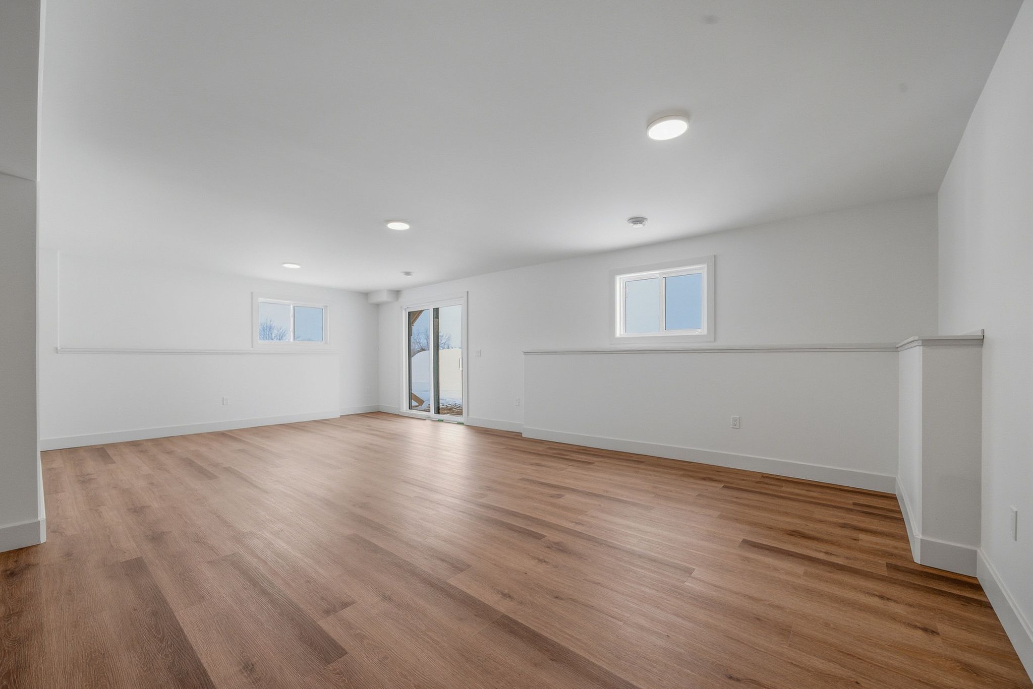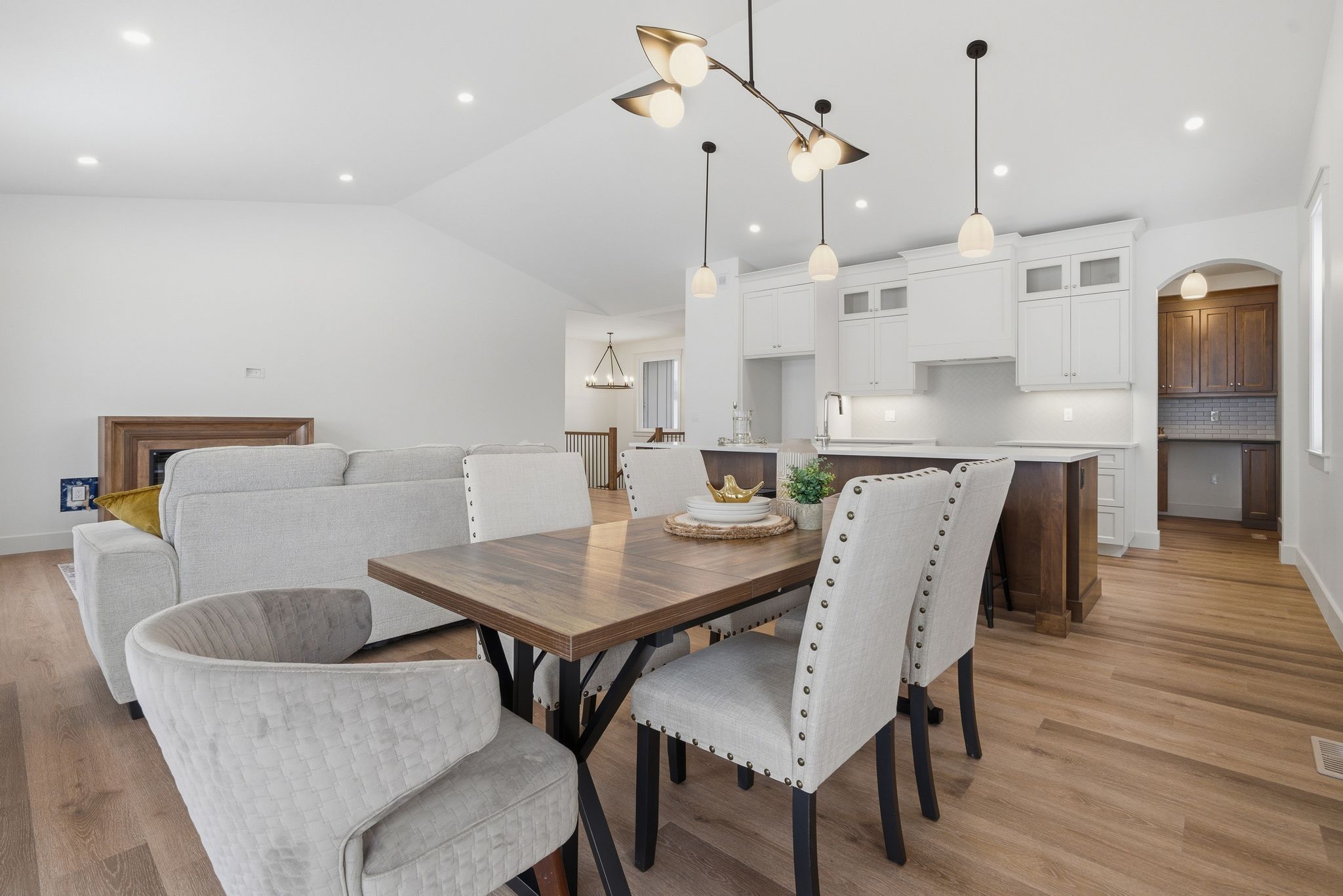 • Bright open-concept living space with large windows and vaulted ceilings.