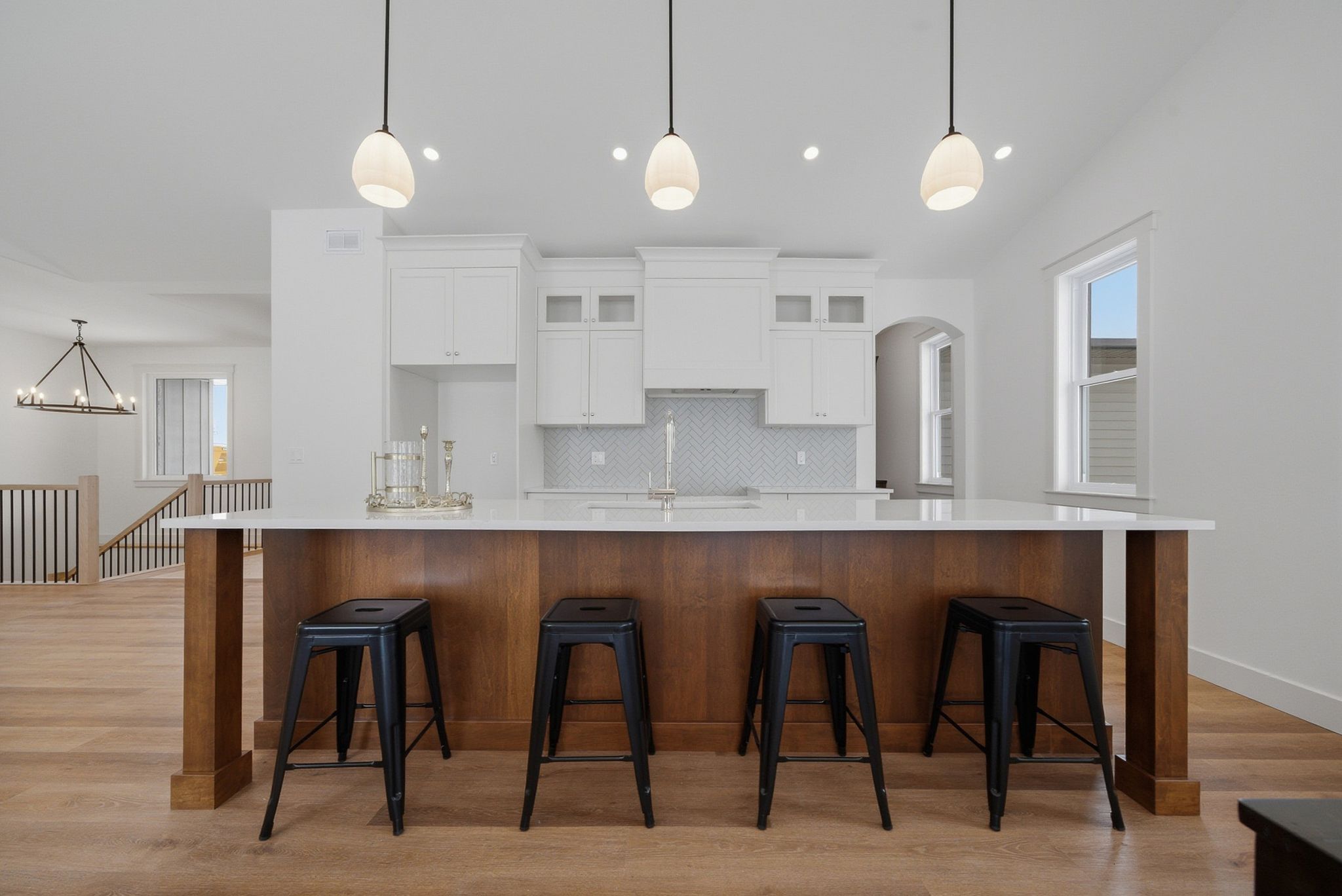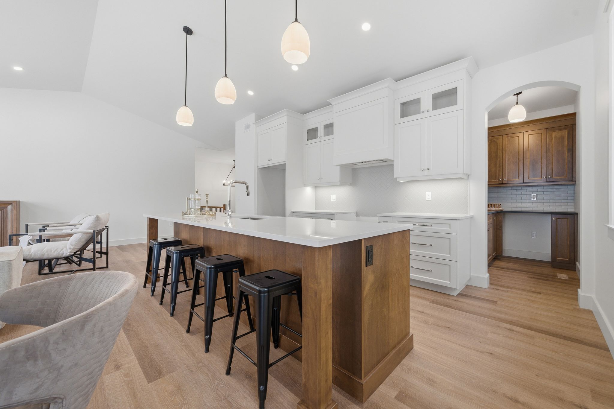 • Gourmet kitchen with quartz countertops and a large walk-in pantry.