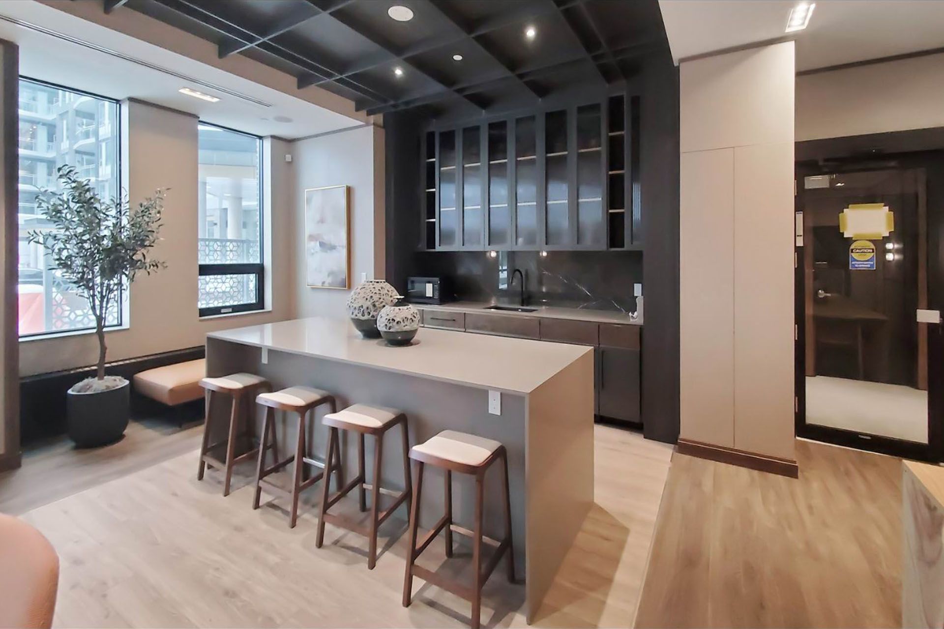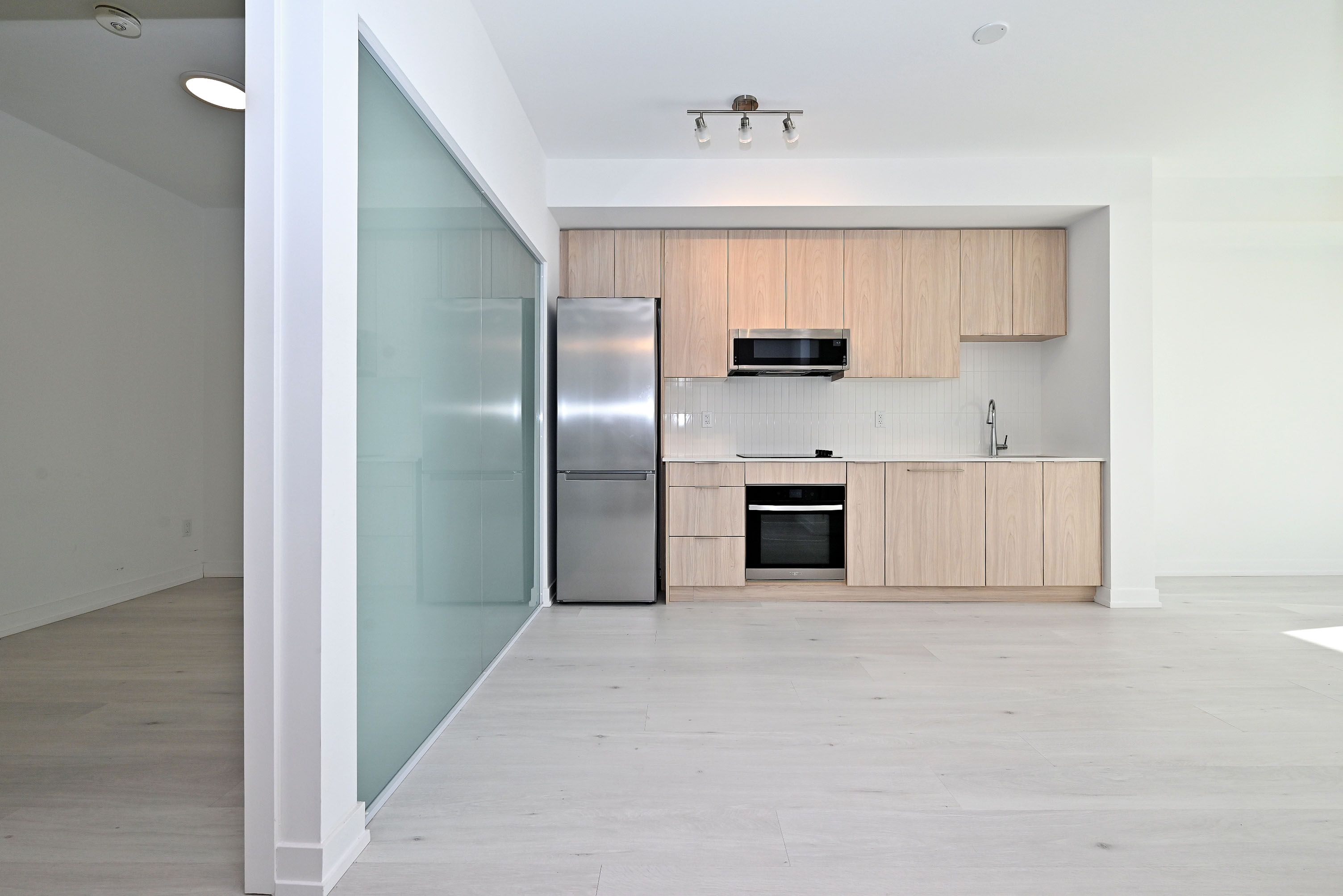 • Bright open-concept layout with 9-ft ceilings and large windows.