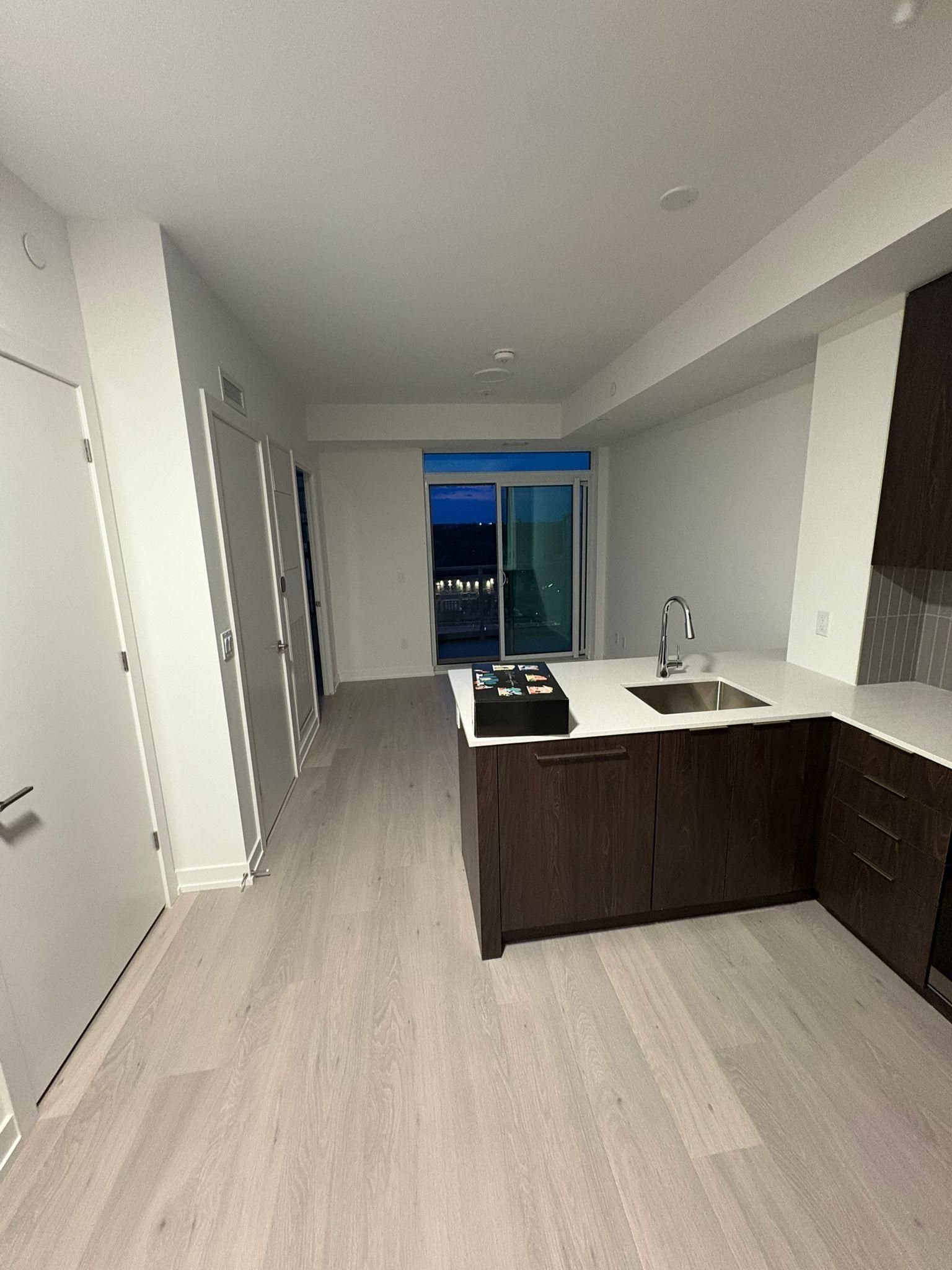 Experience refined living at the brand new saw whet condos, a boutique residence nestled in the heart of oakville. This beautifully designed unit features premium upgrades and custom finishes, including a stylish washroom backsplash,pot lights, a kitchen island with added storage, a sleek glass shower enclosure, and a premium 4th-floor locker. The bright, open-concept layout is filled with natural light, offering a seamless blend of comfort and functionality. The modern kitchen flows effortlessly into the living space, while the spacious bedroom boasts a large walk-in closet. A full-size washer and dryer add everyday convenience. Ideally located with easy access to hwy 403, the qew, and go transit, and just moments from bronte creek provincial park and oakville's scenic lakeshore. A short drive brings you to downtown oakville, with nearby schools, hospital,shopping, dining, and entertainment all within reach. Enjoy an impressive selection of amenities, including 24-hour concierge, party and games rooms, a yoga studio,co-working lounge, rooftop terrace, bike storage, secure parcel room, visitor parking, owned underground parking, and innovative features like kite ev rentals and valet services. A perfect blend of modern design and everyday convenience in a highly sought-after community, don't miss the opportunity to call this exceptional unit home.