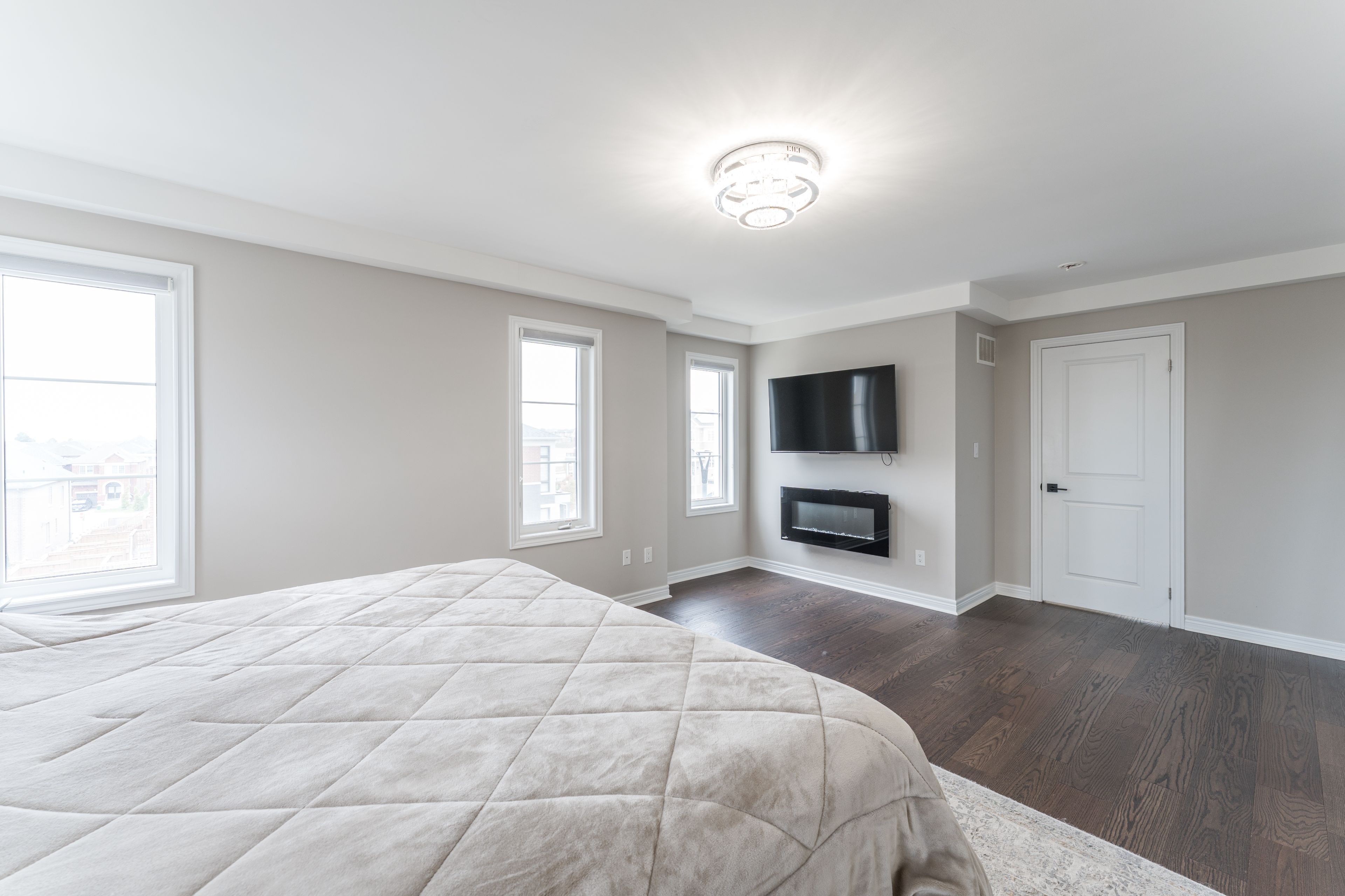Welcome to 2503 hibiscus drive, pickering! This beautifully upgraded end-unit townhouse blends modern comfort with timeless style in one of pickering's most peaceful neighbourhoods. Featuring 3 bedrooms, 2 bathrooms, and countless owner-installed upgrades, this home is truly move-in ready. Step inside to discover wide engineered hardwood floors, pot lights throughout, a stunning tiled tv wall, and a fully upgraded kitchen with a waterfall quartz countertop, new gas stove and oven, and modern tiling. Upstairs, enjoy a custom walk-in closet in the primary suite, plus upgraded quartz counters, sinks, and fixtures in both bathrooms. The attention to detail continues outdoors with a new front door, pot lights, sprinkler system (front and back), fenced yard, and custom shelving in the garage. Located in a quiet, family-friendly area, this home is just a short walk to a brand-new school, parks, and trails - with easy access to shopping, amenities, and major highways. A perfect blend of comfort, function, and designer finishes - this is one you won't want to miss!