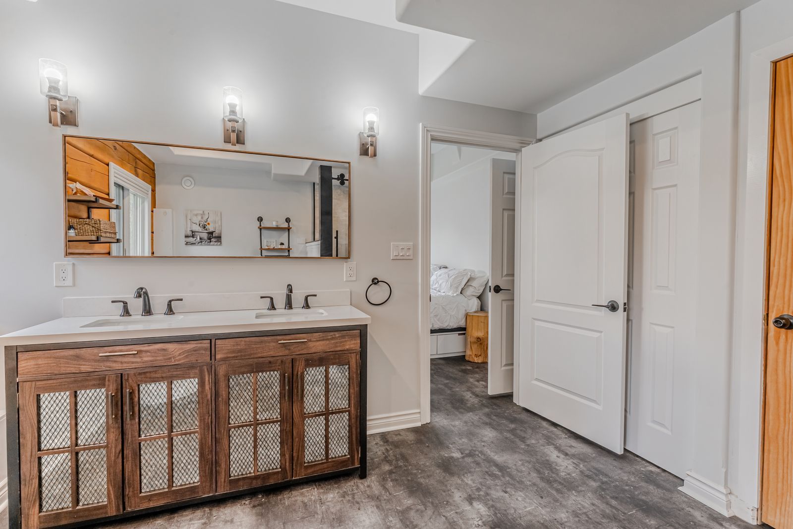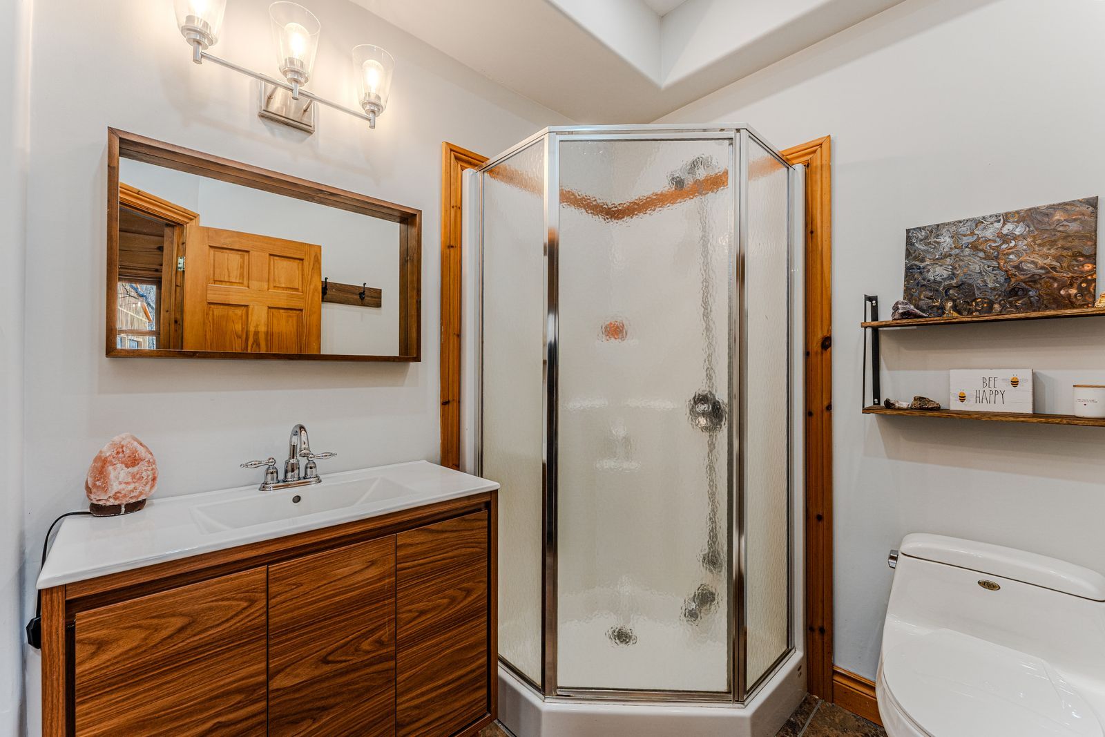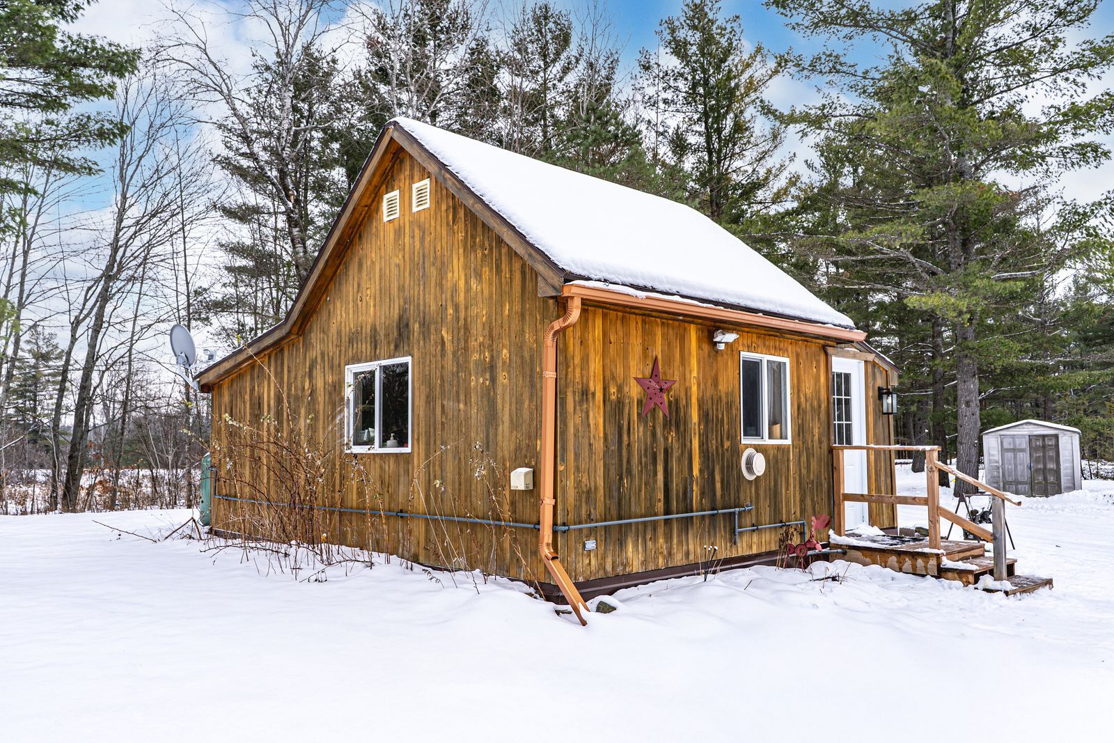 100 acres of natural beauty & a luxuriously updated log home with owned solar panels & versatile outbuildings including an oversized heated triple car garage, a sauna, shed, 26ft planta metal greenhouse, chicken coop, pump house, a hunt camp & bunkie with a kitchen, bathroom, heating & a/c! Experience true country living in this log home tucked away on 100 acres with ponds, trails, and forest views, offering the ultimate in peace, privacy, and natural beauty. Showcasing timeless rustic charm, this home features a freshly re-stained log exterior and a full-length front porch, perfect for taking in the serene surroundings. Possibilities are endless with the bunkie- ideal for business or rental use and potential for severance. Outdoor living shines with a sauna, hot tub, chicken coop, fruit trees, garden beds, and a summer gazebo for unwinding in the fresh air. The main level features a cozy family room with a propane fireplace, two bedrooms with walkouts, including a luxurious primary suite with a 5-piece ensuite, a 3-piece bathroom with heated floors, and a flexible office space. The upper level boasts vaulted ceilings, engineered hardwood, and an open-concept kitchen and dining area with quartz counters, tile backsplash, a large island, and stainless steel appliances. The great room features a wood fireplace, statement windows, and a balcony walkout with forest views, plus an additional bedroom and a renovated 5-piece bath. Recent upgrades include fresh interior paint, led lighting, refinished stairs, brand new flooring, newer door hardware, efficient windows, central vac, and a water filtration system. A solar panel system with battery backup and generator hookups ensures dependable off-grid capability, while newly added bell fibe internet keeps you seamlessly connected. Discover the ultimate retreat where luxury, modern comfort, and nature unite in perfect harmony, creating a truly exceptional #hometostay.