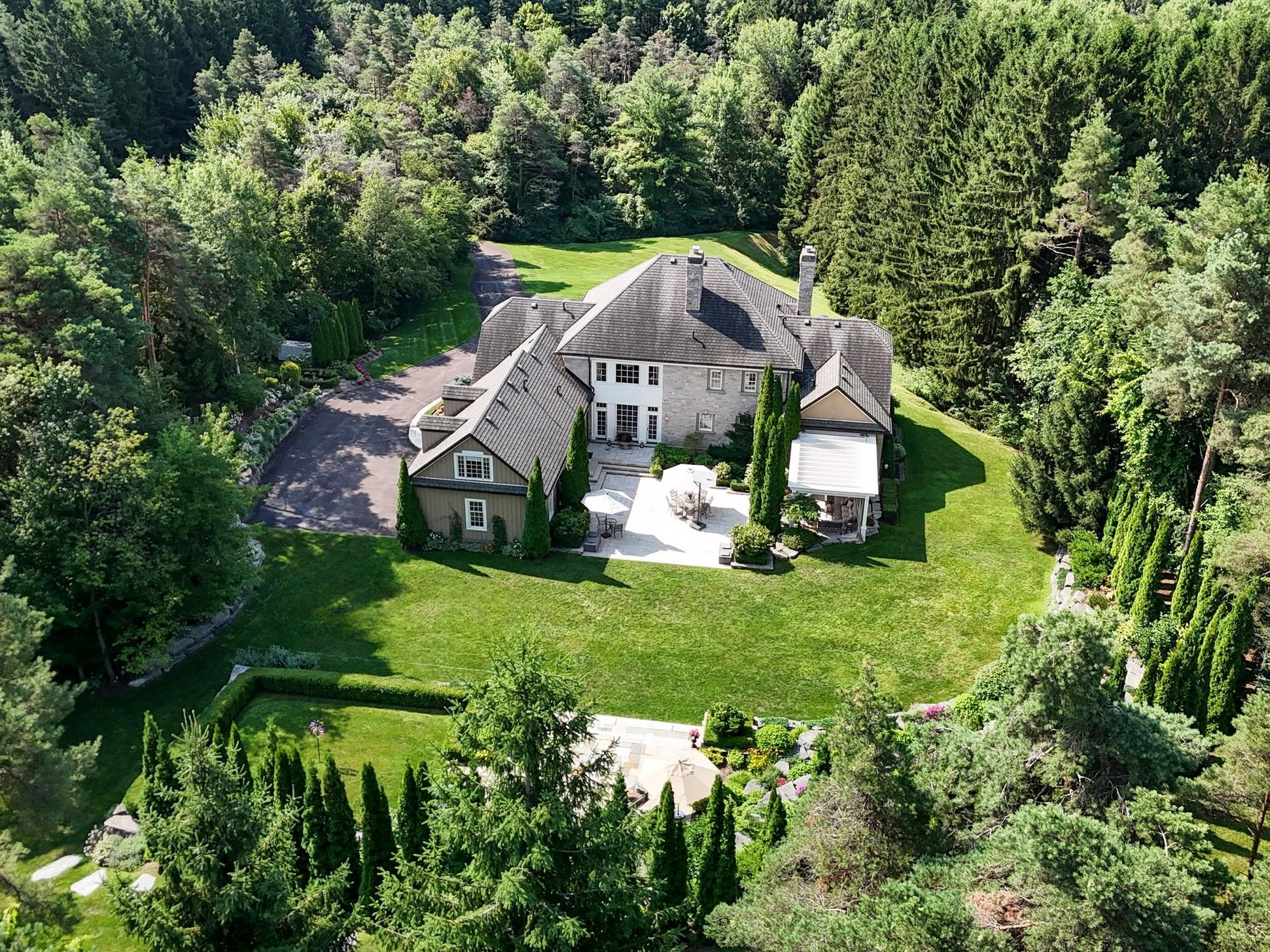Where grand living meets heartfelt warmth. As grand as this estate is, the true magic lies in the feeling you get the moment you step inside, a welcoming sense of comfort, like an embraced hug. Set on over 12 rolling acres, this country home offers space, beauty, and thoughtful details throughout. Featuring six bedrooms, four of which boast updated en-suites and all offering spacious closets. Additional private nanny or in-law suite, there is room for family and guests alike. Elegant finishes such as plaster crown moldings, custom mill-work, and hand-finished drywall and plaster walls add a timeless character. While in the heart of the home, the designer kitchen features built-in appliances and a complete butlers pantry that walks out to a magnificent flagstone patio, perfect for gatherings. From here, take in views of lush, tiered perennial gardens that feel like a corner of the tuscan countryside. Whether its quiet moments in the library, working from one of two home offices, or enjoying the soaring cathedral ceilings, this home is filled with spaces that bring people together. The fully finished lower level is designed for living, complete with a 1,000-bottle wine room, games and recreation space, private fitness studio with cushioned rubber flooring, hobby/artisan room which can easily be converted to a 6th bedroom, and oversized windows that flood the space with natural light. Eco-friendly geothermal heating and cooling, two high efficiency furnaces, irrigation system, high-capacity generator, industrial grade water treatment systems, cathedral and 10' ceilings on main and second floor and 2 cozy wood-burning fireplaces ensure year-round comfort. Finished in classic stucco and stone with an oversized two-car garage, this estate blends country living with thoughtful luxury. Truly a home built to be lived in and loved.