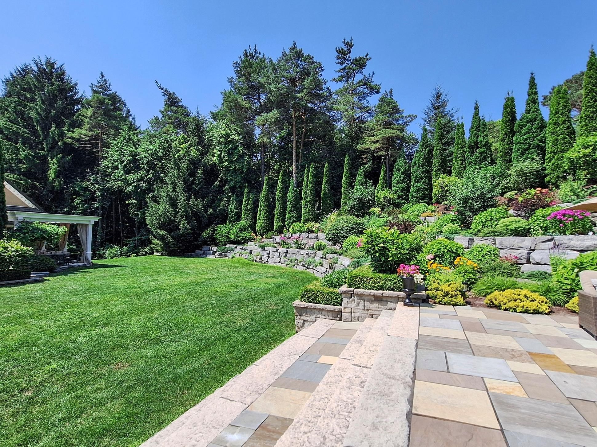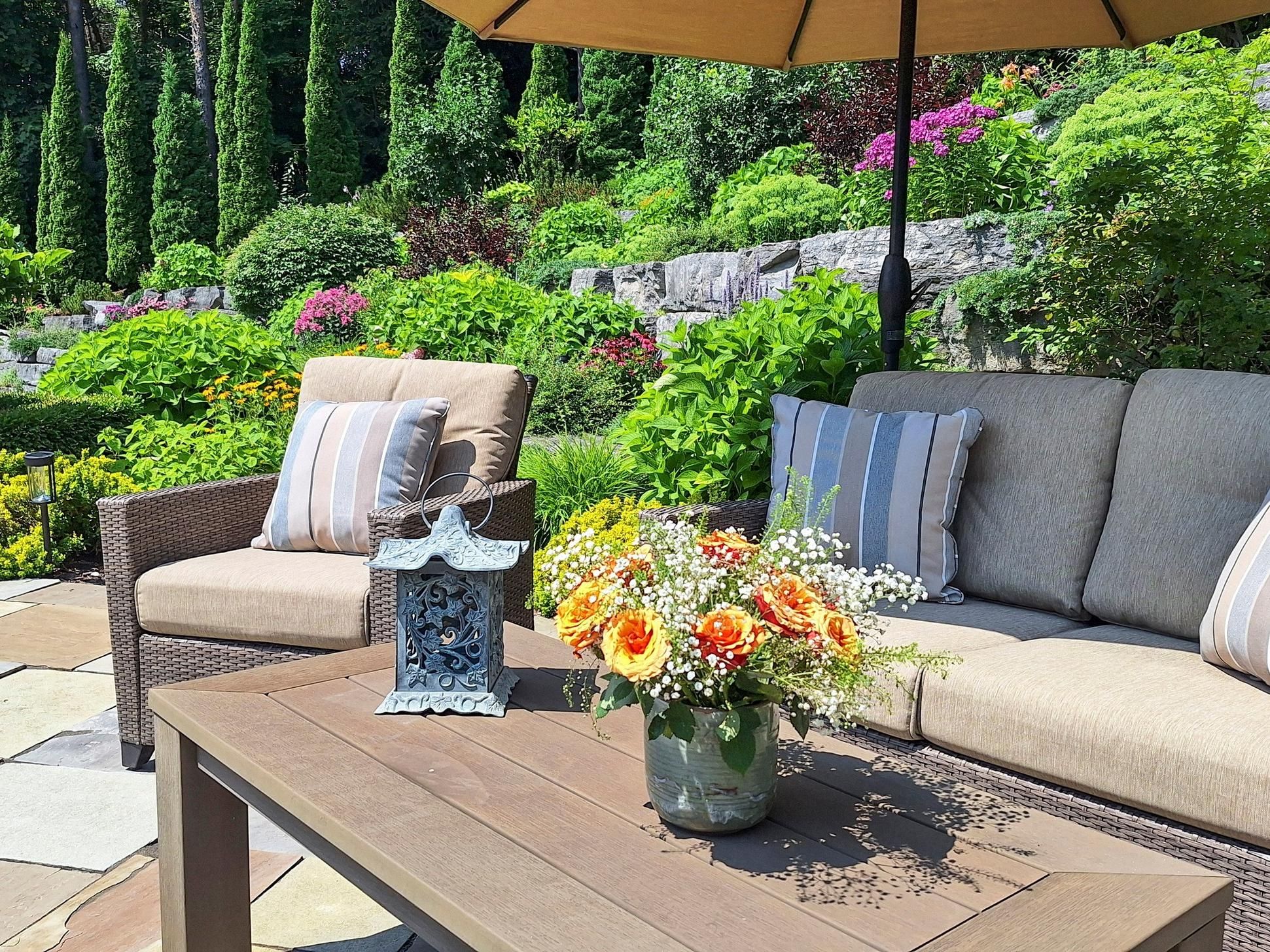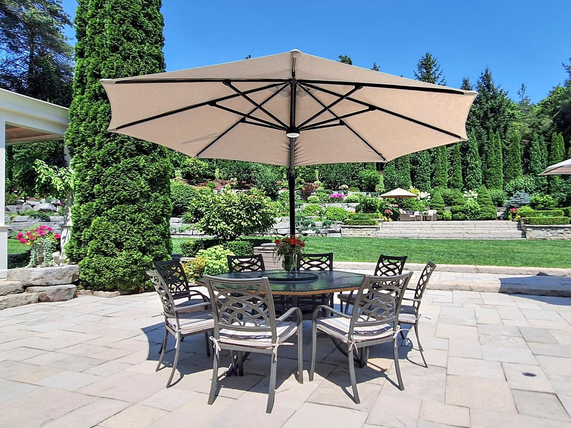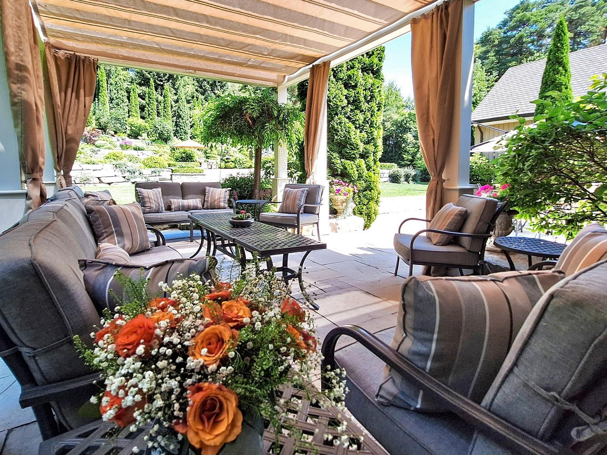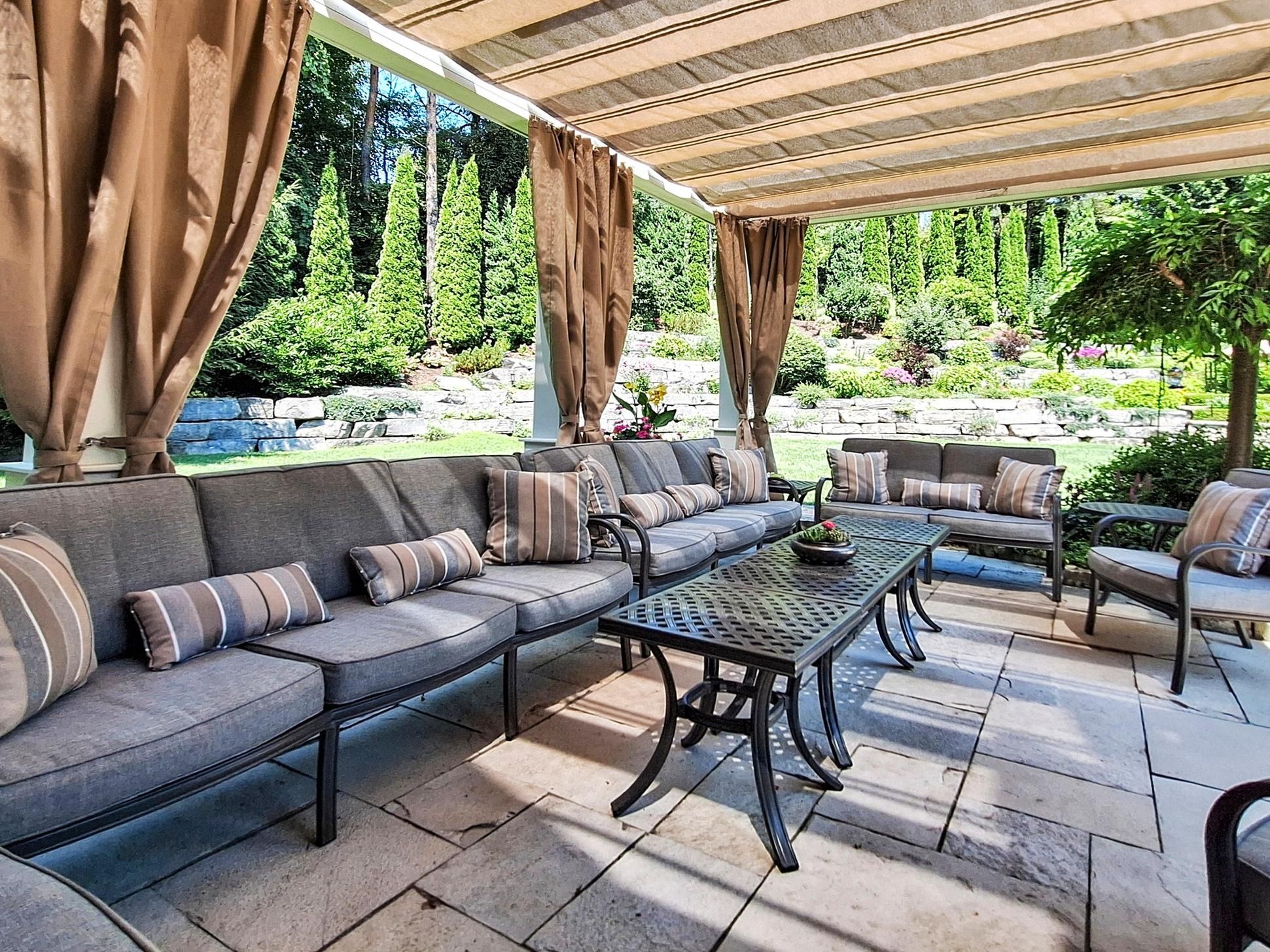 • Designer kitchen connects to a flagstone patio, great for gatherings.