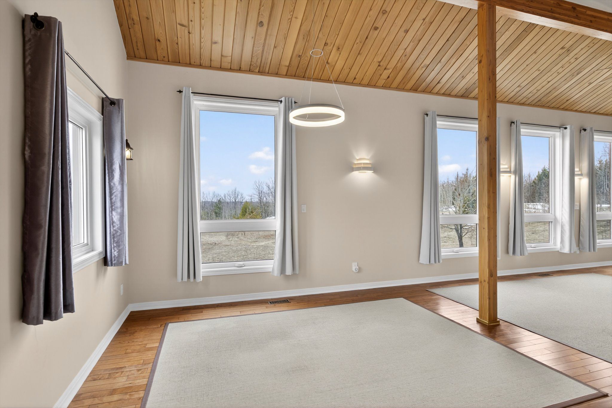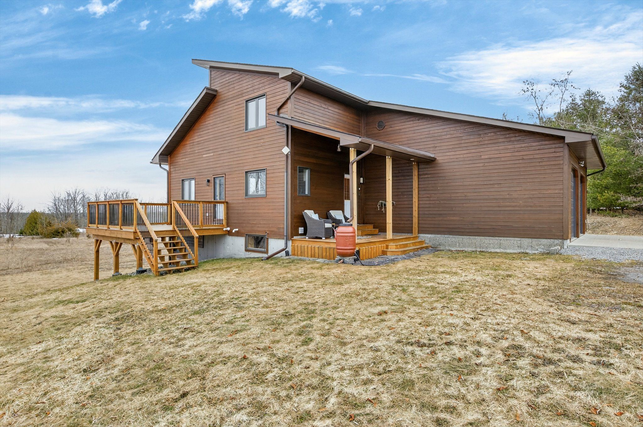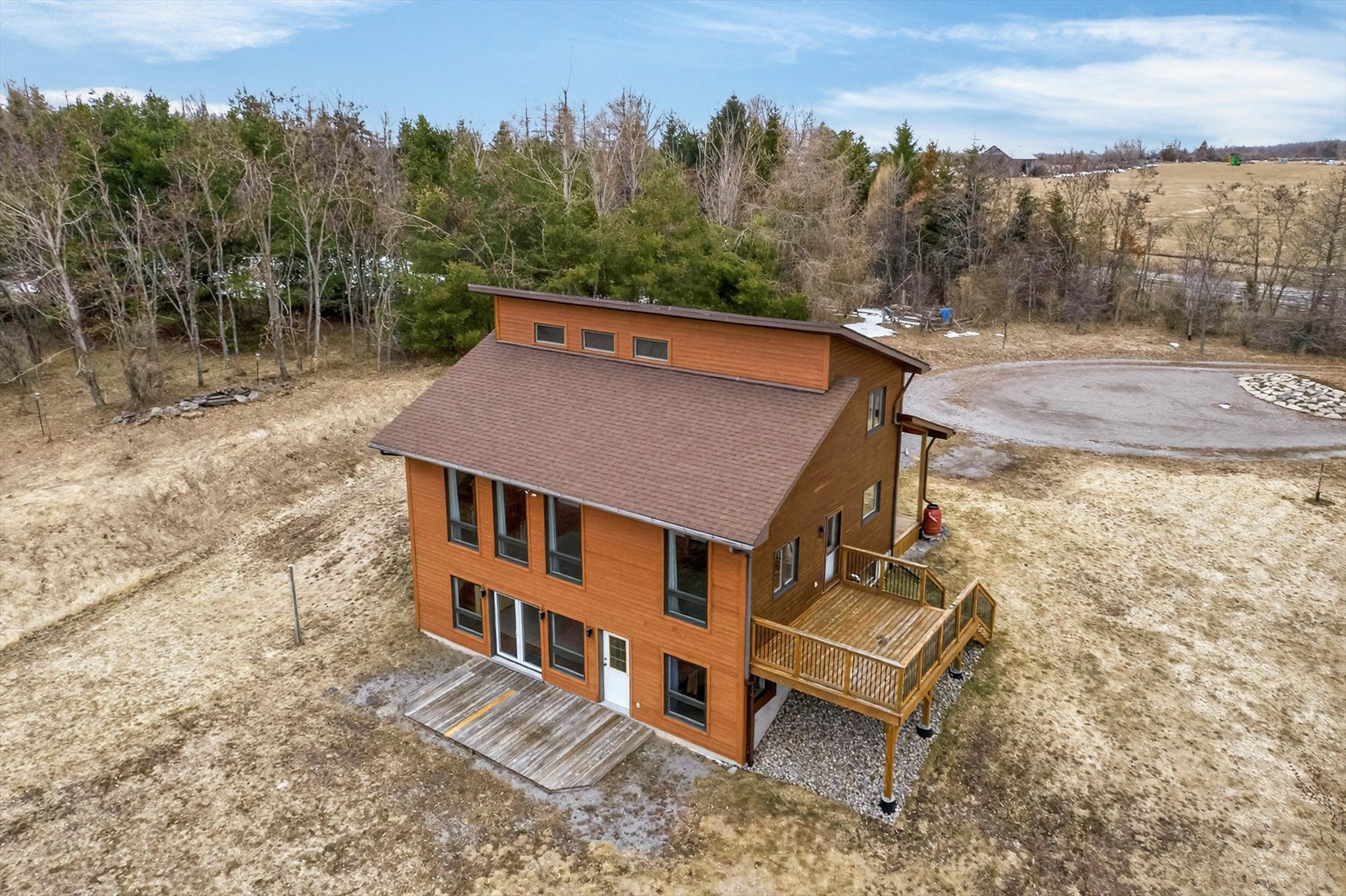 Set on nearly 50 acres of rolling countryside, one-owner custom linwood home offers an exceptional blend of privacy, natural beauty, and thoughtful design built with efficiency in mind. Ideal for nature lovers and hobbyists, the property features established walking trails that transform into scenic ski routes in winter, with stoney, clear, and katchewanooka lakes just moments away for boating and recreation. Conveniently located on a municipally maintained road, you're only 20 minutes to peterborough and 10 minutes to the village of lakefield for everyday shopping and dining. The striking post-and-beam construction is complemented by soaring 17-ft cedar ceilings and a bright, open-concept main level that seamlessly connects the kitchen, dining, and living areas. Enjoy the spacious east facing deck which is perfect for sunrise coffee dates! Expansive southern-facing windows flood the entire main level with natural light and showcase picturesque views in every season. The main floor also offers a comfortable bedroom and an updated 3-piece bathroom (2023), ideal for guests or main-floor living. Upstairs, a charming gallery overlooks the main living space and leads to two spacious bedrooms and a well-appointed 4-piece bathroom (2021). An additional walk-in closet (could easily be adjoined to the bedroom), provides flexible potential for storage, or an office. The finished lower level continues to impress with panoramic views, enhanced by newer windows and dual garden doors (2017) that open to a peaceful patio. This level includes a generous recreation space, a fourth bedroom, laundry, and a workshop/utility room-perfect for creative or practical pursuits. Additional updates include most windows (2018), insulated garage doors(2019), furnace (2020), and an owned hot water tank (2022). The attached double-car garage with direct access to main level provides ample storage as well as convenience. Come and see what you are missing!