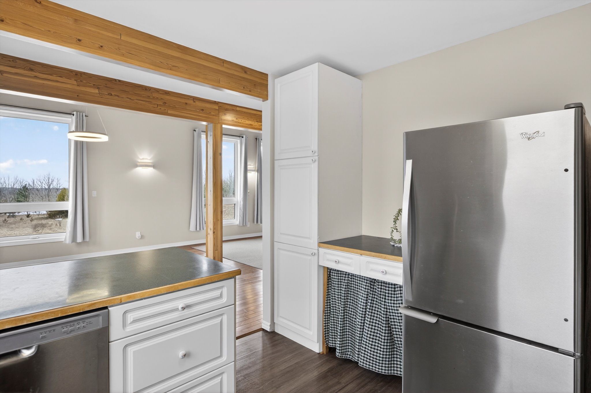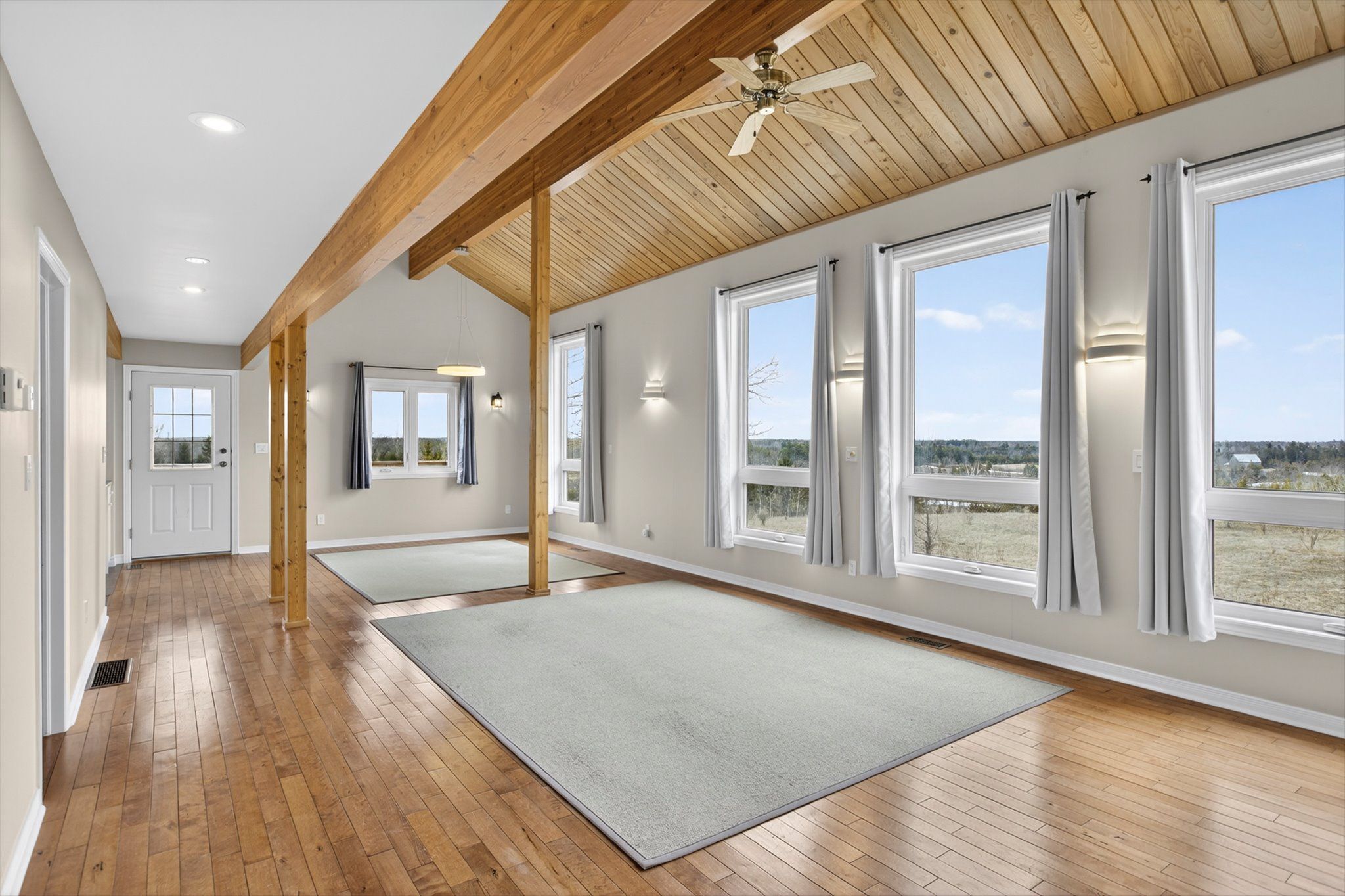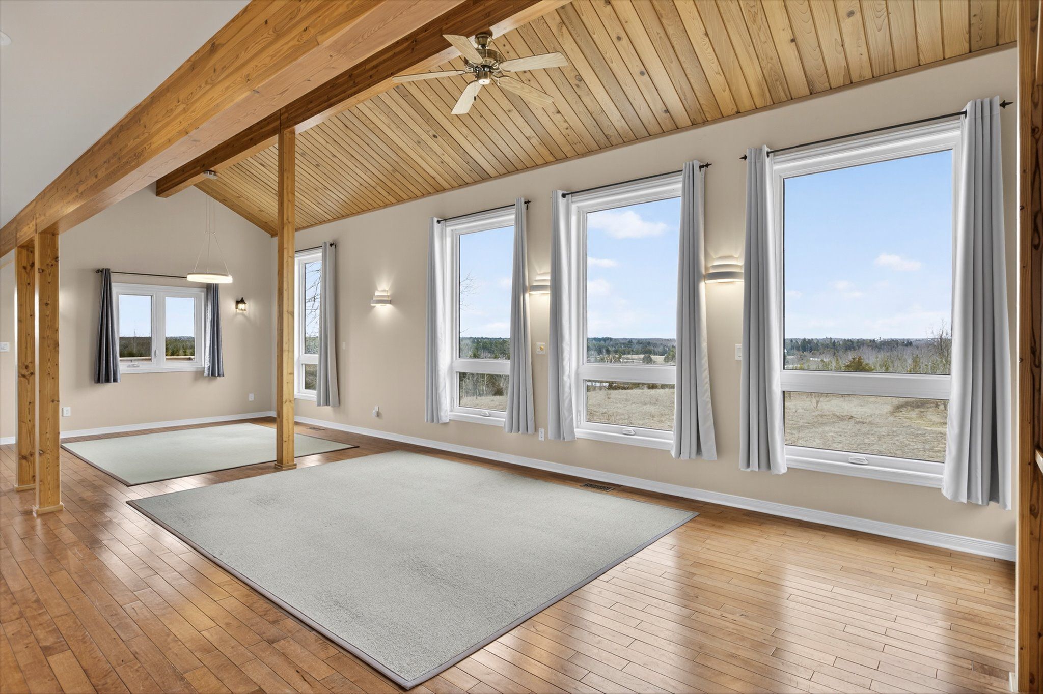 Set on nearly 50 acres of rolling countryside, one-owner custom linwood home offers an exceptional blend of privacy, natural beauty, and thoughtful design built with efficiency in mind. Ideal for nature lovers and hobbyists, the property features established walking trails that transform into scenic ski routes in winter, with stoney, clear, and katchewanooka lakes just moments away for boating and recreation. Conveniently located on a municipally maintained road, you're only 20 minutes to peterborough and 10 minutes to the village of lakefield for everyday shopping and dining. The striking post-and-beam construction is complemented by soaring 17-ft cedar ceilings and a bright, open-concept main level that seamlessly connects the kitchen, dining, and living areas. Enjoy the spacious east facing deck which is perfect for sunrise coffee dates! Expansive southern-facing windows flood the entire main level with natural light and showcase picturesque views in every season. The main floor also offers a comfortable bedroom and an updated 3-piece bathroom (2023), ideal for guests or main-floor living. Upstairs, a charming gallery overlooks the main living space and leads to two spacious bedrooms and a well-appointed 4-piece bathroom (2021). An additional walk-in closet (could easily be adjoined to the bedroom), provides flexible potential for storage, or an office. The finished lower level continues to impress with panoramic views, enhanced by newer windows and dual garden doors (2017) that open to a peaceful patio. This level includes a generous recreation space, a fourth bedroom, laundry, and a workshop/utility room-perfect for creative or practical pursuits. Additional updates include most windows (2018), insulated garage doors(2019), furnace (2020), and an owned hot water tank (2022). The attached double-car garage with direct access to main level provides ample storage as well as convenience. Come and see what you are missing!