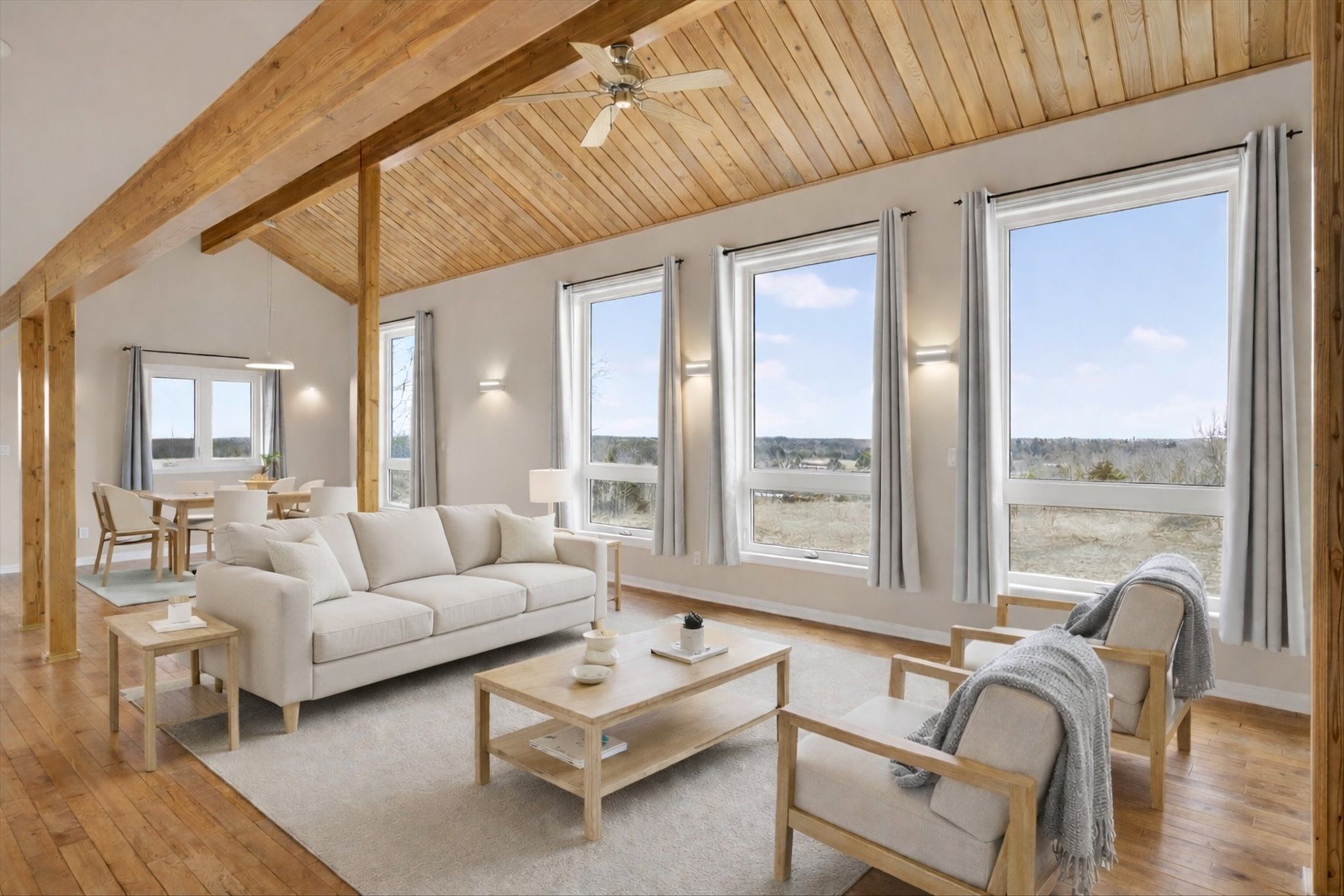 • Bright open-concept main level with soaring cedar ceilings and stunning views.