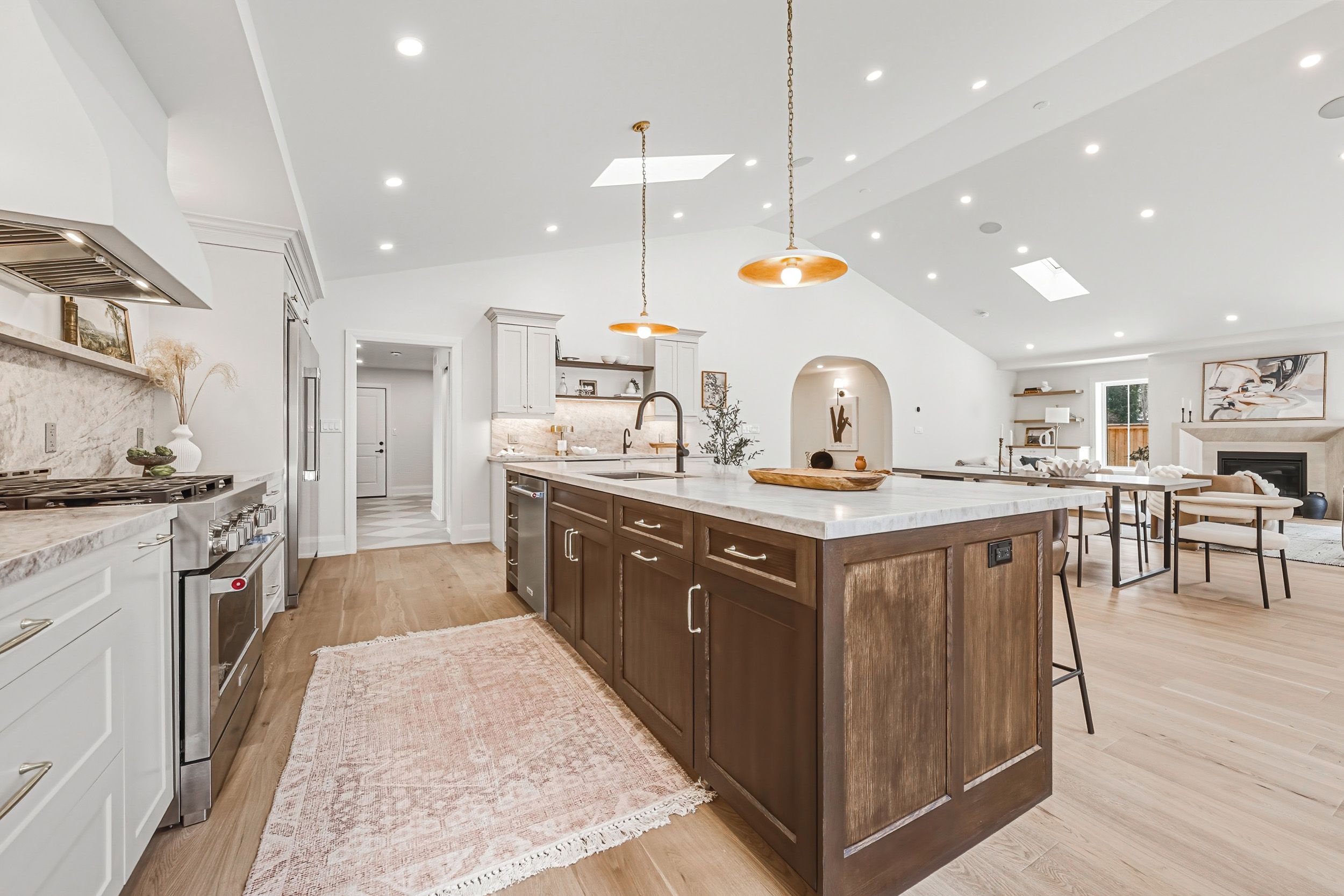 Spectacular, fully renovated (2025/2026) 2 storey home in shoreacres! Nestled on a 72-ft x 115-ft (pool sized) lot across the street from glen afton park! This home has 5+1 bedrooms, 5. 5 bathrooms & is an absolute dream home! The incredible floorplan boasts over 3500 square feet plus a finished lower level with in-law/nanny suite potential. The large foyer leads to the front office / den. There is also a spacious main floor bedroom with a 3-piece ensuite. The amazing great room has 13'5 vaulted ceilings with skylights, two separate doors to the private yard & consists of a stunning kitchen, dining area & a family room with a gas fireplace. The kitchen has custom cabinetry, gourmet appliances & a large oak island. The kitchen connects to the sprawling mudroom with a large pantry, garage access & custom cabinetry / bench. There is also a large main floor laundry room and 2-piece bath! The top level includes 4 large bedrooms & three full bathrooms. The primary bedroom has spa-like 5-piece ensuite & large custom built in closets. The finished lower level has a rec room with a wet bar, bedroom, 3-piece bath & rough in for laundry. The exterior has a 3-car driveway & a fenced private back / side yard with a stone patio, a covered 20 ft x 12ft cabana, custom stone gas bbq feature & plenty of space for a pool! New windows / doors, flooring, bathrooms, trim and doors, drywall, insulation, plumbing, electrical and landscaping! Heated tiles throughout & dual furnaces / ac's!