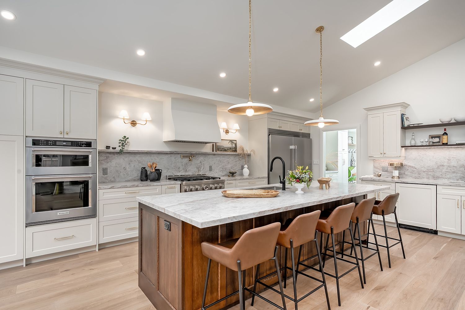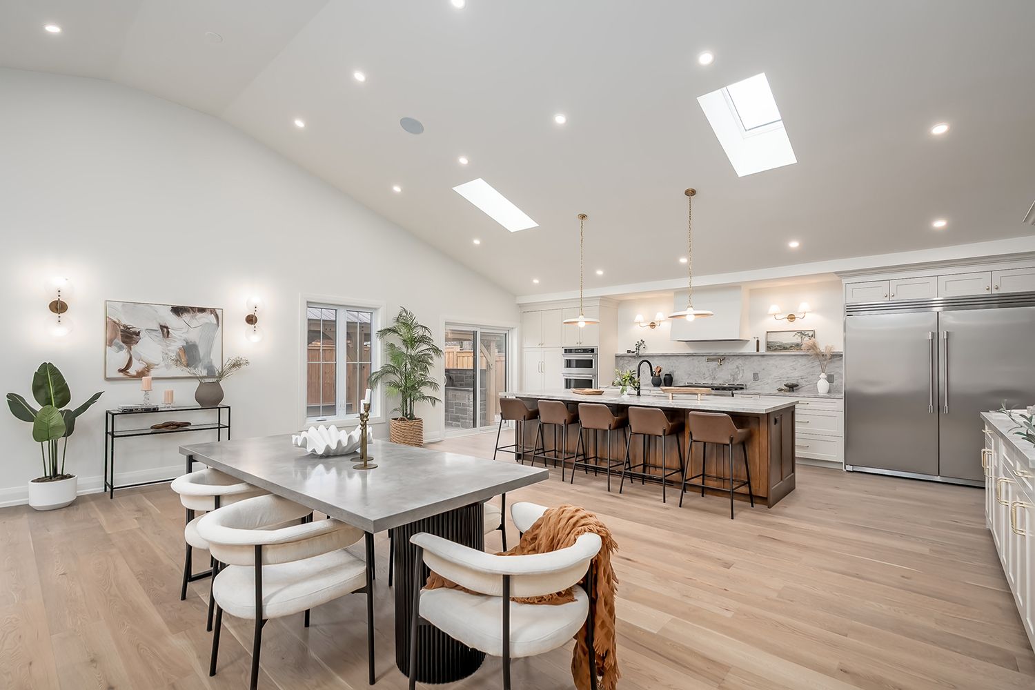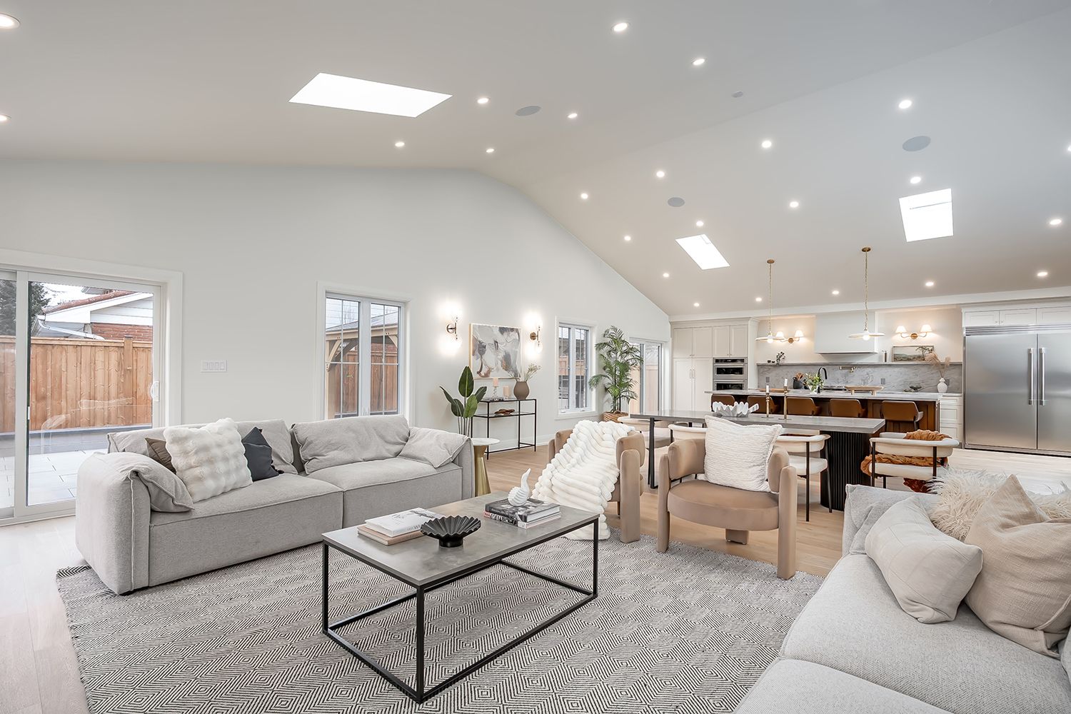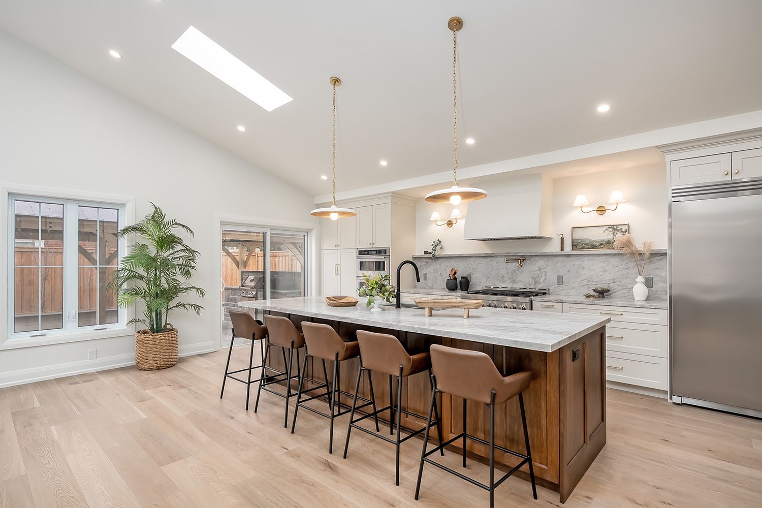 • Great room features high ceilings, skylights, and a cozy gas fireplace.