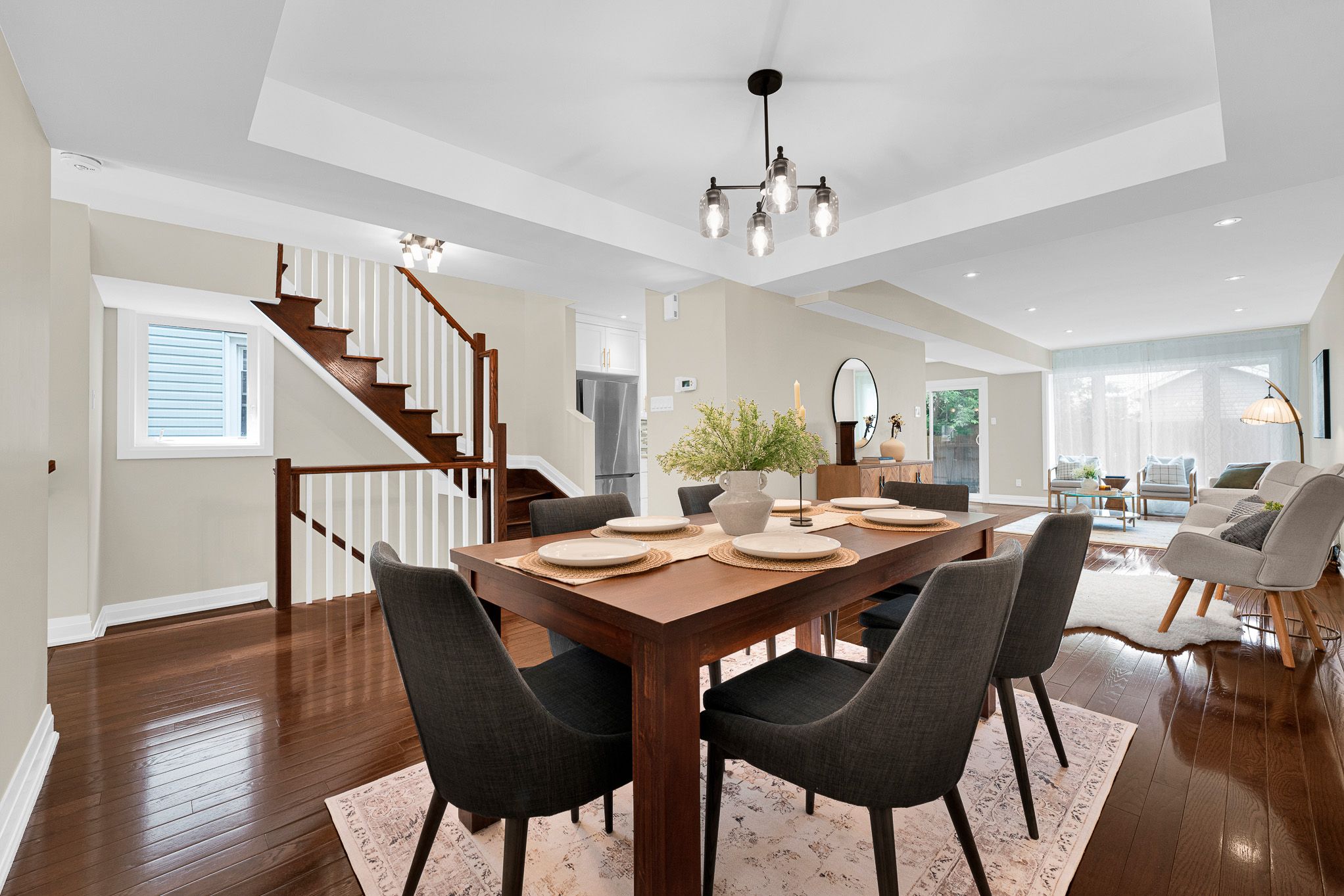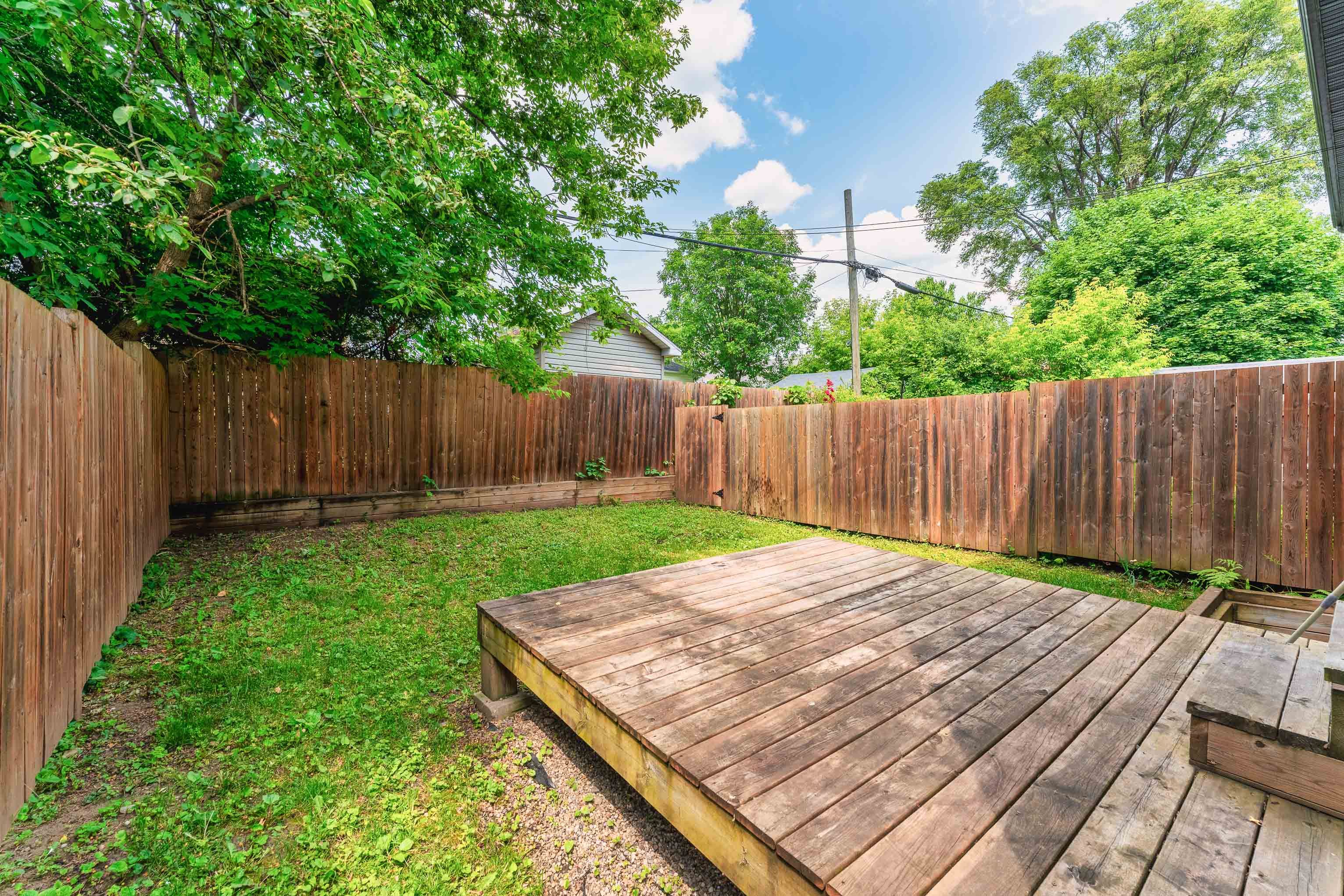• Private fenced backyard with deck and gas BBQ hookup for entertainment.