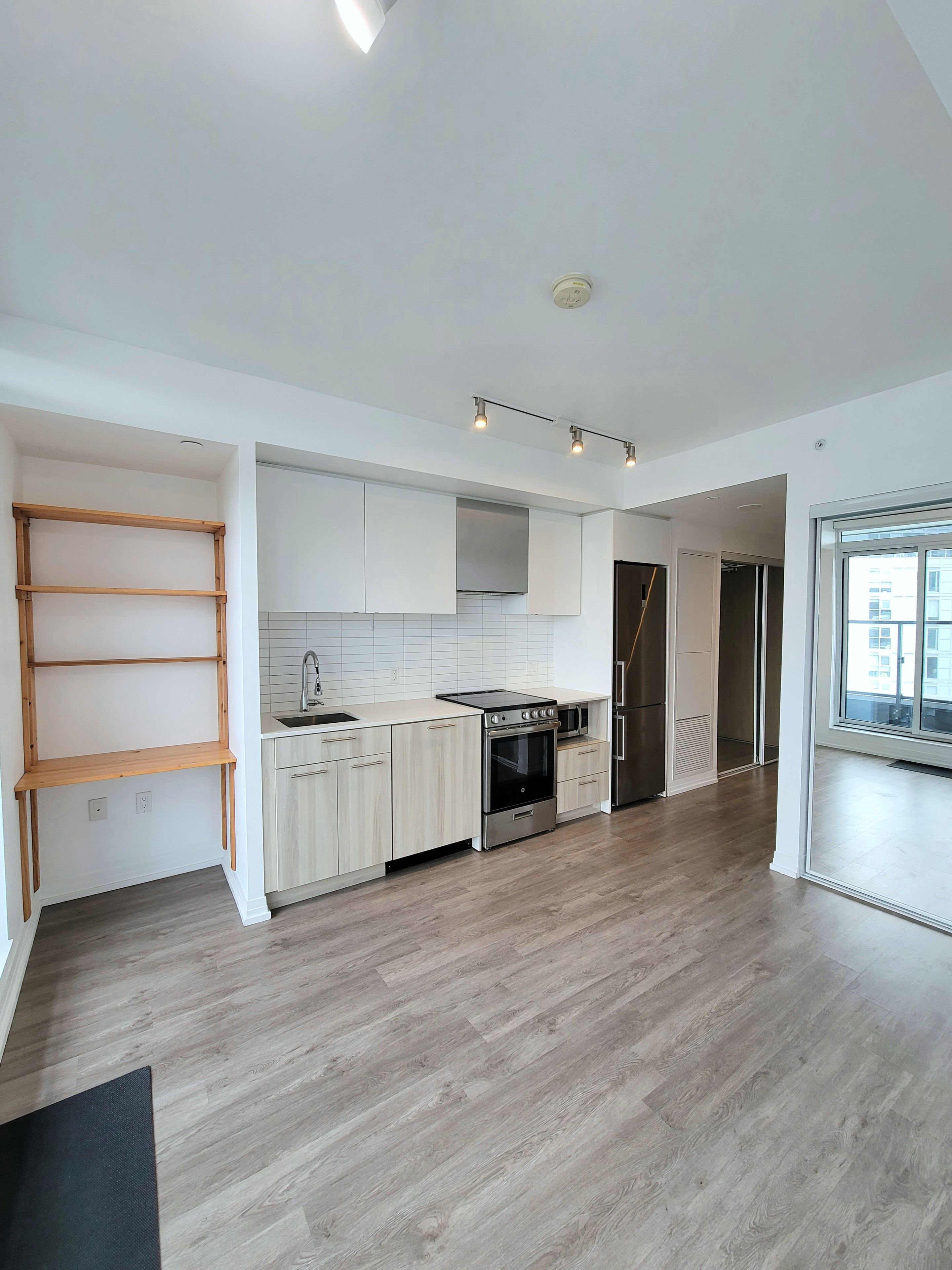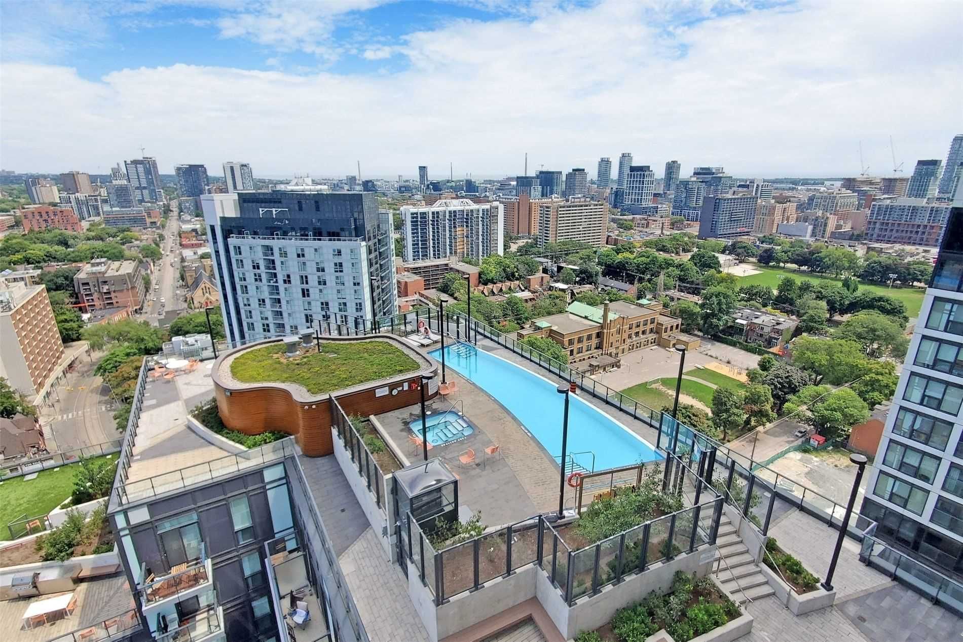 Downtown dundas square gardens condos! Right in the heart of the city, studio with walk-out to spacious balcony with clear unobstructed south city views. Workspace nook for work at home days! The open concept layout with big windows, laminate floors & a kitchen area with stainless appliances. Lots of storage, locker, balcony. Steps to eaton center, ryerson university, george brown, subway station, supermarket, restaurants, library. Excellent amenities, rooftop sky lounge, and four gardens, active lifestyle amenities, 24/7 concierge, lobby with party room & bar. Guest suite, front door ttc & all other amenities.