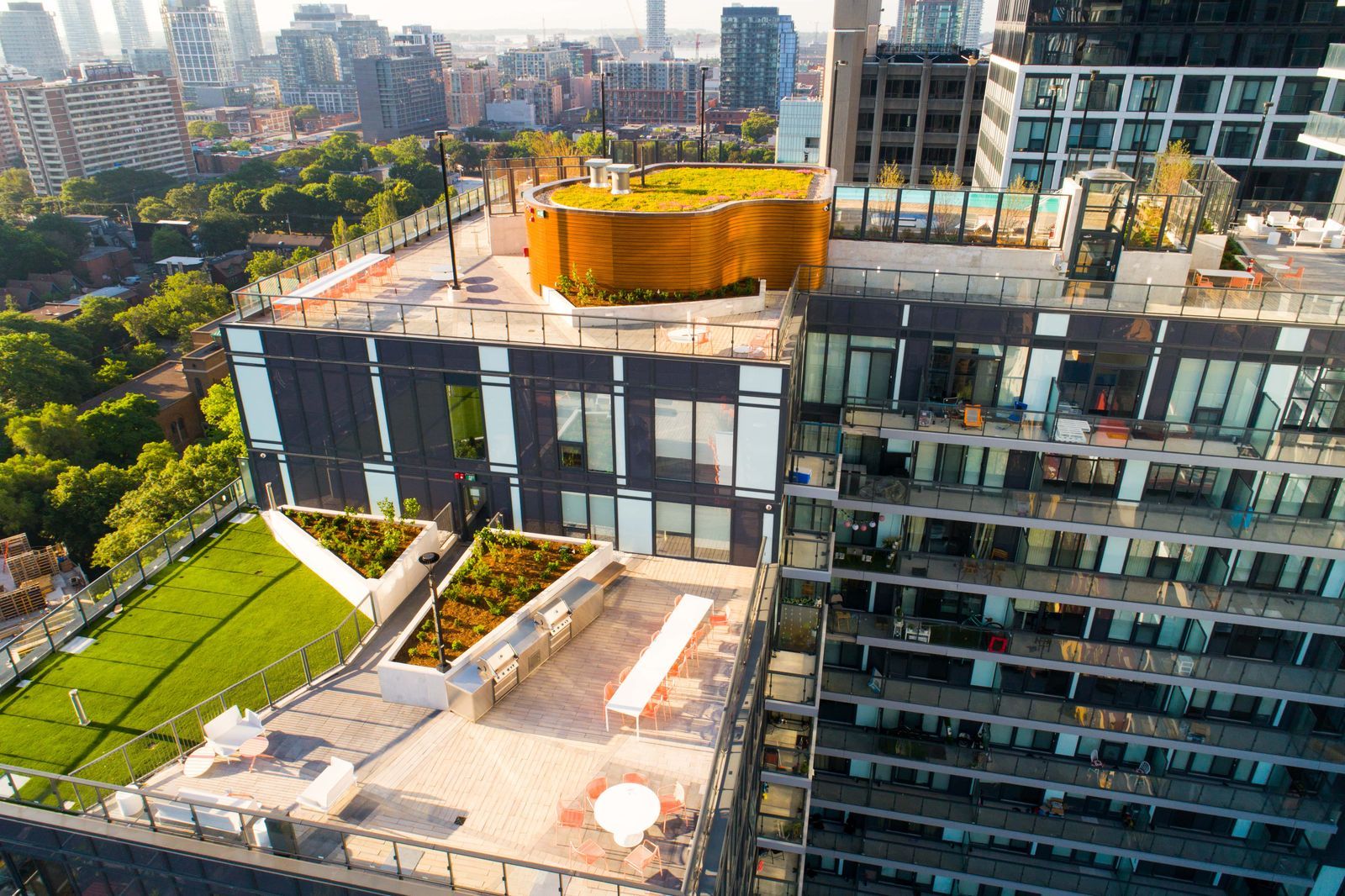 • Building amenities include fitness center, pool, and rooftop terrace.