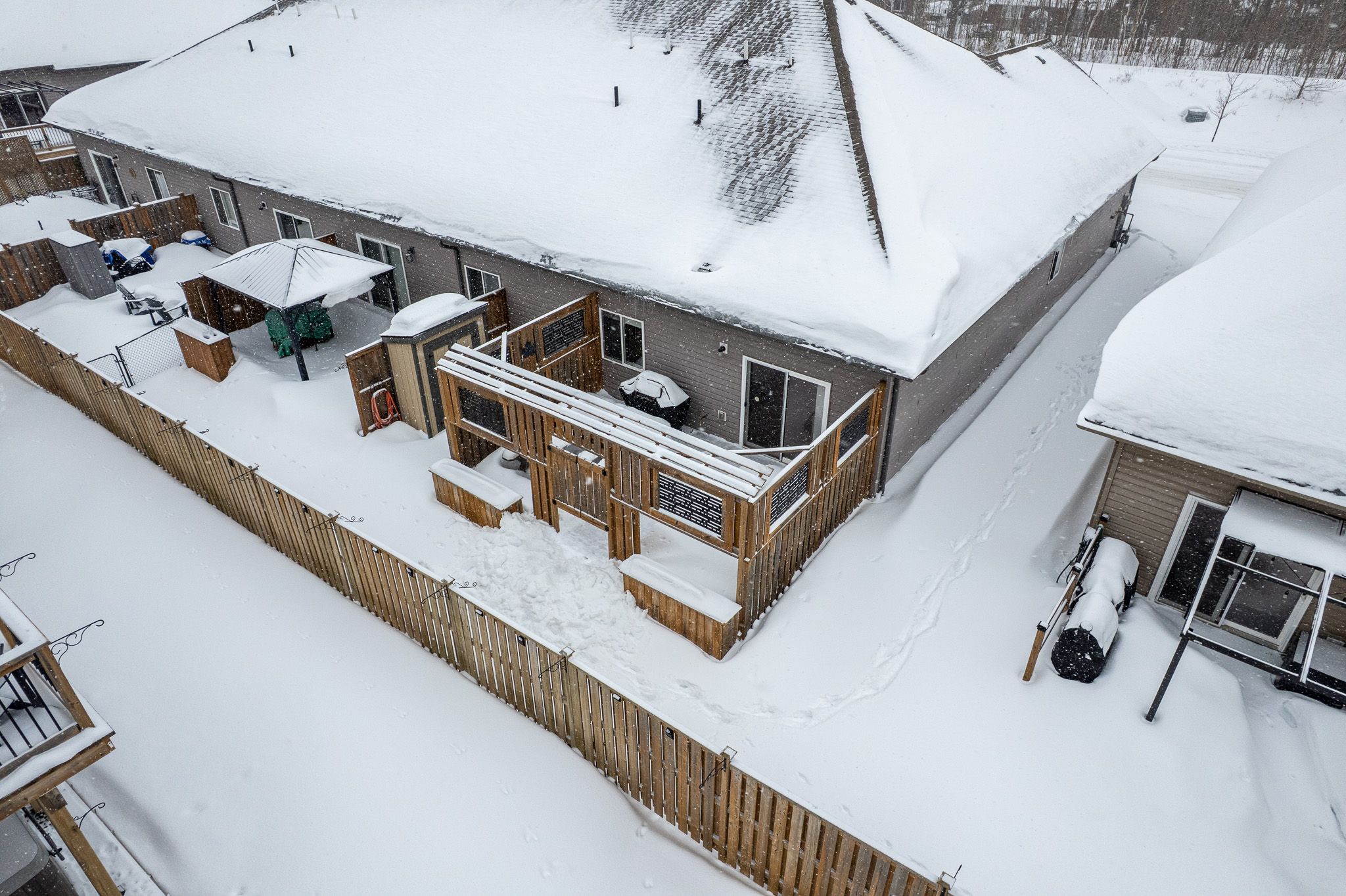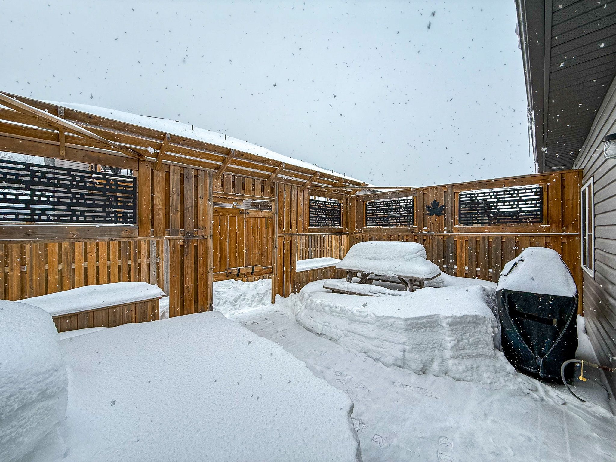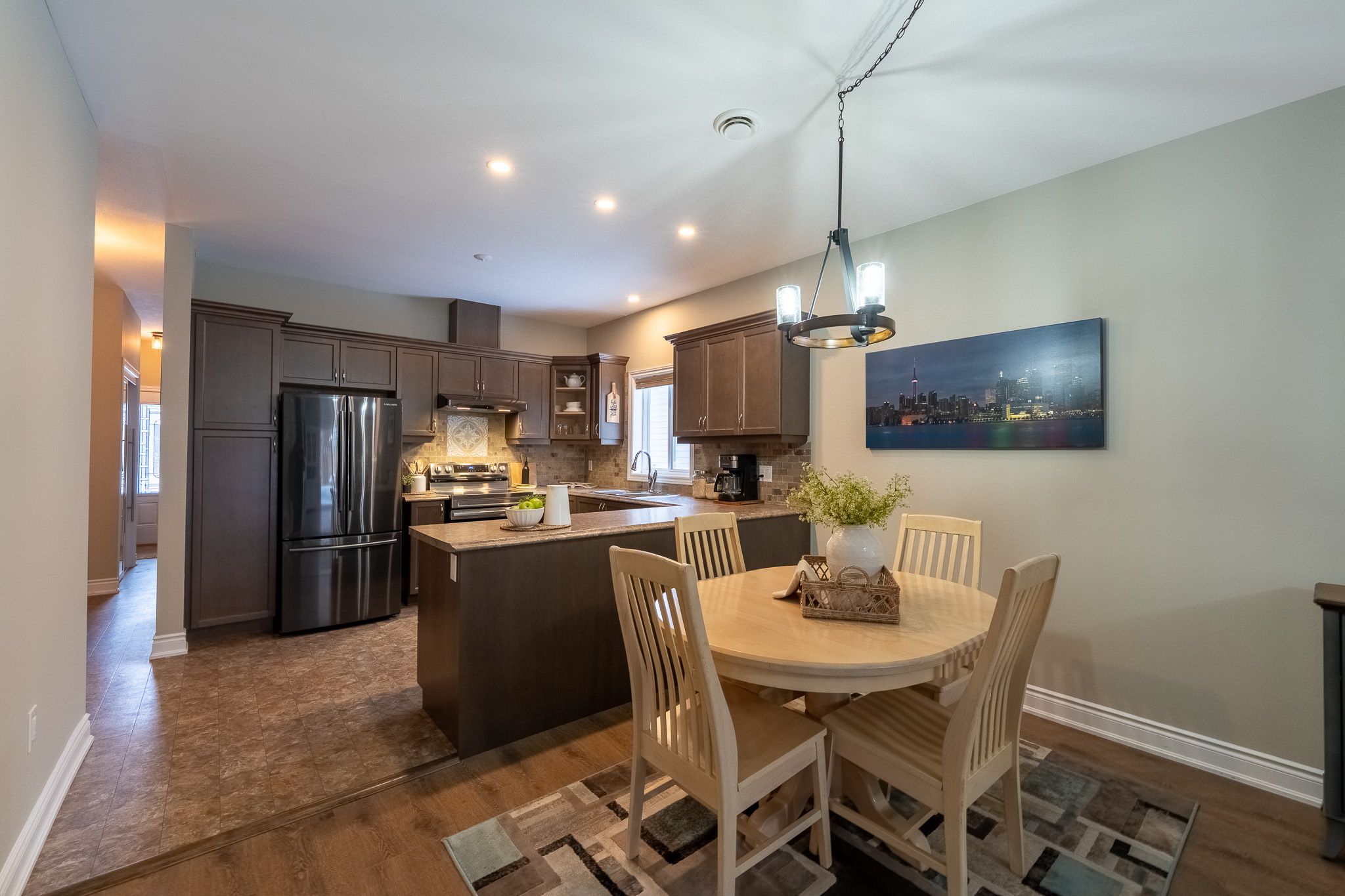 Welcome to effortless, modern living in this beautifully maintained 2018-built, one-owner home, designed for comfort, style, and ease. Offering just over 1,300 sqft of finished living space, this thoughtfully upgraded home is ideal for anyone seeking one-level living - perfect for retirees, down-sizers, or anyone happily done with stairs. Step inside to discover wide plank flooring, upgraded light fixtures, and pot lights throughout, creating a bright and inviting atmosphere. The kitchen is a standout, featuring upgraded cabinetry and appliances, making everyday living and entertaining a pleasure. Enjoy seamless indoor-outdoor living with a sliding door walkout to an impressive back deck, complete with enhanced privacy screening, upgraded fencing, and a natural gas bbq hookup - perfect for relaxing evenings or hosting friends and family. Stylish, low-maintenance, and move-in ready, this home delivers modern convenience with timeless appeal. A rare opportunity to enjoy easy access living without compromising on quality or design-this is one you won't want to miss.