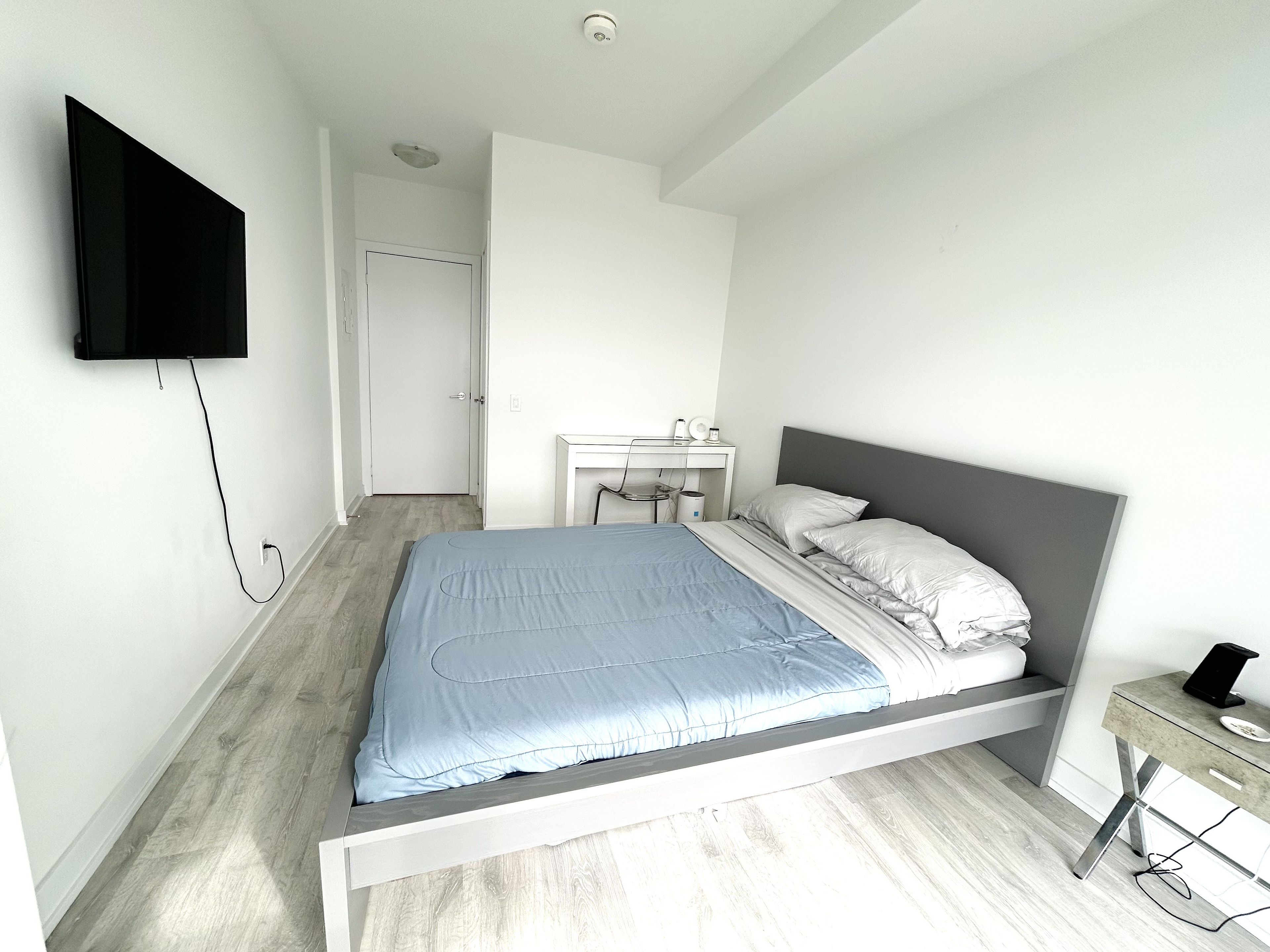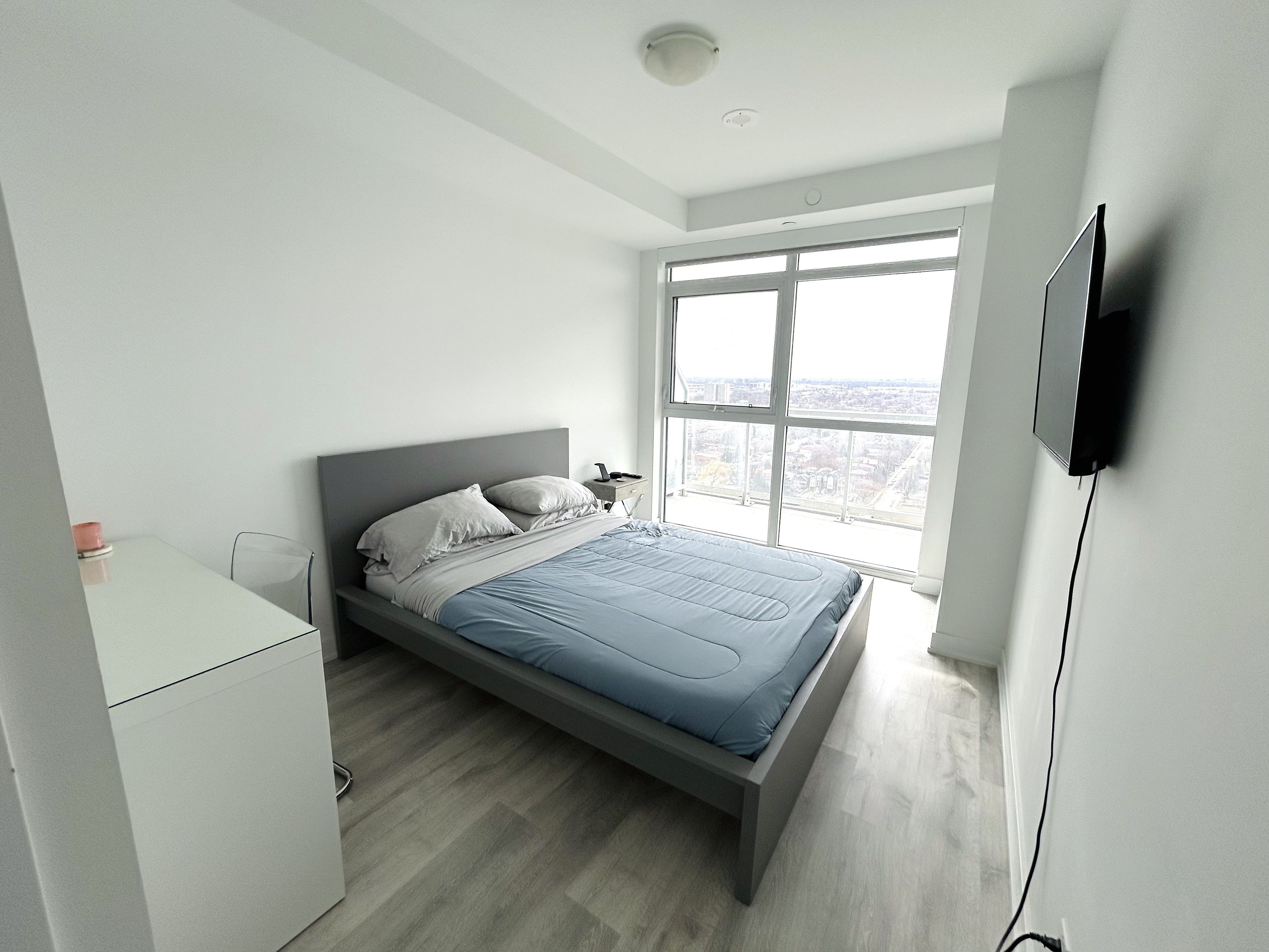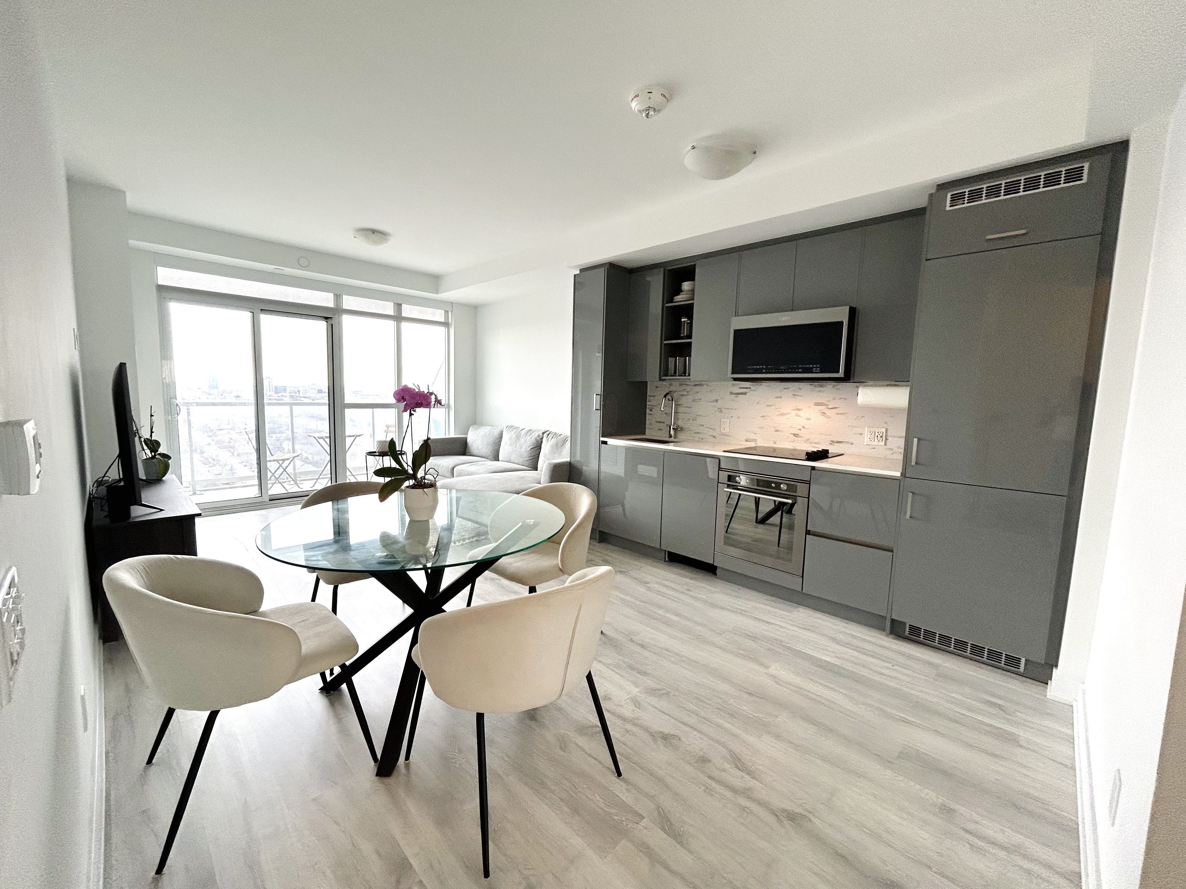 Convenient location, close to lake, parks, downtown, airports, hwys, restaurants and public transit . Great building amenities include gym, spa, outdoor pool, party area and media area.