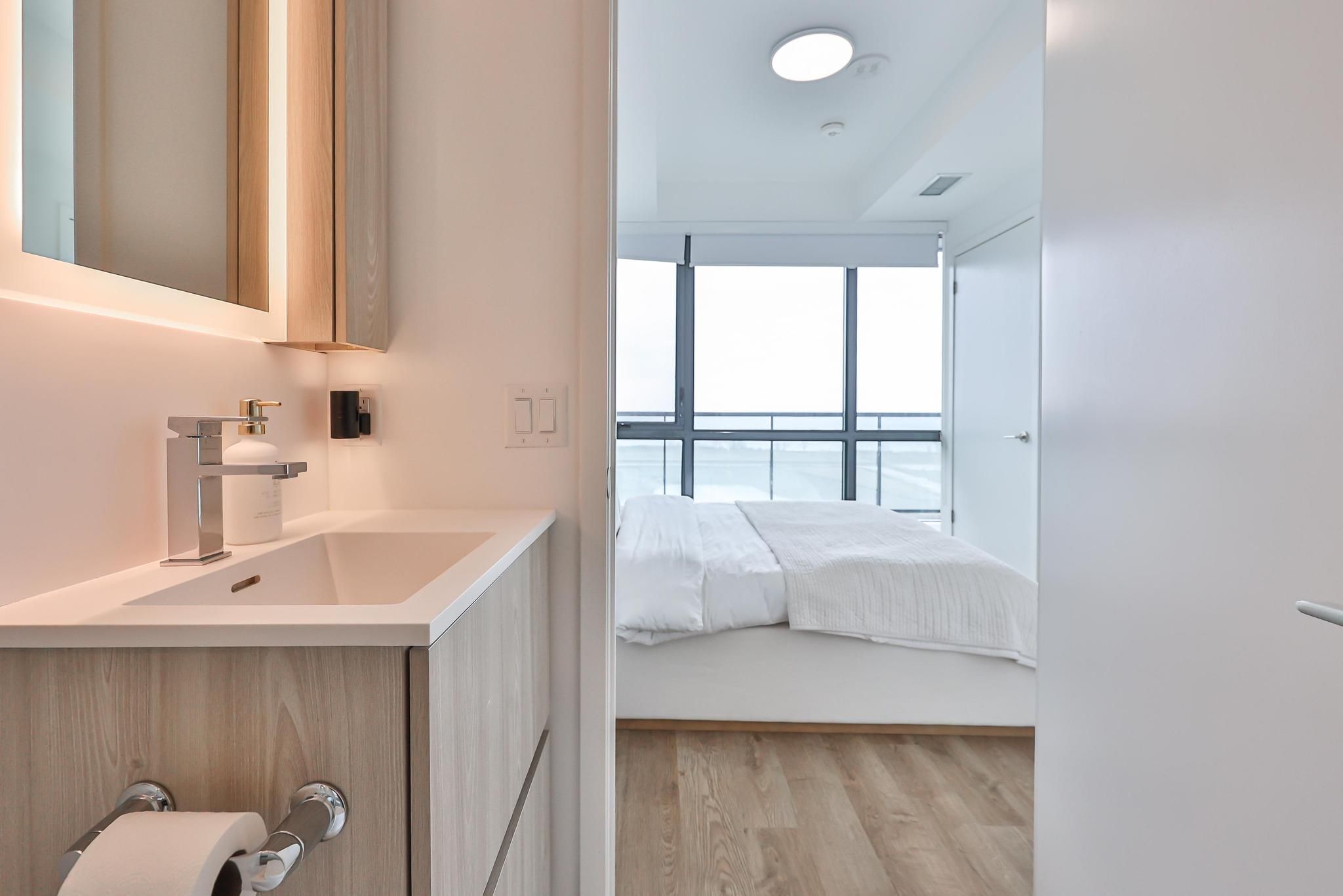 **wake up to the some of the best sunrises port credit has to offer!** this split two bedroom layout with unobstructed views facing both the lake, and city skyline is one you don't want to miss. With 732sqft of space, this corner unit boasts massive floor to ceiling windows allowing for plenty of natural light. Featuring an open-concept living, and dining area, with a sleek kitchen, built-in appliances and a cohesive center island, perfect for cooking and entertaining. Enjoy the convenience of port credit's developing community with farm boy, lcbo, and rexall all within walking distance. Easy access to port credits' strip of vibrant shops, restaurants, and scenic waterfront. Ideal for those seeking a stylish, quiet, and convenient lifestyle! Parking & locker included.