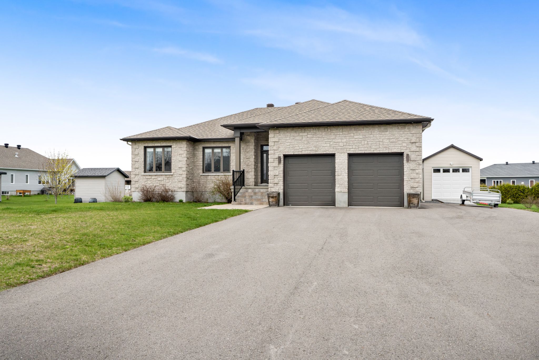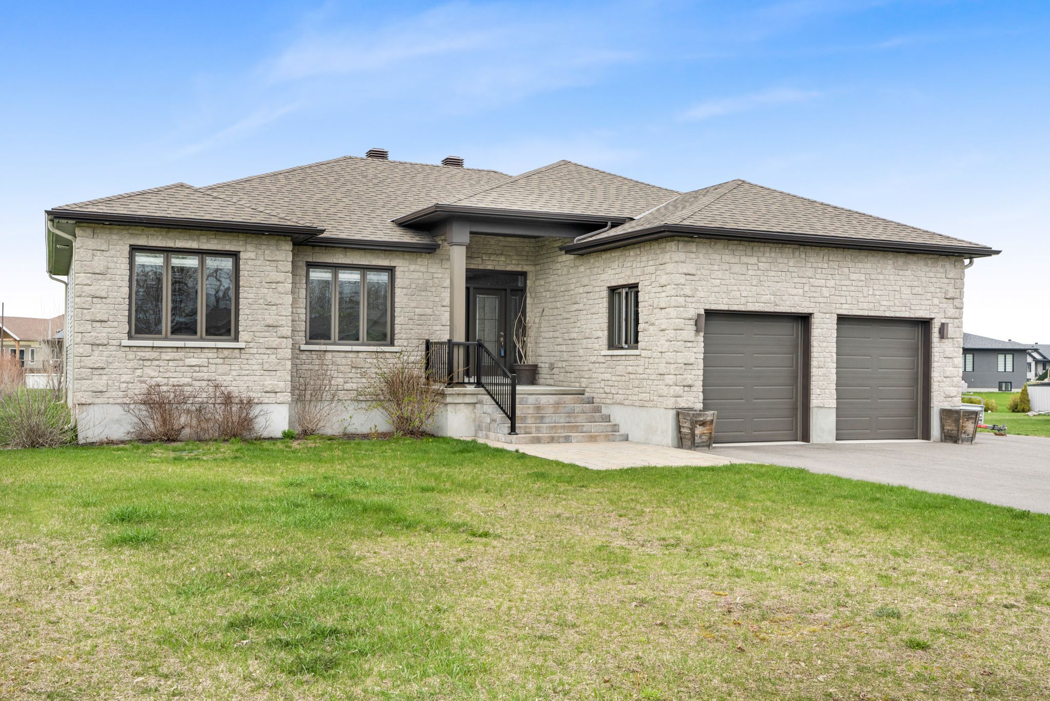 Welcome to 251 des violettes, a place that instantly feels like home. Tucked into a quiet, family-friendly area of hammond, this beautifully cared-for 3+2 bedroom bungalow is one of those homes where you can just feel the pride of ownership. As you walk up the elegant interlock path & front steps, you'll notice how inviting it all feels. Step inside & everything opens up in a way that just makes sense. The kitchen is bright & open, overlooking both the dining area & backyard, so whether you're cooking dinner or hosting friends, you're always part of the conversation. The living room is cozy without feeling closed in, anchored by a gas fireplace that makes it an easy place to unwind. Down the hall, you'll find three generous bedrooms on the main floor, including a spacious primary suite with a walk-in closet & a spa-like ensuite. One of the bedrooms is currently used as a home office, which works perfectly for today's flexible lifestyles. Head downstairs & you'll be surprised by how much space there is. The partially finished basement offers two additional bedrooms, a full bathroom, a second fireplace, a large rec room, a bar area, & tons of storage. Whether you're thinking of guest rooms, a gym, a hobby space, or a hangout zone, the layout gives you options. All that's left is your finishing touch on the ceiling. And then there's the backyard. This is where summer memories are made. A spacious 20x20 deck w/ gazebo sets the scene for bbqs, gatherings, & long sunset evenings. The hot tub, set on an interlock landing, is ready for year-round relaxation. You'll also love the 12x24 insulated, gas-heated shed, ideal for a workshop or extra storage, and the kohler 20kw standby generator gives you peace of mind no matter the season. This home strikes that rare balance between comfort, function, and outdoor living, all in a welcoming community you'll be proud to call home. Once you see it, you'll understand why this one feels special.