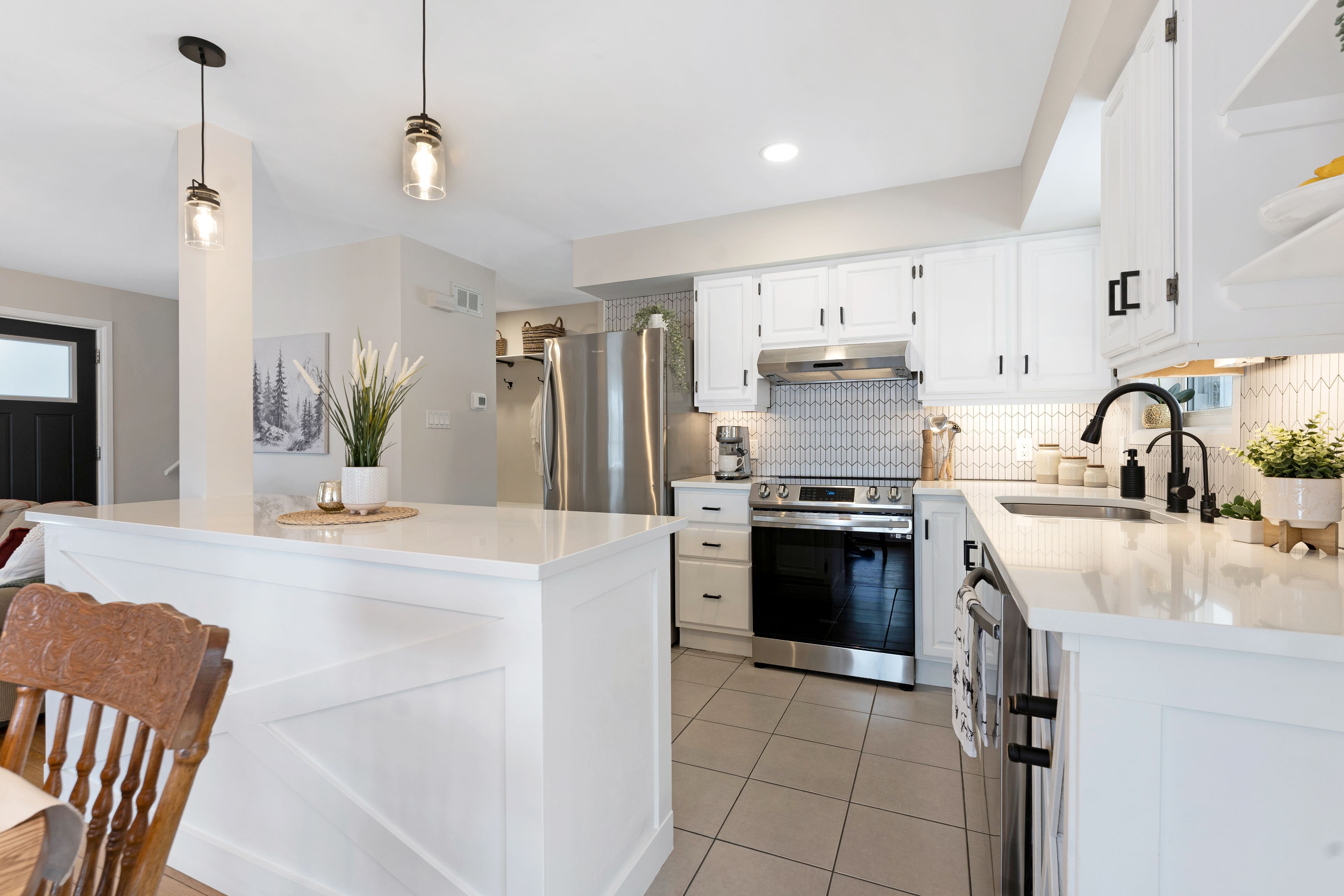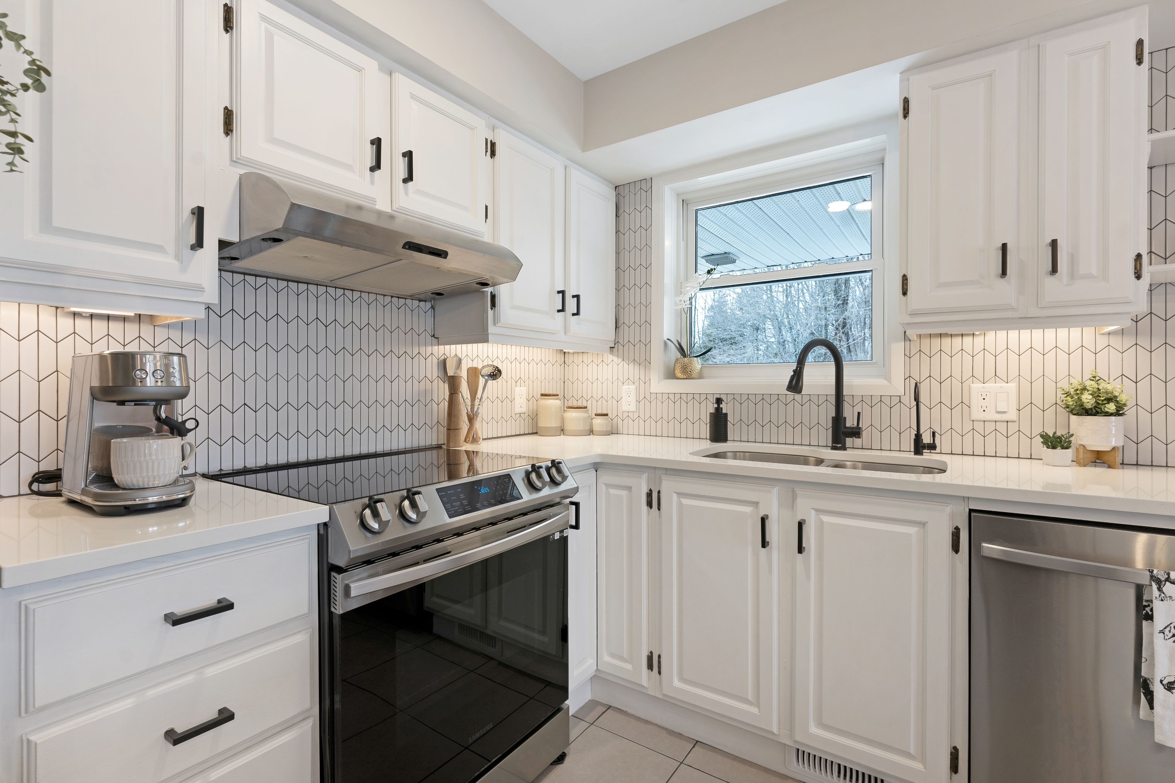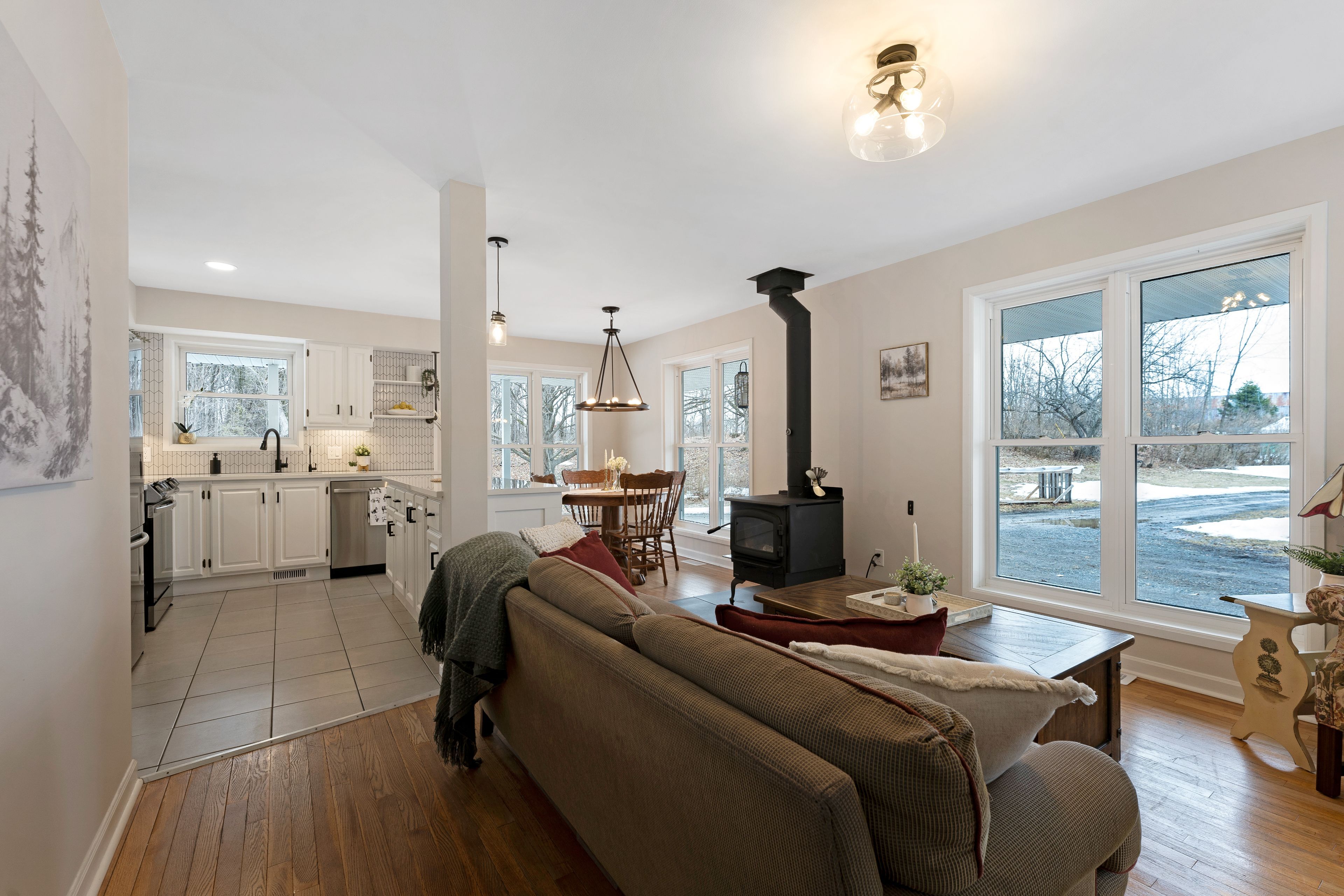 • Thoughtfully updated kitchen flows into a bright dining area with nature views.