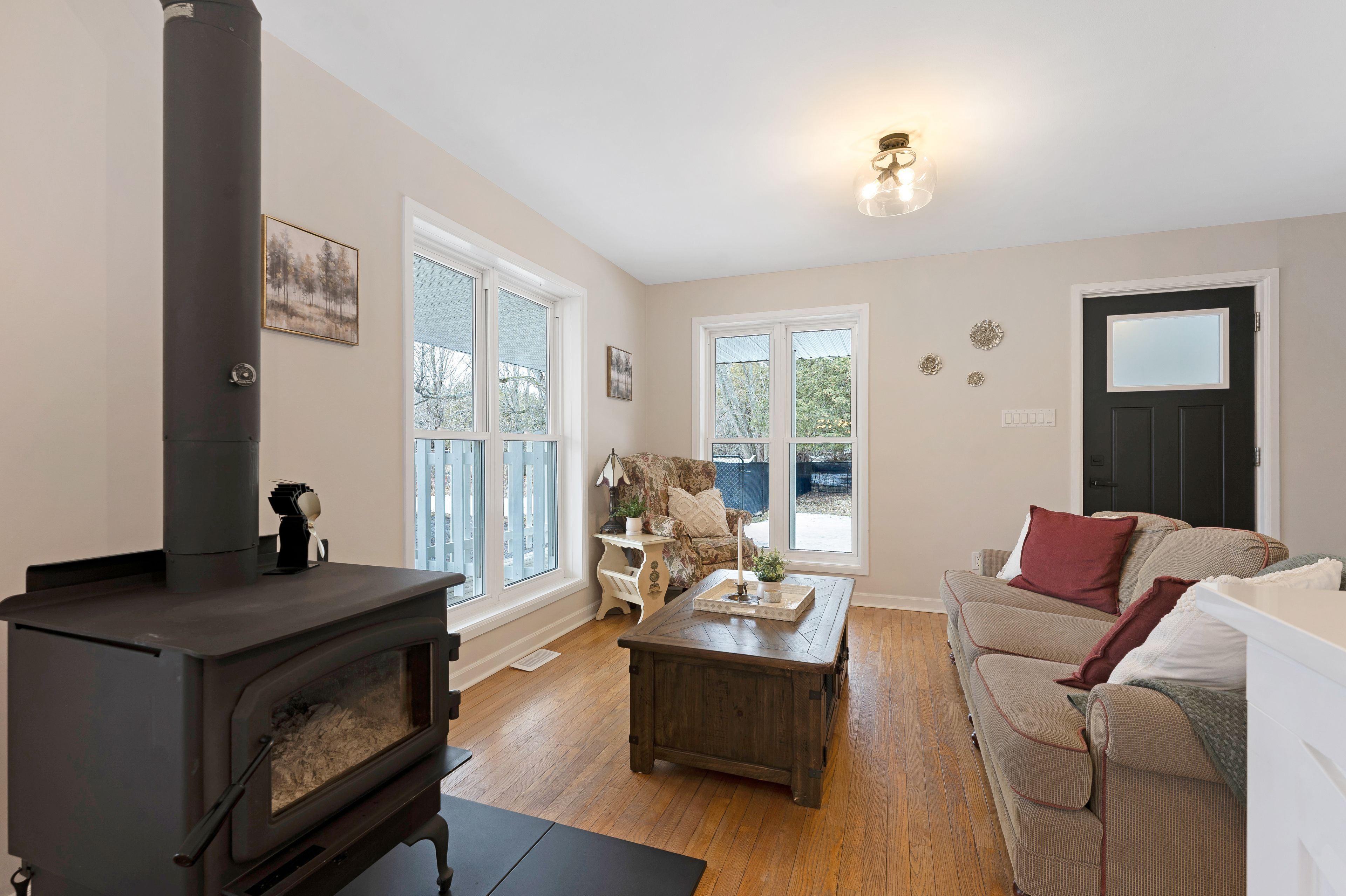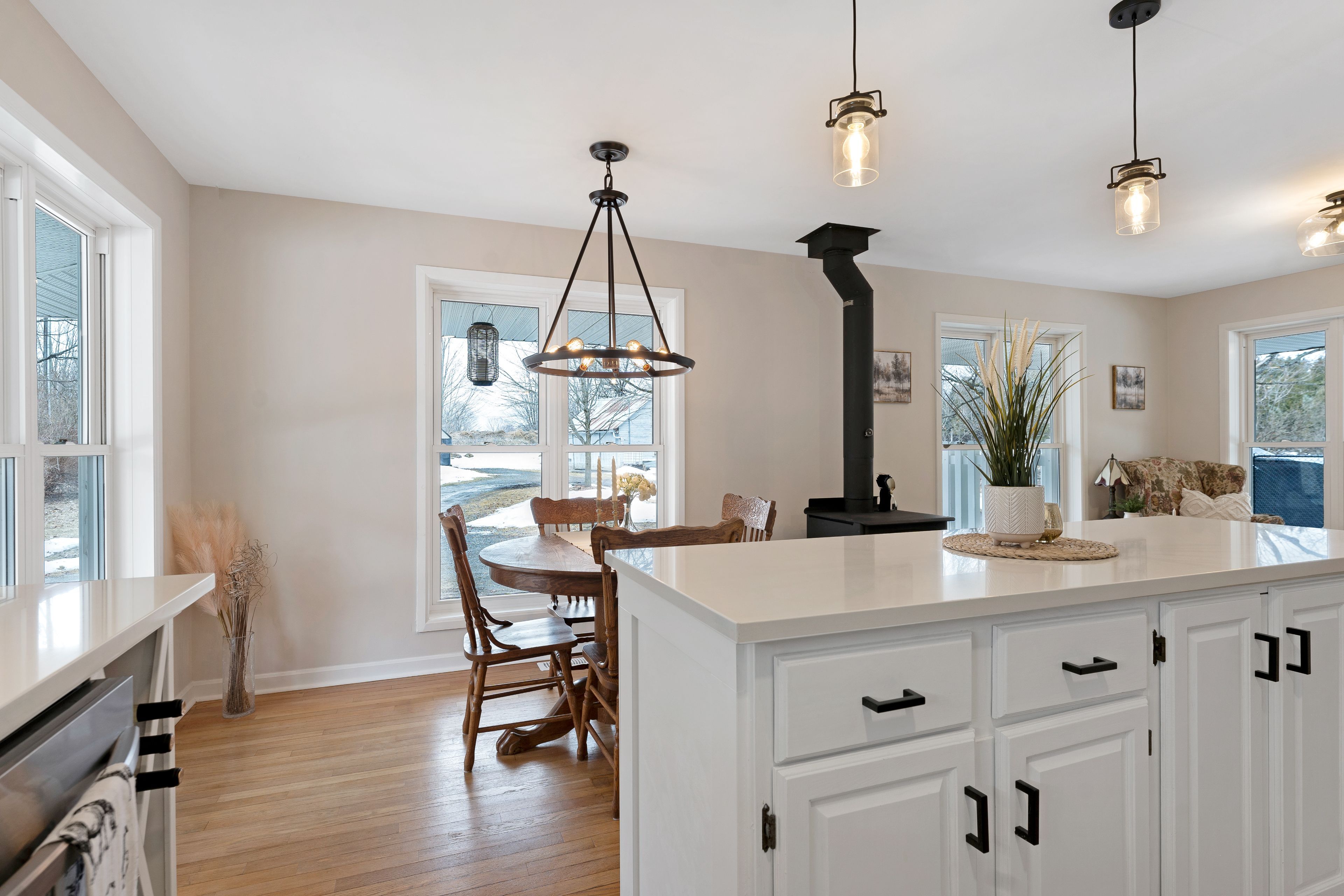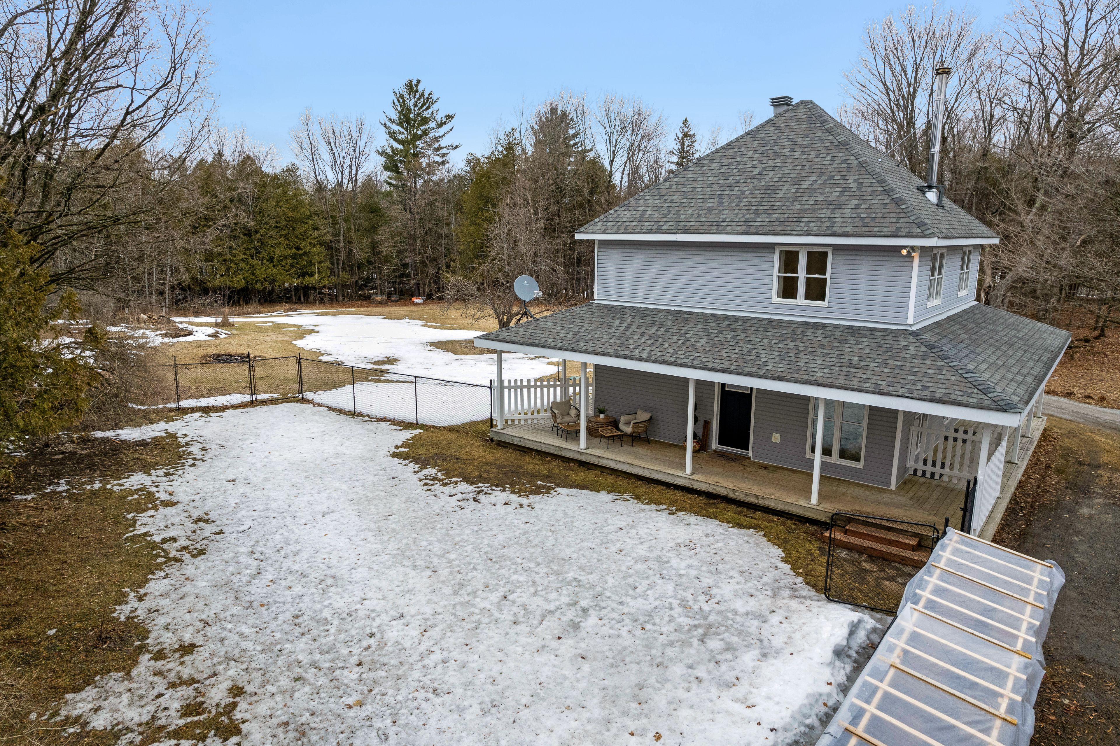 Welcome to your private countryside escape on 11. 8 acres on a dead end road, where modern farmhouse charm meets everyday functionality. Built in 2002 and thoughtfully updated, this inviting home offers the perfect blend of comfort, space, and rural serenity. Step inside to a beautifully customized kitchen (2018), designed for both style and practicality, flowing seamlessly into a bright dining area surrounded by windows and views of nature. A cozy new woodstove (2024) adds warmth and character, making this home as comfortable as it is charming. Outside, the lifestyle truly shines. A classic wraparound porch, with propane bbq hook-up, invites you to slow down and take in the peaceful surroundings, while the long, winding driveway leads you past a picturesque creek, complete with your own wooden bridge, setting the tone for this one-of-a-kind property! Explore your land with established apple trees, a mature pear tree, veggie garden, and ample space for recreation, gardening, or even a private hunting area. The detached garage/workshop/barn with separate 100 amp panel offers incredible versatility for hobbies, storage, or small scale farming. A newly added fenced dog run (2024) is perfect for pet owners or young families. Located just 23 minutes to almonte, 13 minutes to clayton canine camp, and only 1 hour to ottawa. Outdoor enthusiasts will love being just 10 minutes from the clayton lake boat launch, with access to taylor lake for boating, paddling, and fishing adventures. This property delivers space, privacy, and the charm of country living!