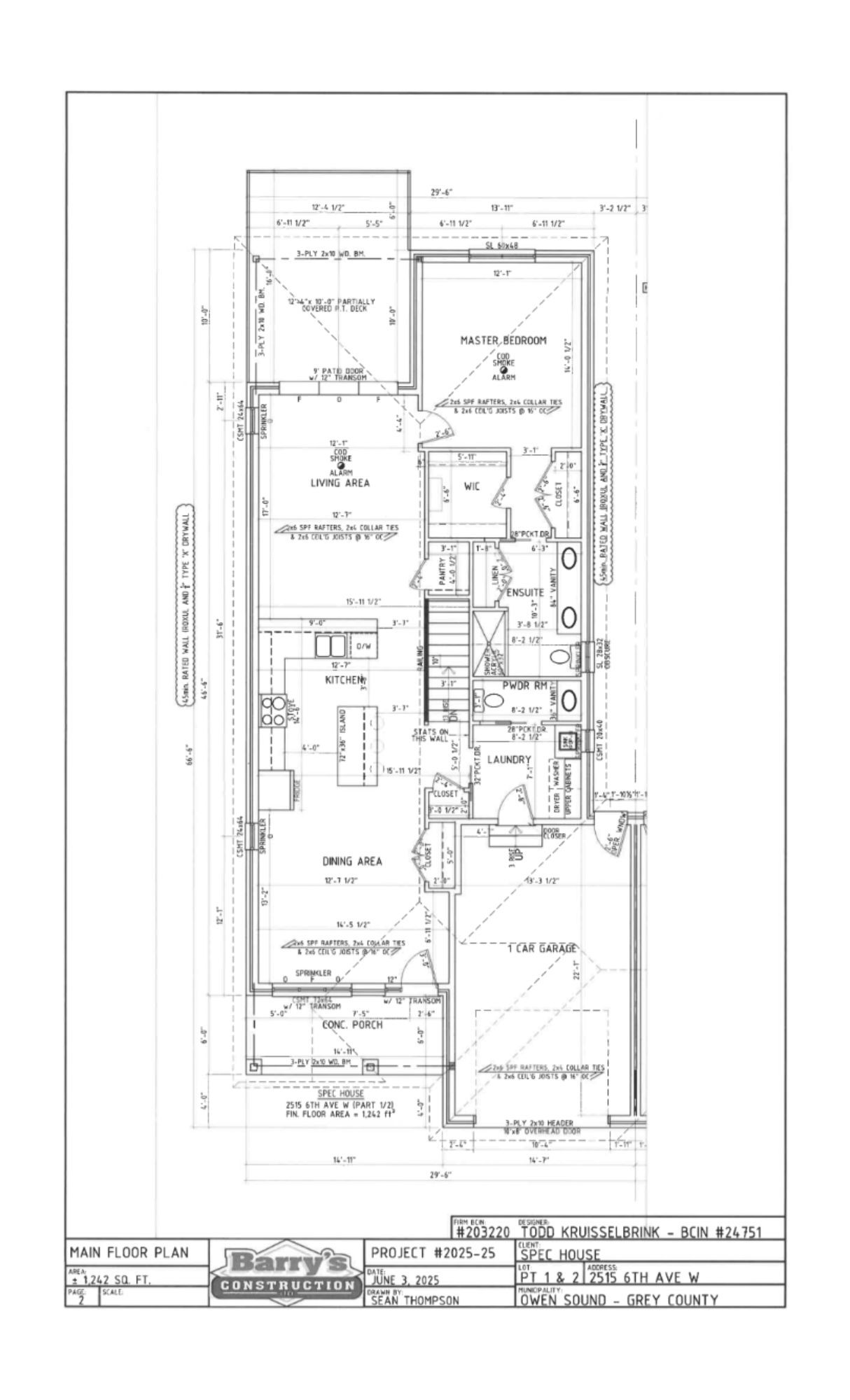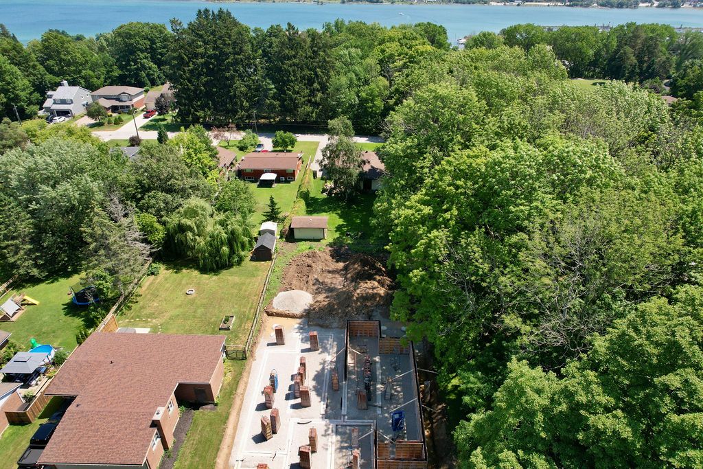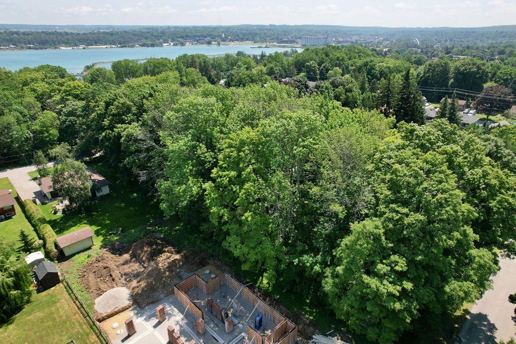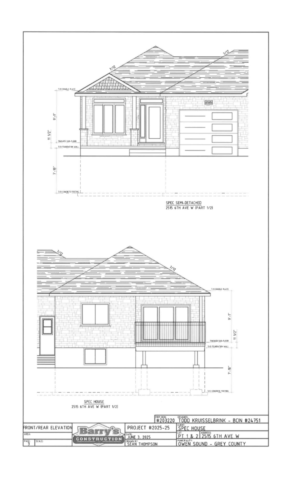 Welcome this spacious and beautiful finished semi-detached bungalow, offers 1,242 sq. Feet per floor and located in a desirable, family-friendly neighborhood on the west side, only a five minute walk to the water. The main level features oversized open concept layout of living room, kitchen and dining room and a large master bedroom. The kitchen boasts a large island with electrical outlet, quartz countertops, opens to the dining area with a 12' x 16' pressure-treated back deck that is partially covered for year round bbqs. The main floor includes convenient laundry with cabinets, the flooring is vinyl plank and ceramic tile in all bathrooms and the mud/laundry room. The primary suite offers a 4-piece ensuite with an acrylic shower, large walkin closet and a second large while a 2 piece powder room serves guests, the fully finished basement adds living space, with two additional bedrooms, a 3-piece bathroom, a large utility room with extra storage, and a spacious family room complete with carpet, a direct vent gas fireplace, and a stylish painted mantel. Hard wood stairs lead down to this cozy lower level, which also features 8' ceilings (except under bulkheads) and a rough-in for central vacuum. The home showcases exceptional curb appeal with shouldice stone exterior wrapping the entire unit, vinyl shakes above the main window, a fully covered concrete front porch with a cold room underneath, and a finished garage. A concrete driveway connects the garage to the street, with an additional walkway leading to the front entrance. The exterior is completed with a fully fenced, fully sodded yard perfect for outdoor living. Added highlights include central air conditioning, a high-efficiency gas forced-air furnace, and a hrv system. This move-in-ready home combines comfort, style, and convenience in a prime location. Don't miss your chance to make it yours! Taxes still to be calculated yet. Note. The adjoining wall is only in the garage, not in the house area.