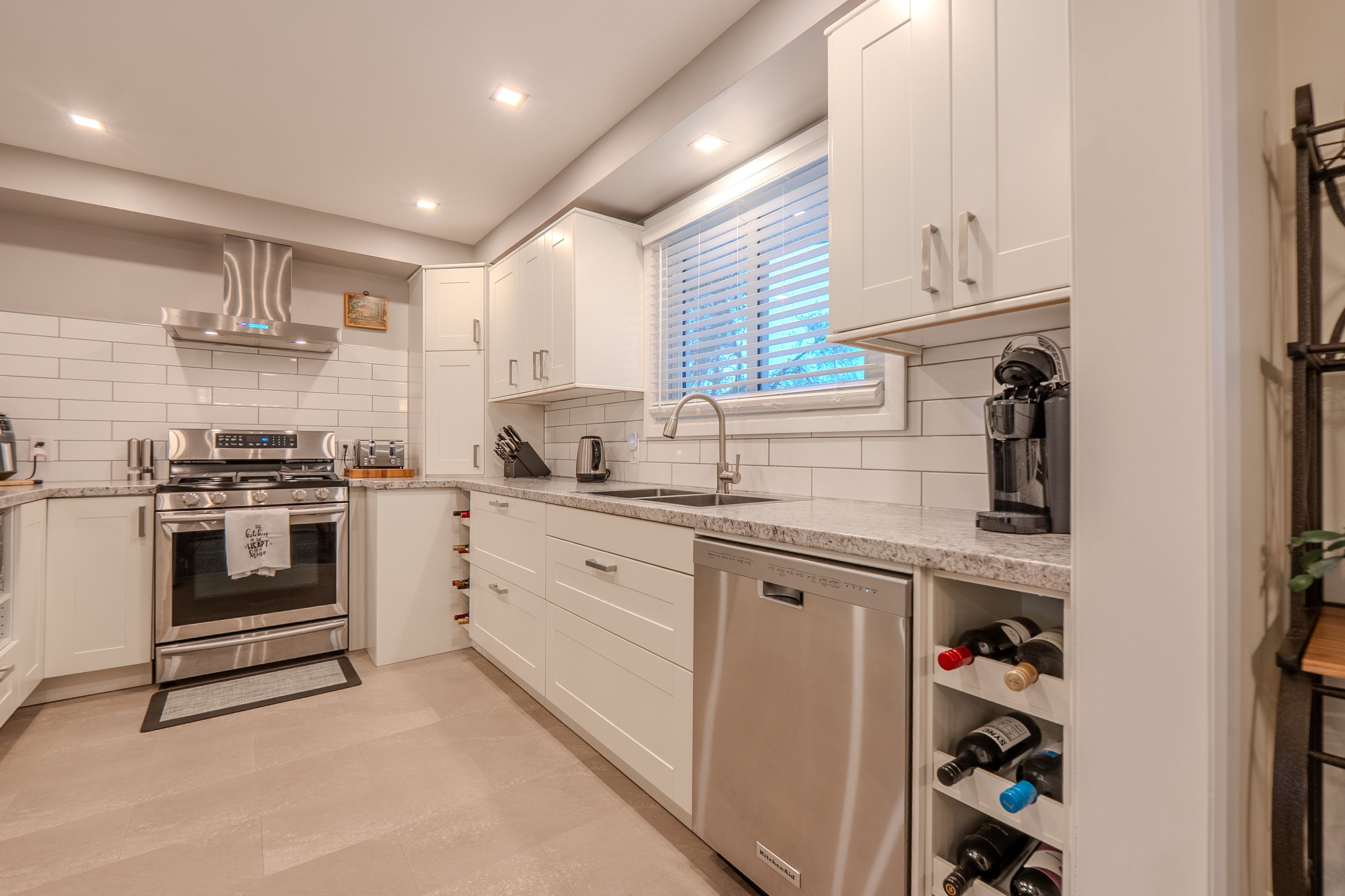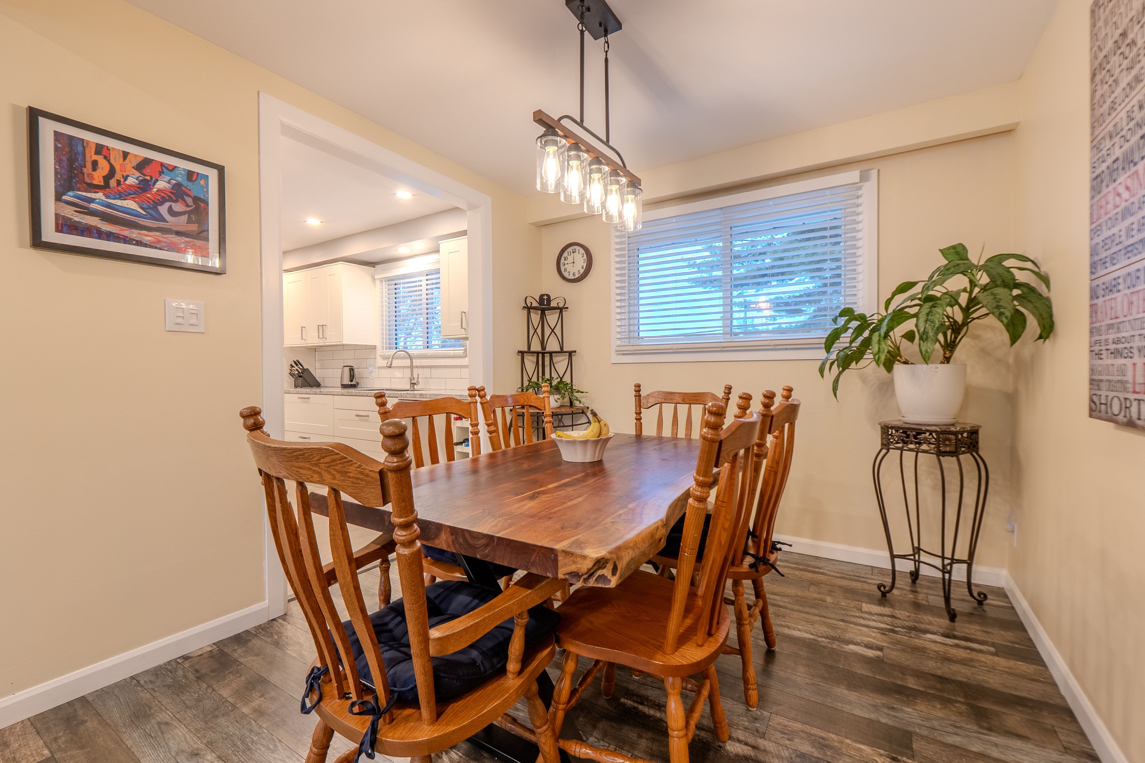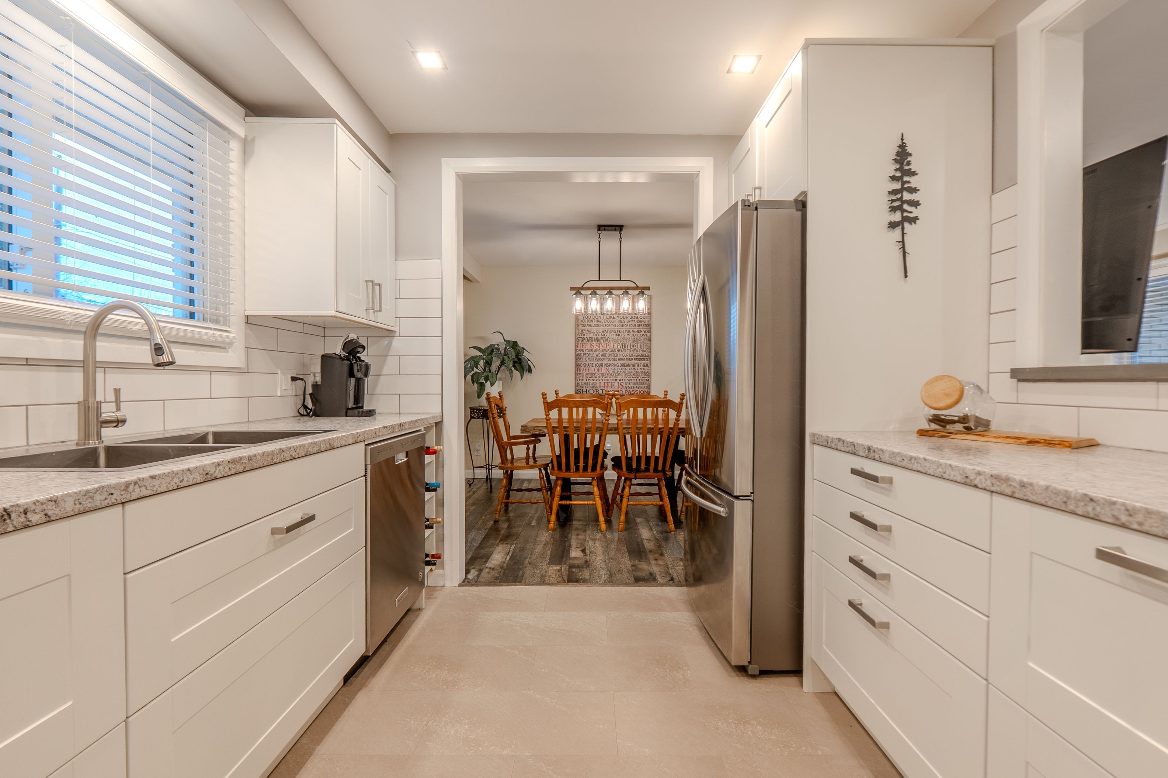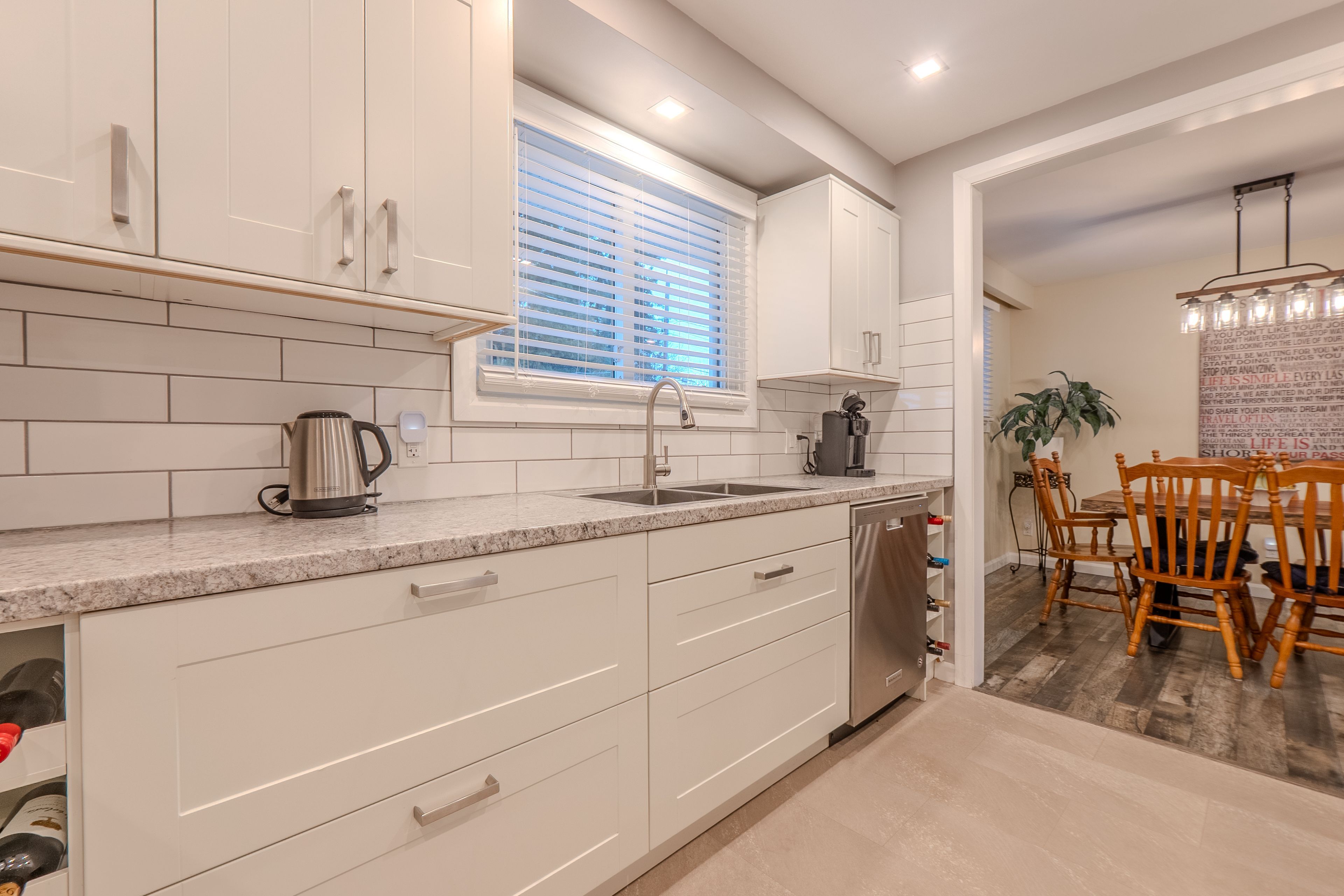• Renovated kitchen with bar top and separate dining area.