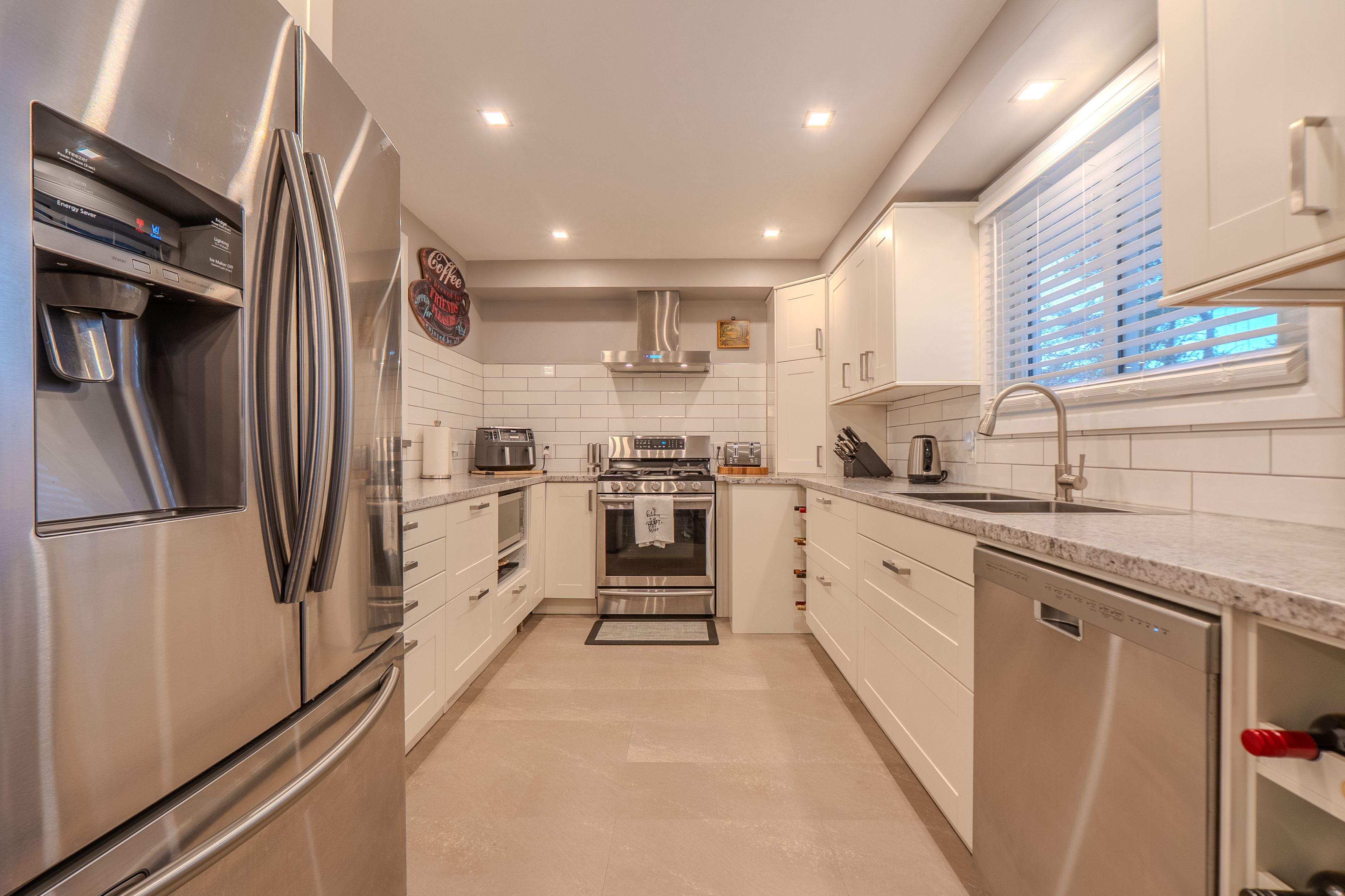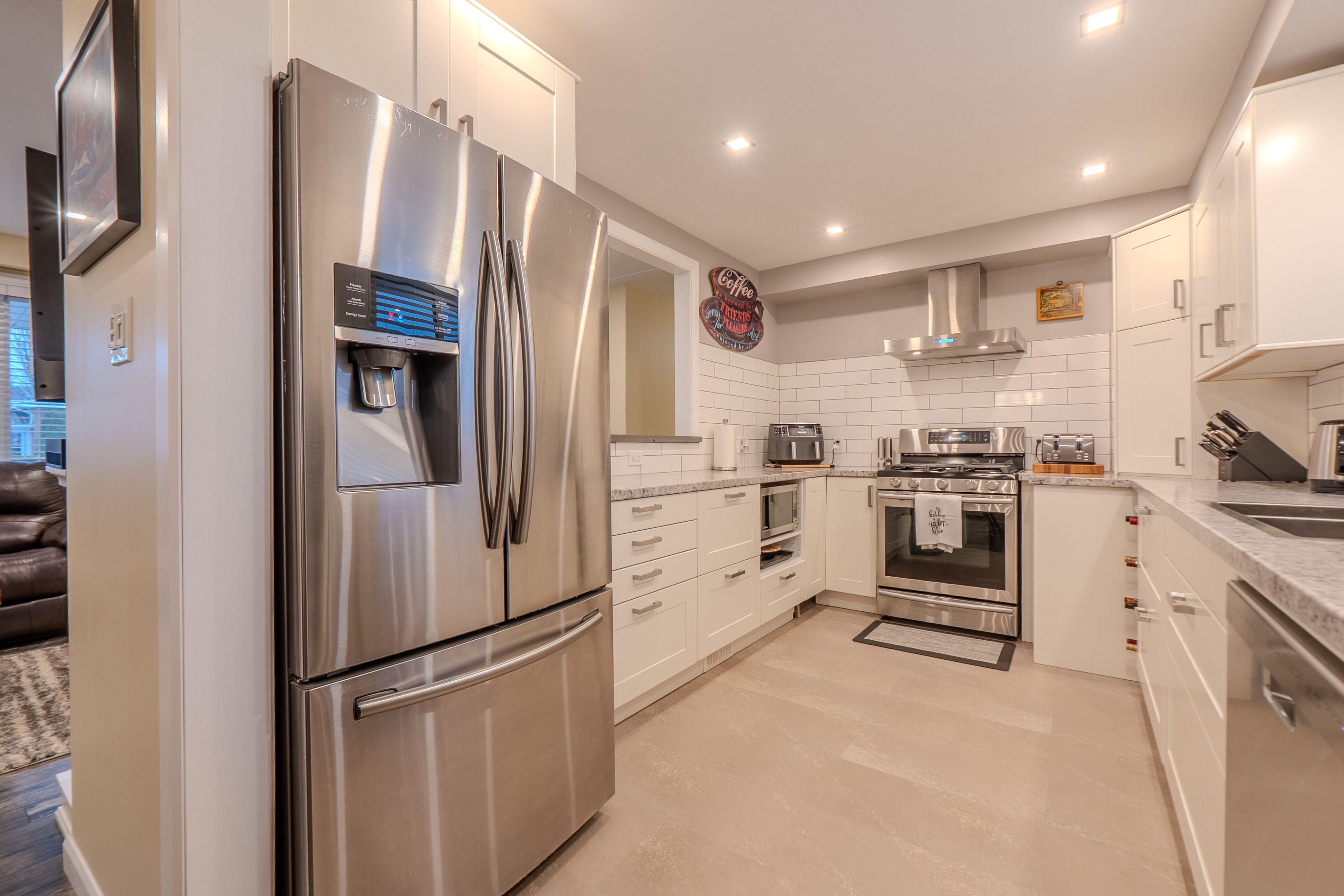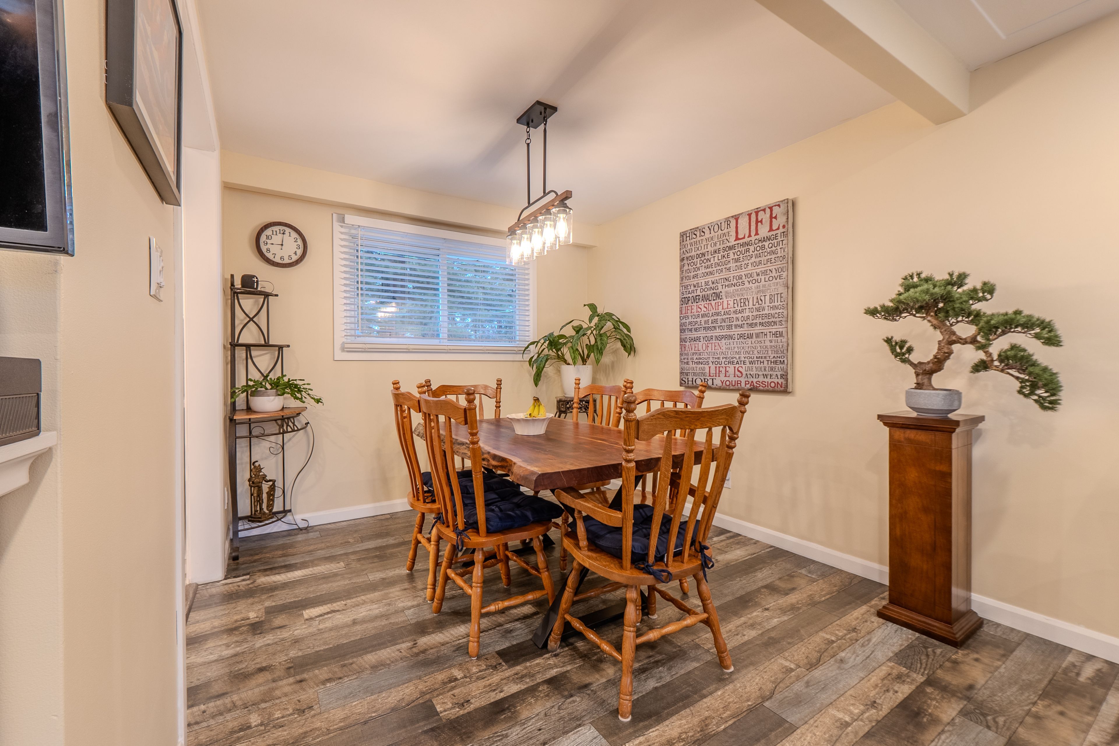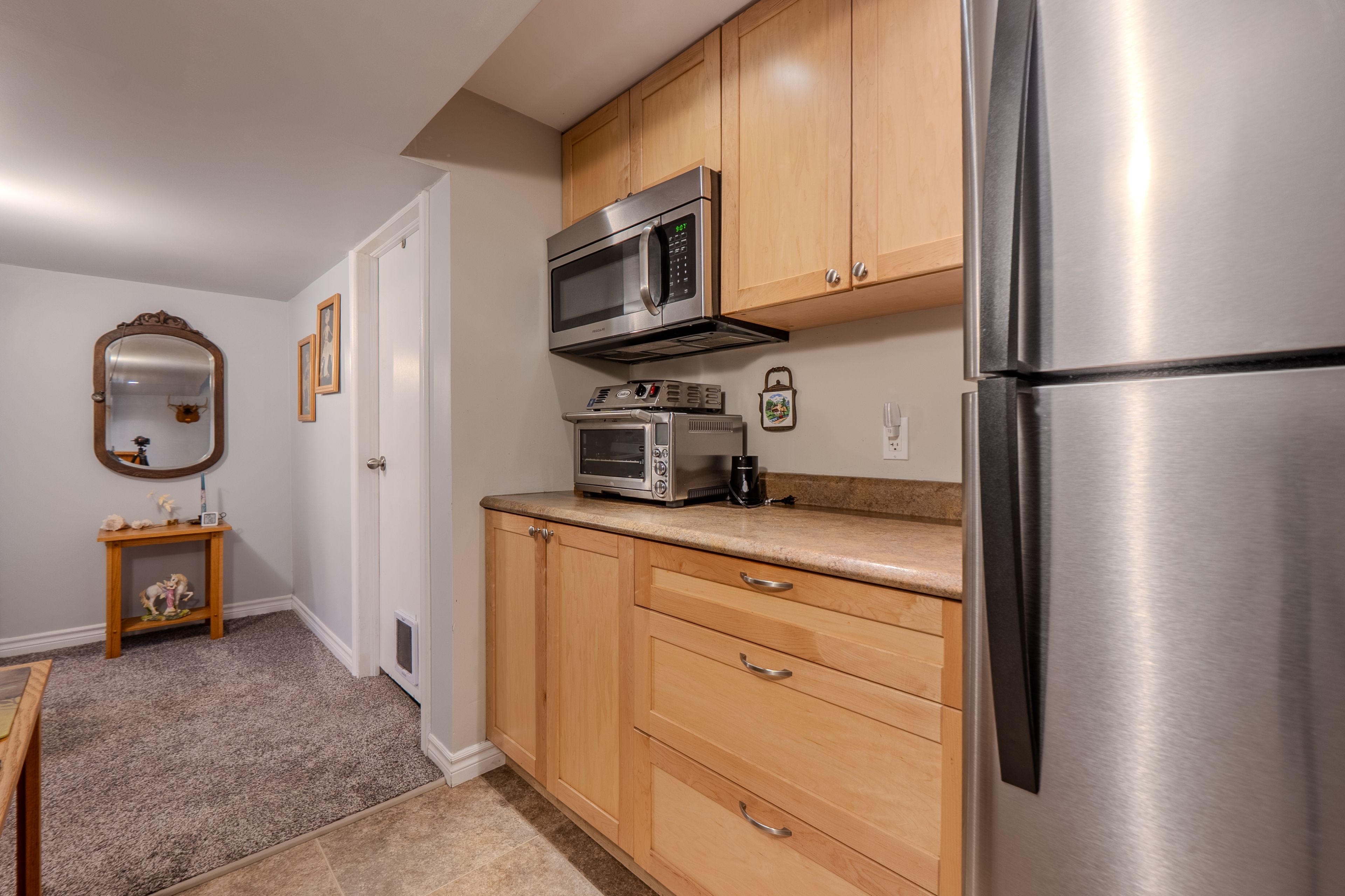 • Renovated kitchen with bar top and separate dining area.