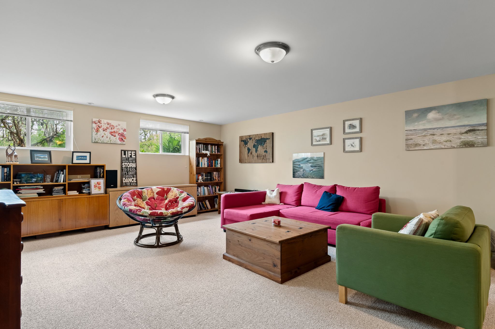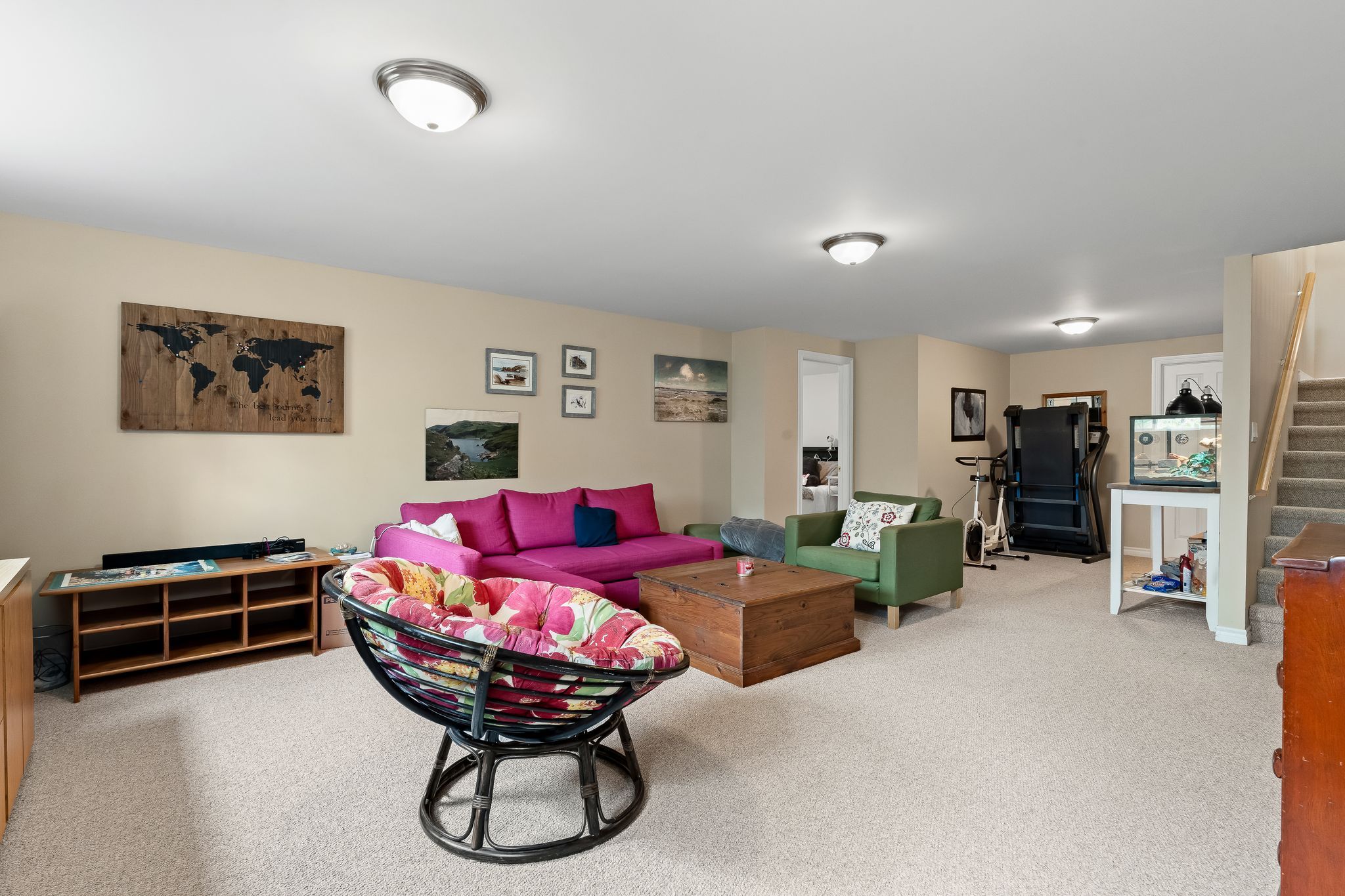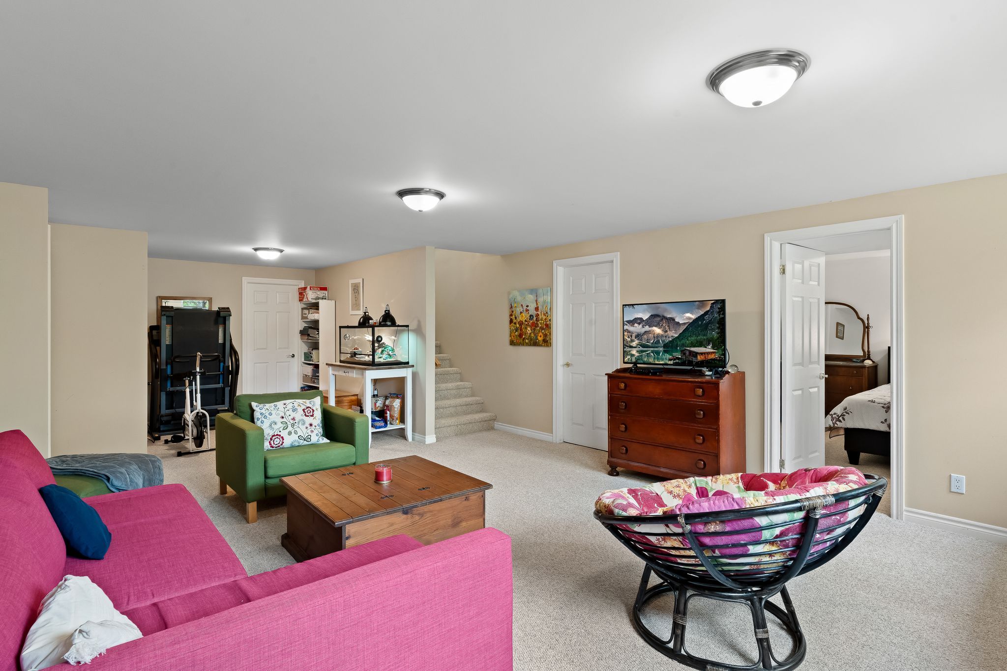 • Versatile lower level suitable for guests or hobbies with ample storage.