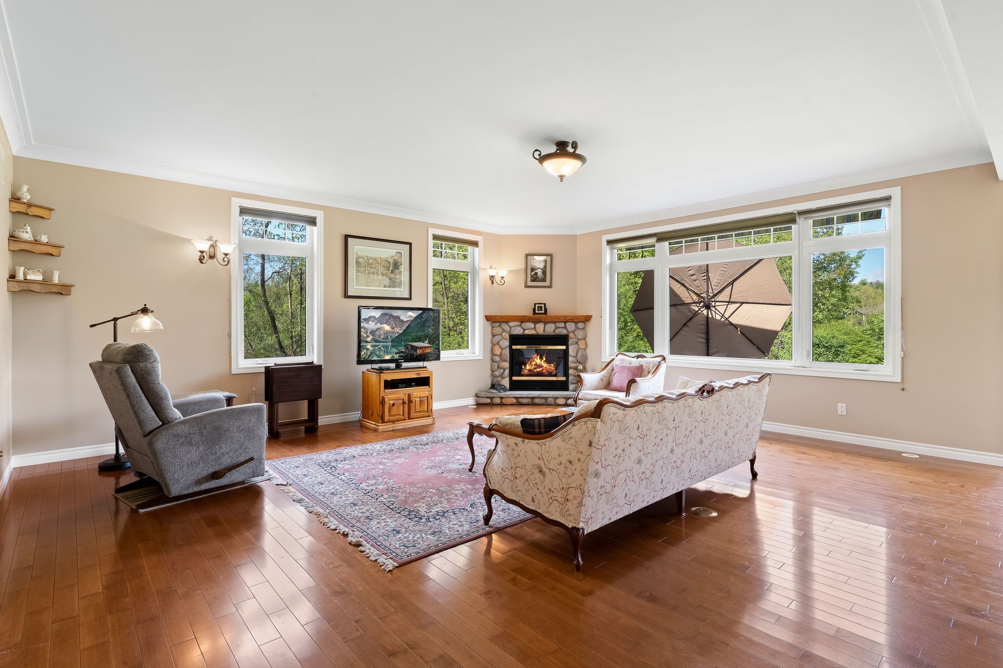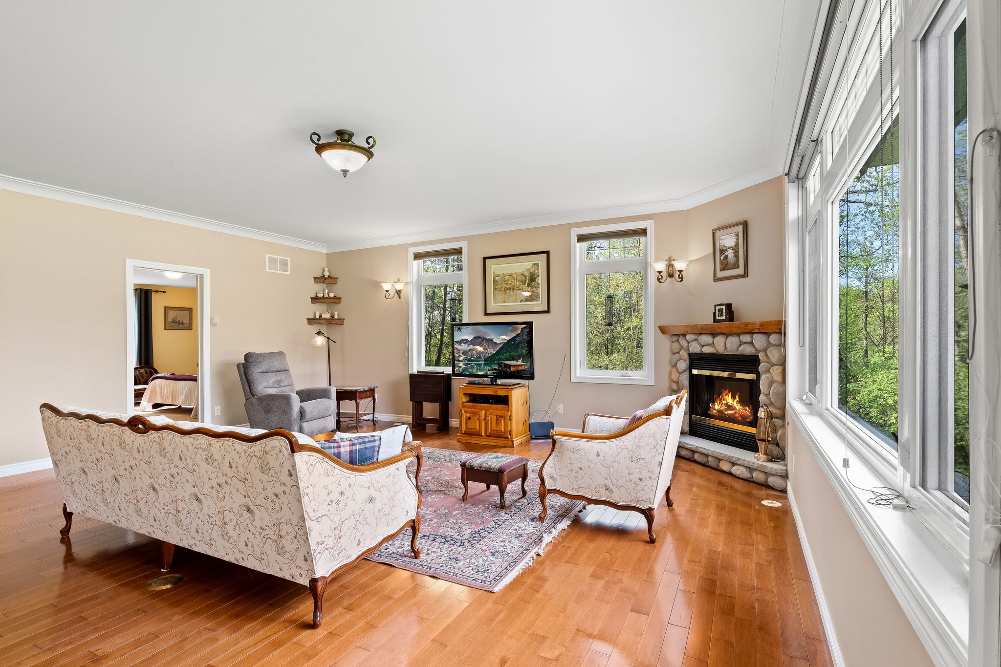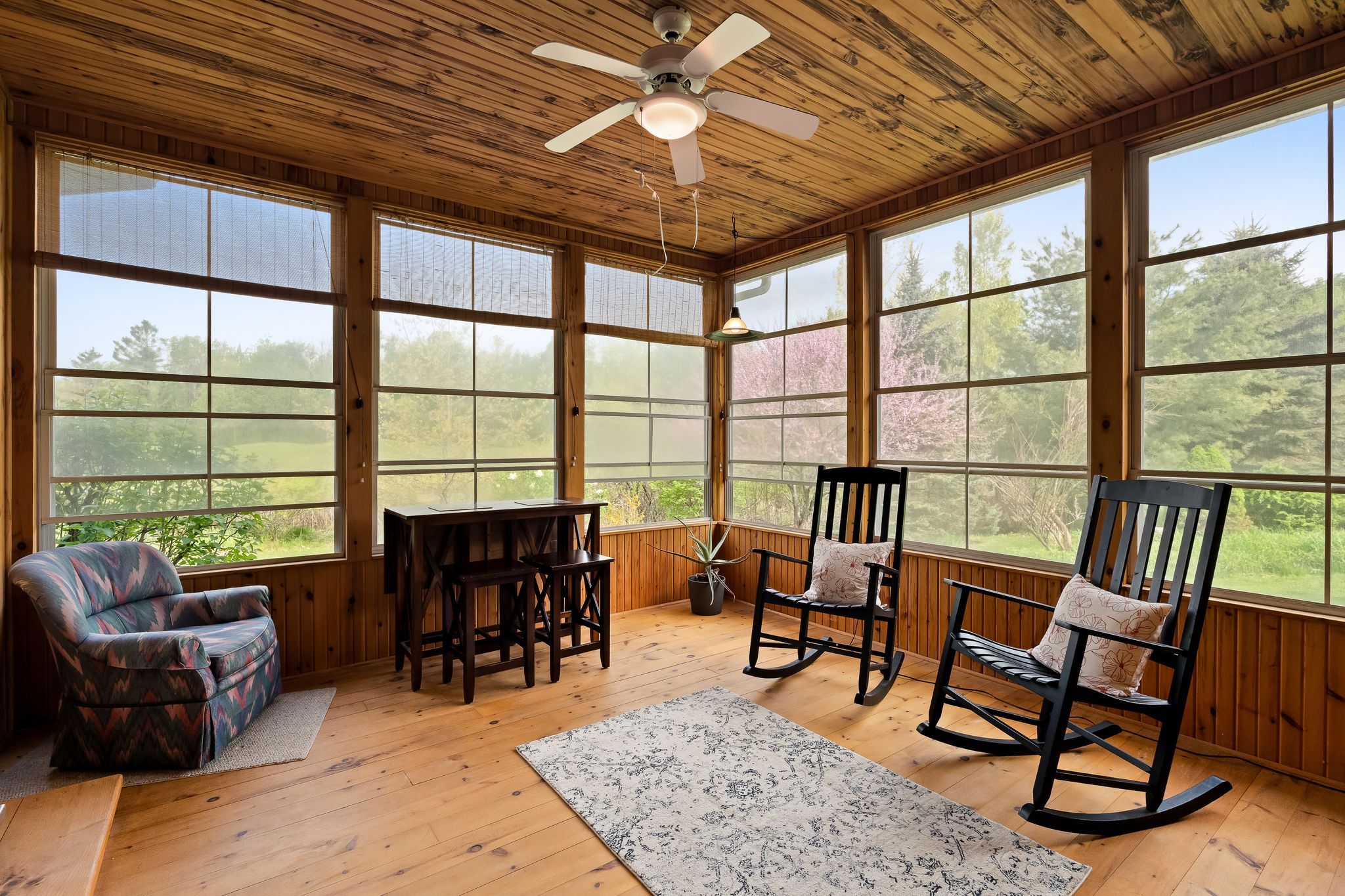 • Three-season sunroom perfect for relaxing and enjoying the serene landscape.