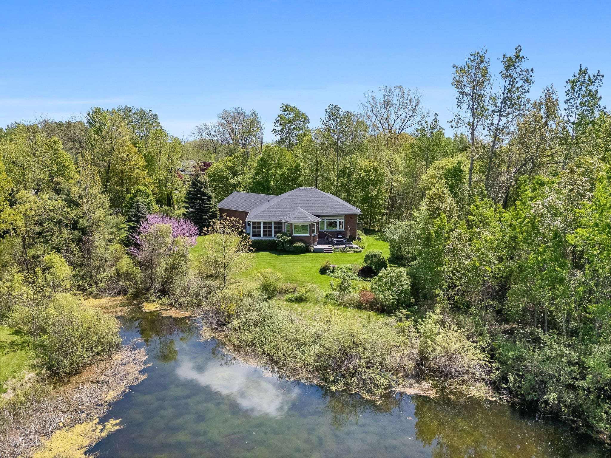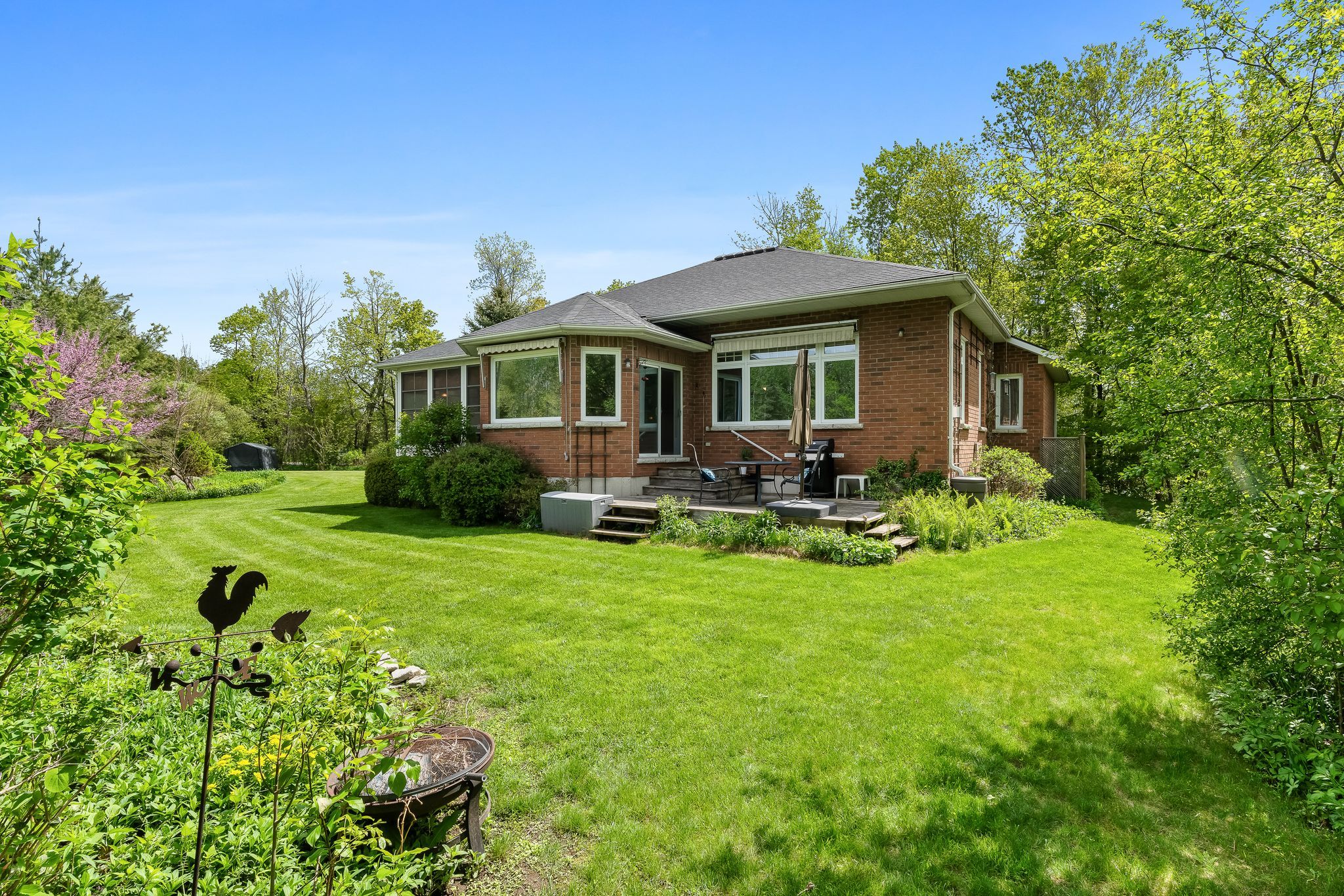 Set on a private one-acre lot in a sought-after location, 252 bullis rd offers a terrific combination of quality construction, natural surroundings, and long-term potential. This r-2000 certified home overlooks the third fairway of timber ridge golf course -an acclaimed 18-hole course ranked among canada's top 10 best value golf courses- providing open views, a peaceful pond, and a serene landscape. Thoughtfully designed with everyday comfort in mind, the main level is both practical and adaptable, featuring a spacious primary bedroom with walk-in closet and private ensuite, along with a second bedroom that can be used as a home office or den. The convenience of main floor laundry complements the layout. Generous room sizes and large windows throughout create a bright, inviting atmosphere filled with natural light, and frame the surrounding greenery. Birdwatchers will enjoy the variety of feathered friends that have grown accustomed to visiting the property. The principal living areas are positioned to take full advantage of the setting, with the living and dining rooms overlooking the golf course, pond, and woods. A 3-season sunroom provides a quiet extension of the home-an ideal space to relax and take in the surroundings during the warmer months. The lower level adds valuable versatility, with two additional bedrooms, a new 3-piece bathroom large enough to accommodate a free-standing tub or a sauna, a generous recreation room, and ample storage-ideal for guests, hobbies, or extended family living. Pride of ownership is evident throughout, with notable updates including furnace and central air (2018), roof (2019) and lower-level bathroom (2026). Surrounded by mature trees, landscaped gardens, and a natural pond that enhances both privacy and the setting, this property offers a quiet, established environment just minutes from brighton's amenities. A well-built home in a standout location-offering space, flexibility, and the chance to make it your own.