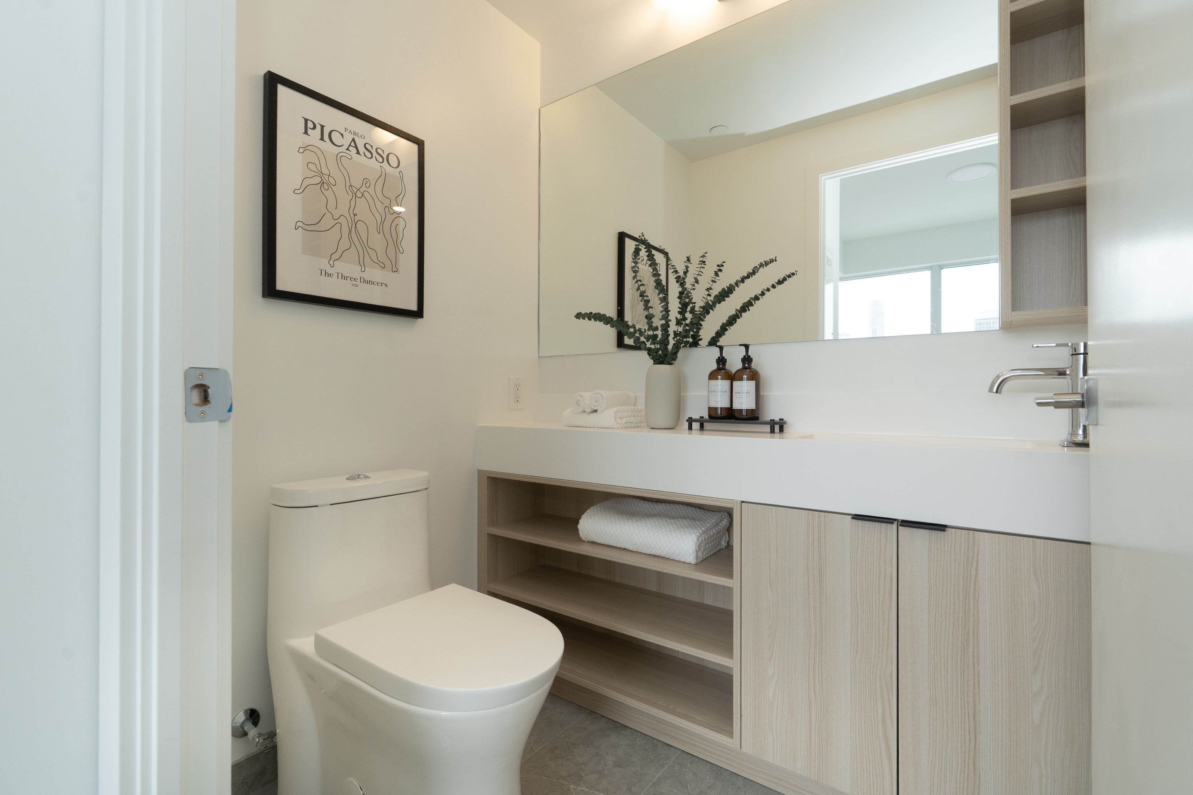 • New South-facing 1 Bed + Den with 2 full baths.