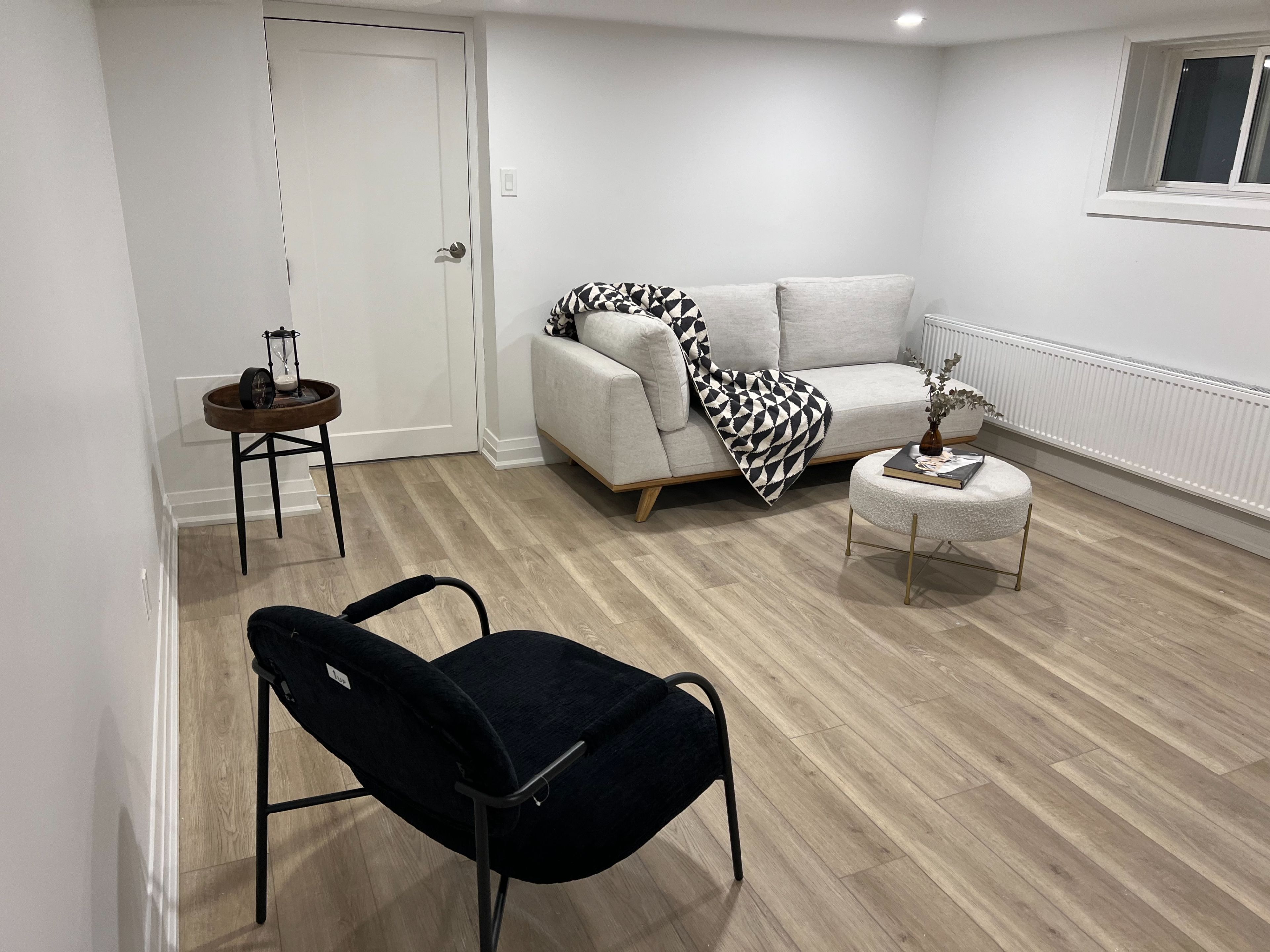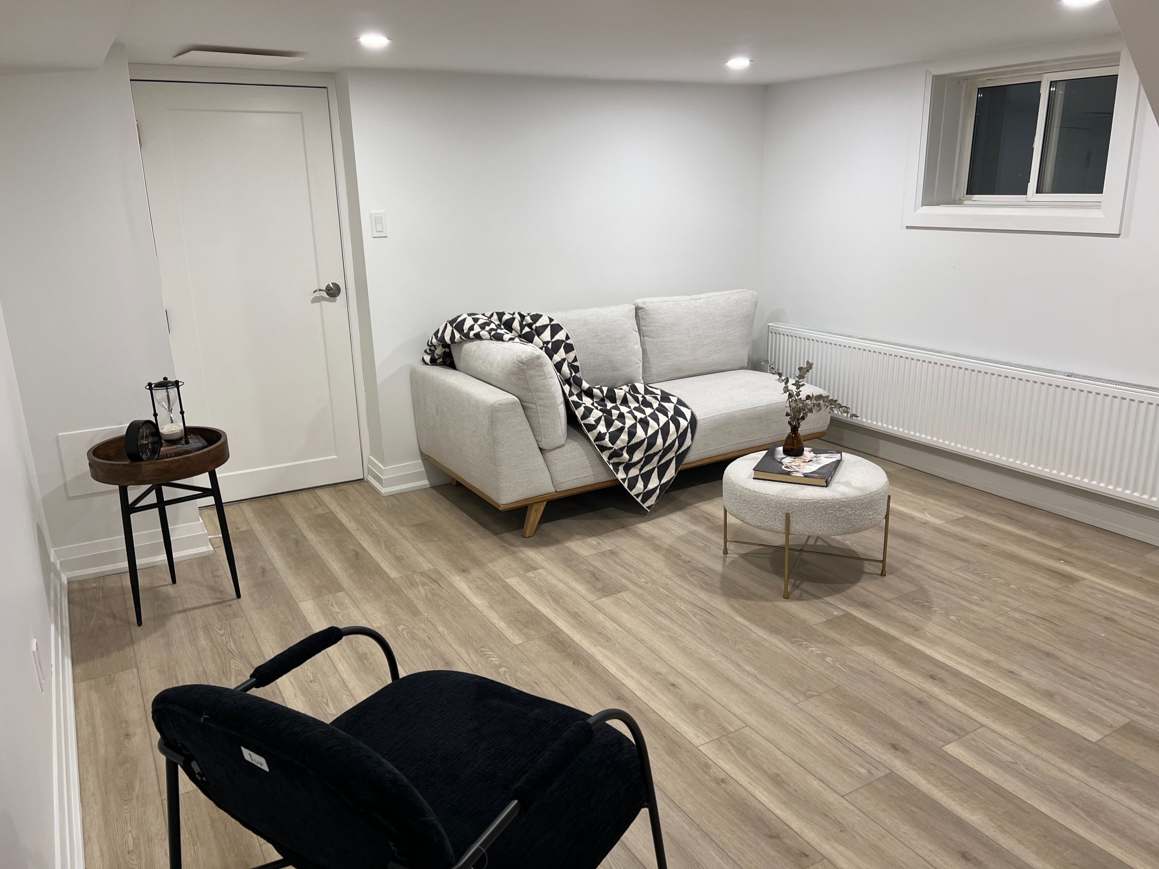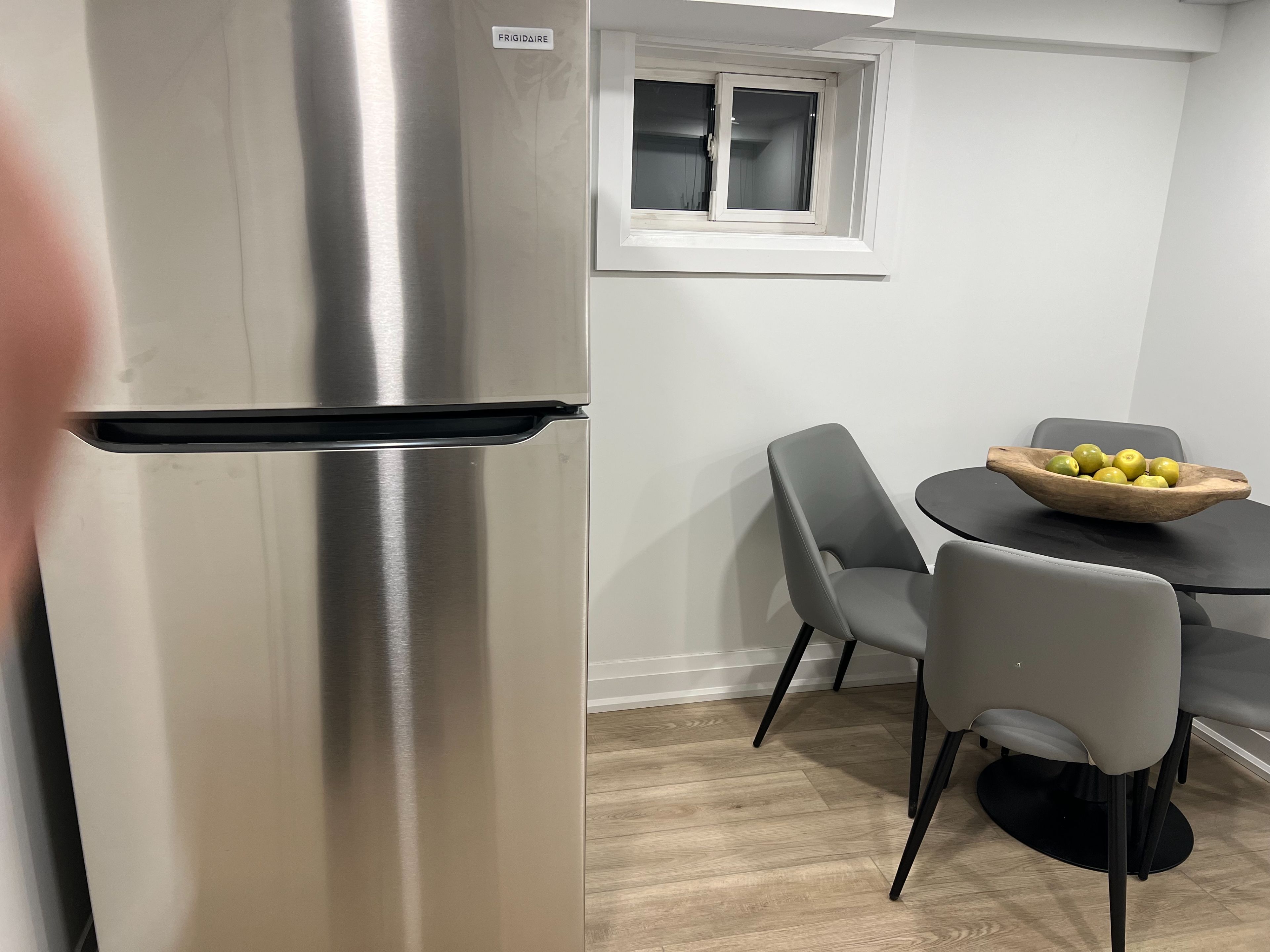 • Fully finished basement with separate entrance, kitchenette, and extra living space.