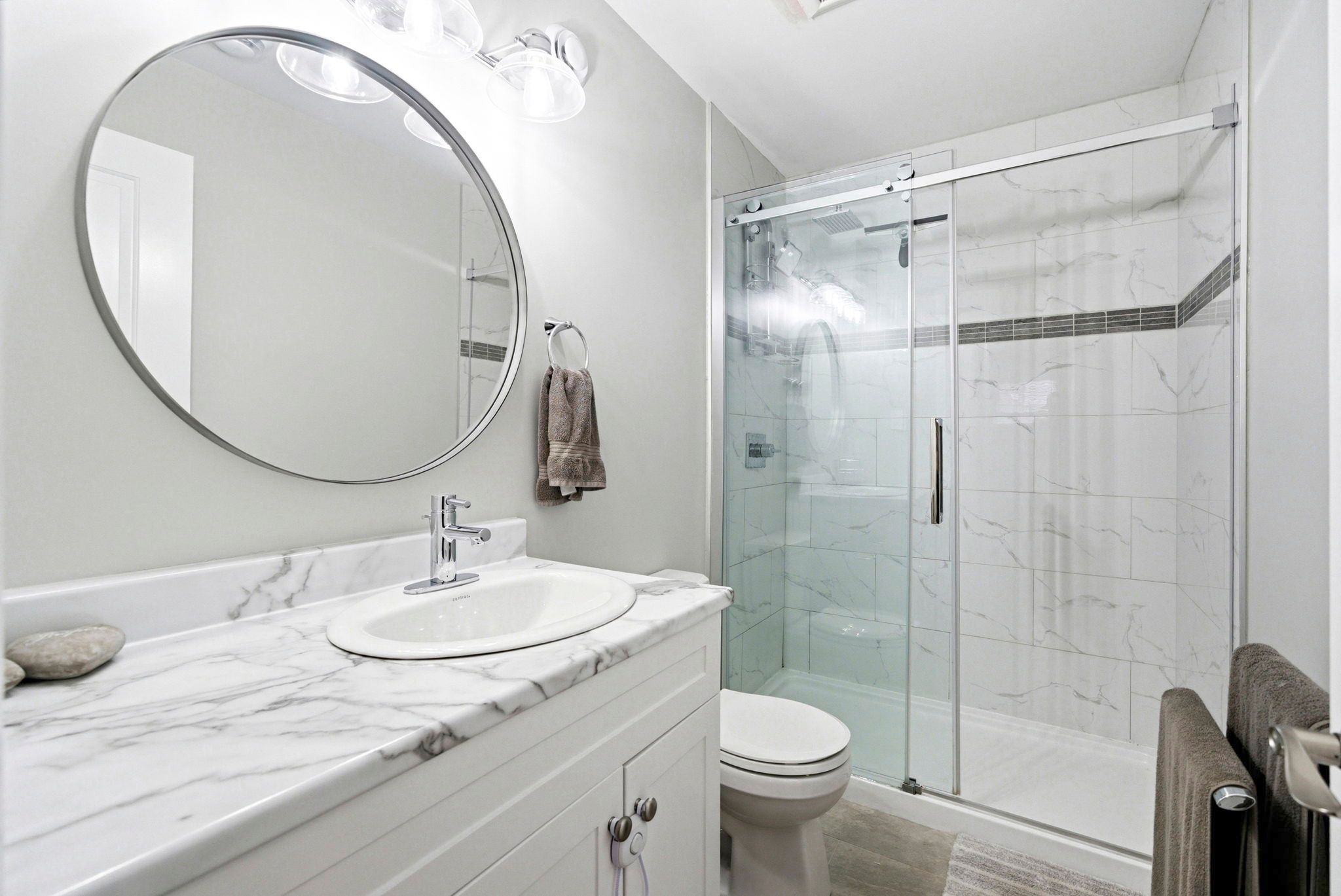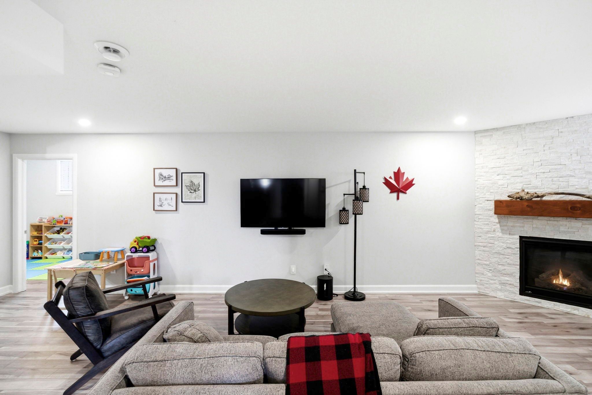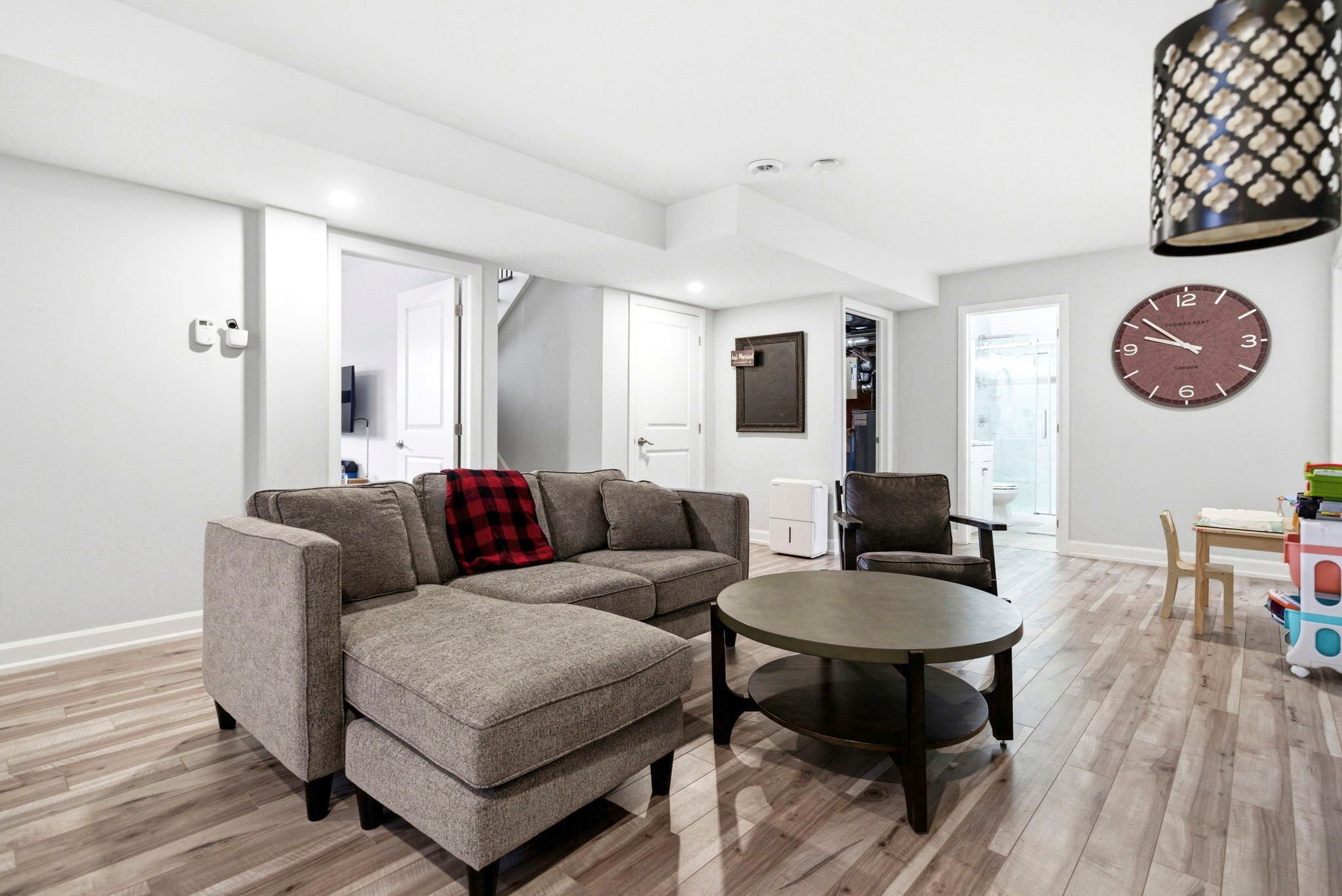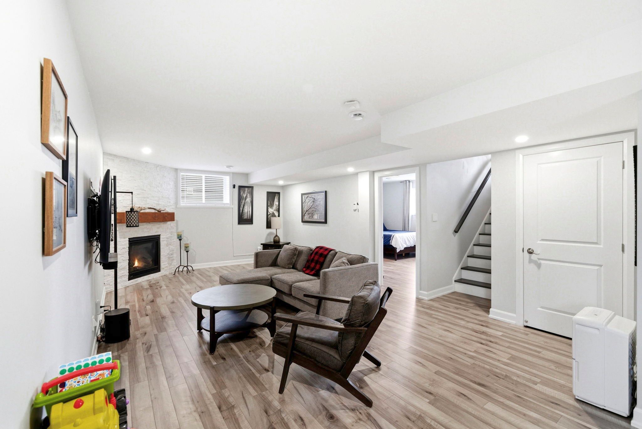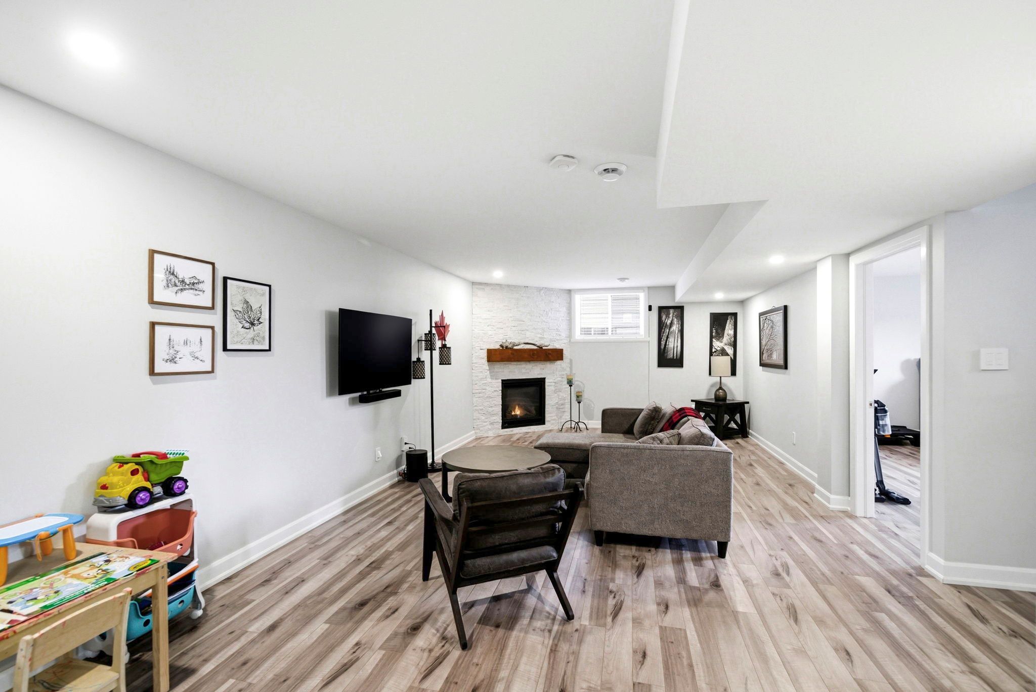 • Cozy lower level with gas fireplace and versatile spaces.