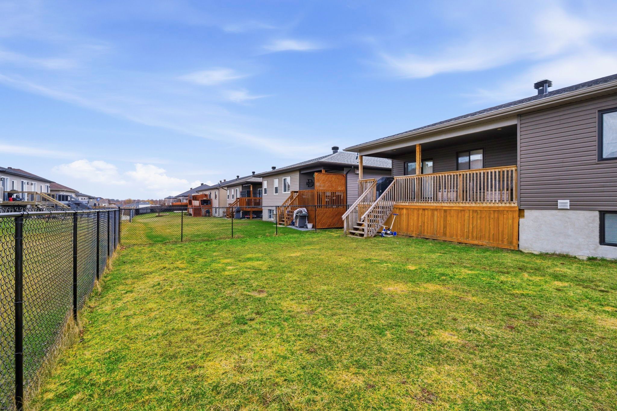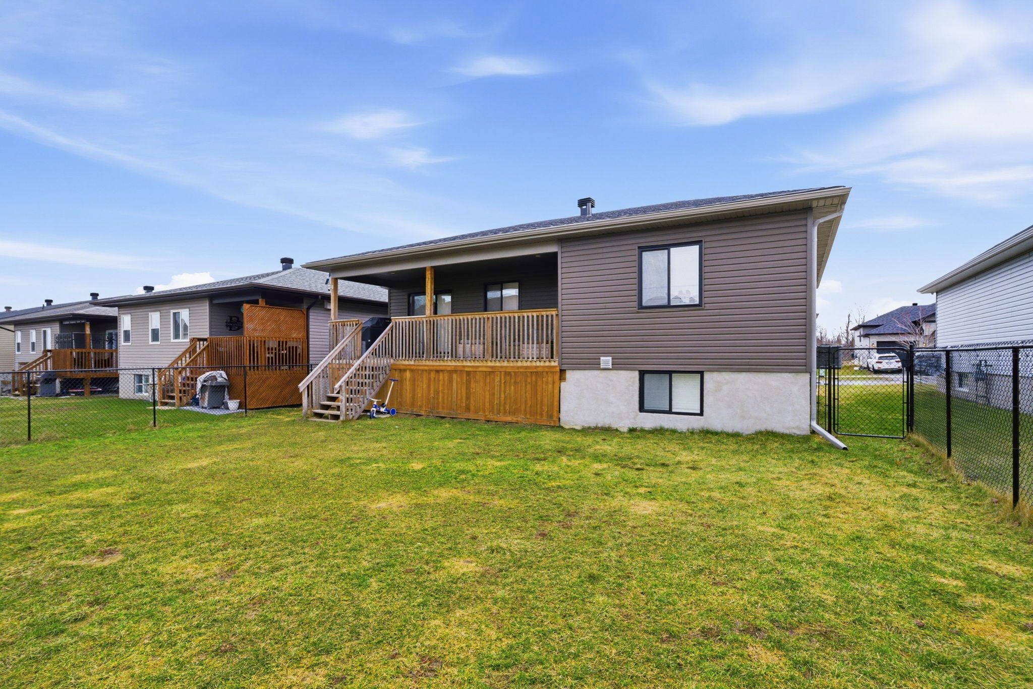 Welcome to 252 eastport drive. This beautifully maintained raised bungalow has been lovingly cared for by its original owners and offers the perfect blend of comfort, style, and functionality. The main floor is filled with natural light and features hardwood flooring throughout most of the level. Enjoy a modern kitchen complete with quartz countertops, seamlessly flowing into an open-concept living and dining area-ideal for both everyday living and entertaining. From the dining room, step directly onto the covered rear deck overlooking a fully fenced backyard, perfect for relaxing or hosting guests. This level also includes two spacious bedrooms and a well-appointed full bathroom. The lower level continues to impress with a cozy rec room featuring a gas fireplace, a third bedroom, a second full bathroom, and a large versatile space that can be customized to suit your needs-whether as a home office, gym, or playroom. Thanks to the raised bungalow design, the basement benefits from oversized windows that bring in an abundance of natural light. Additional highlights include smart home features, permanent exterior lighting, an ev charger, and a widened driveway for added convenience. Please note: all offers must include a 48-hour irrevocable.