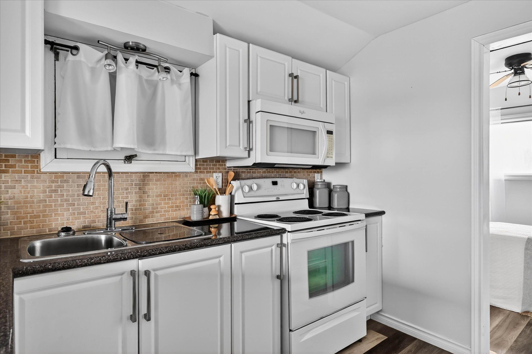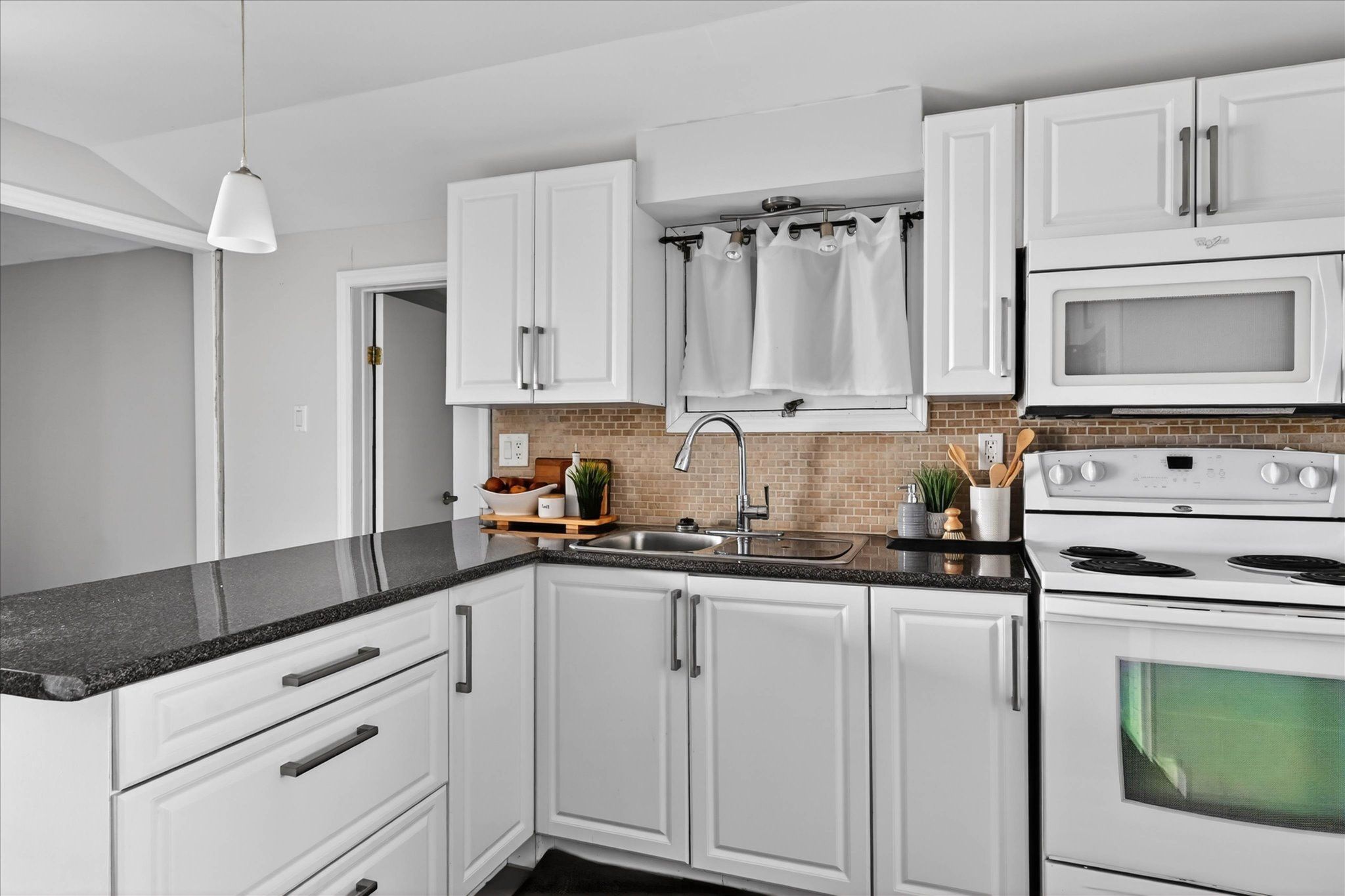 • Bright open-concept kitchen with granite countertops and modern finishes.