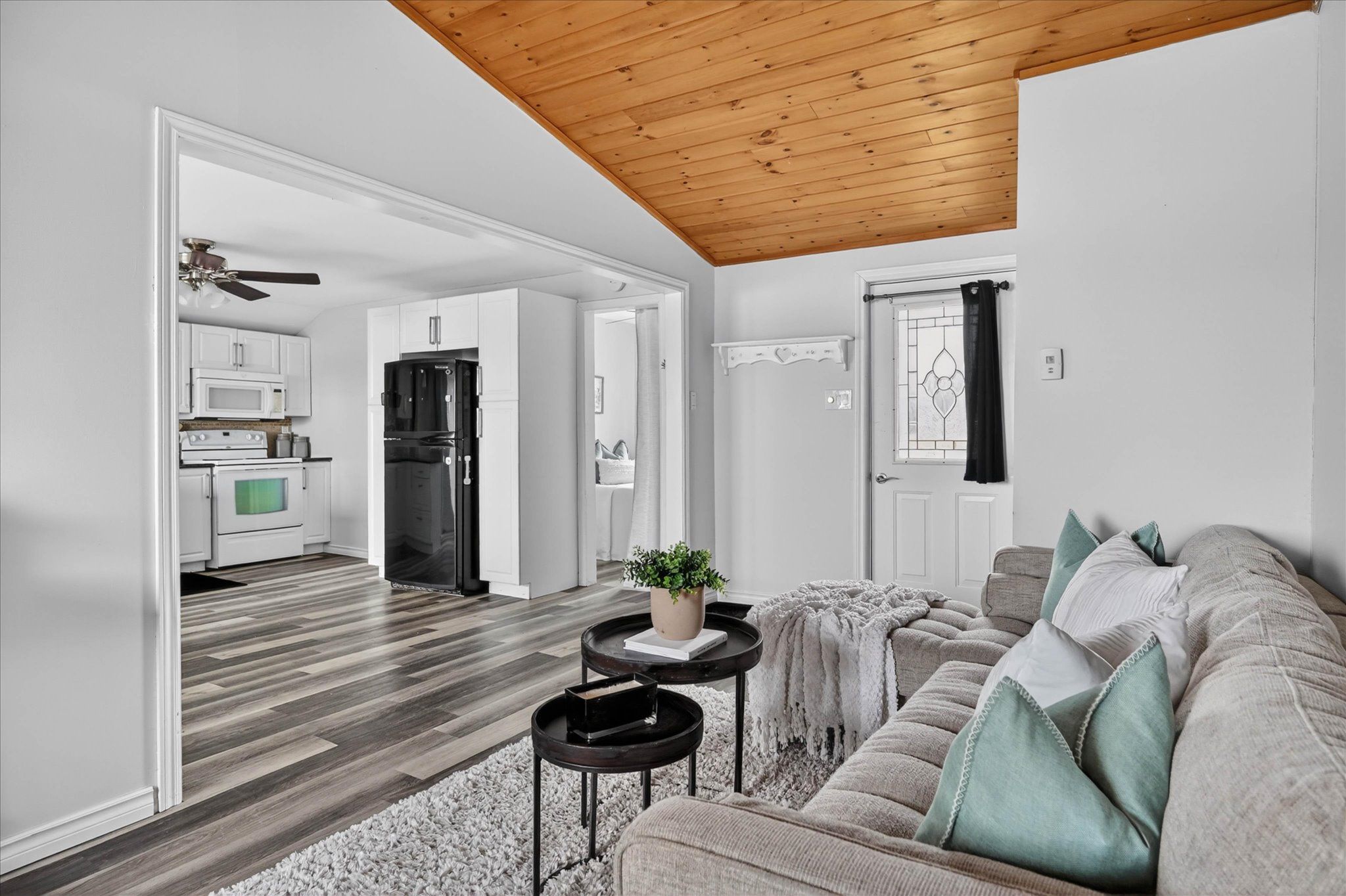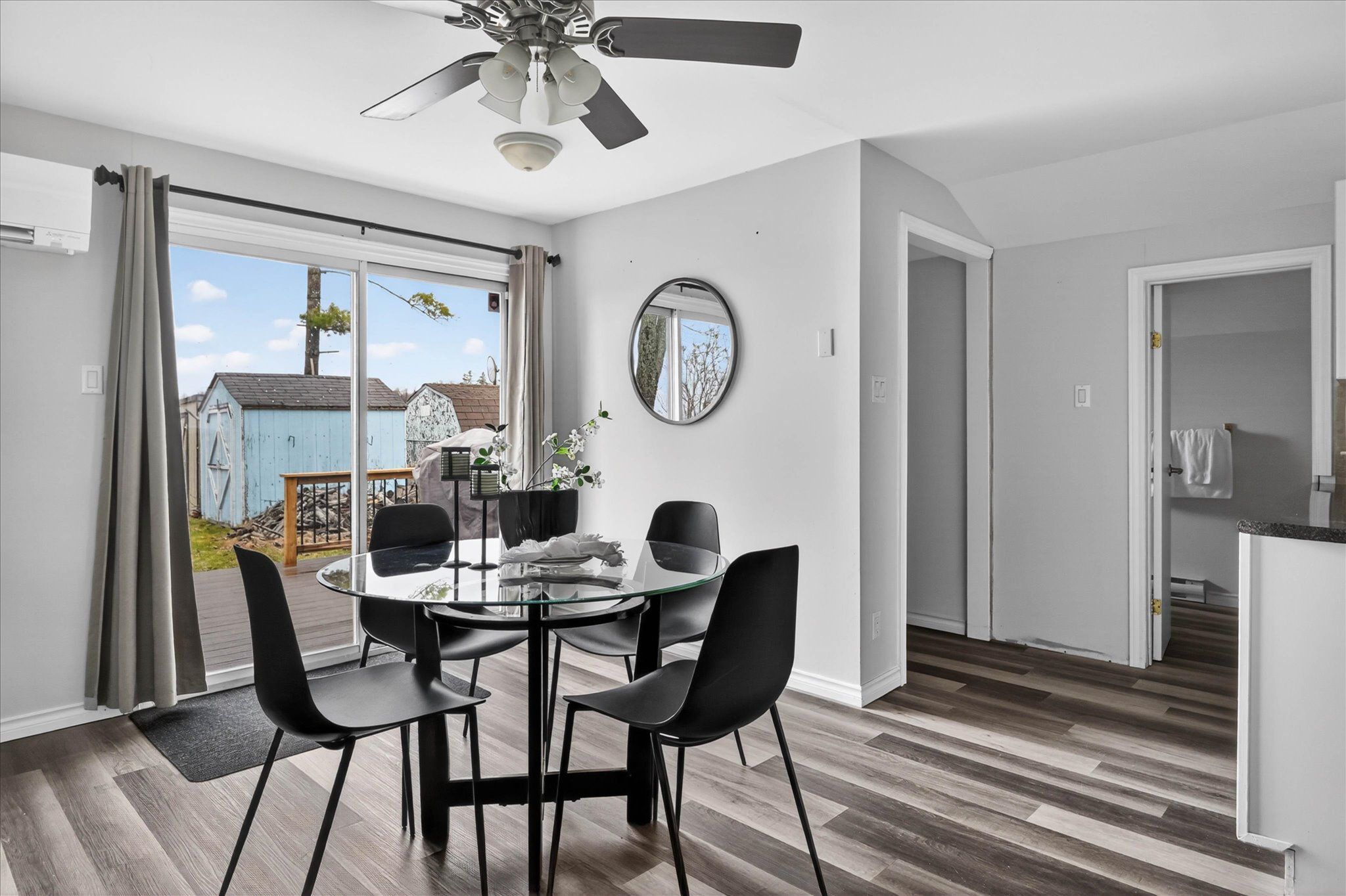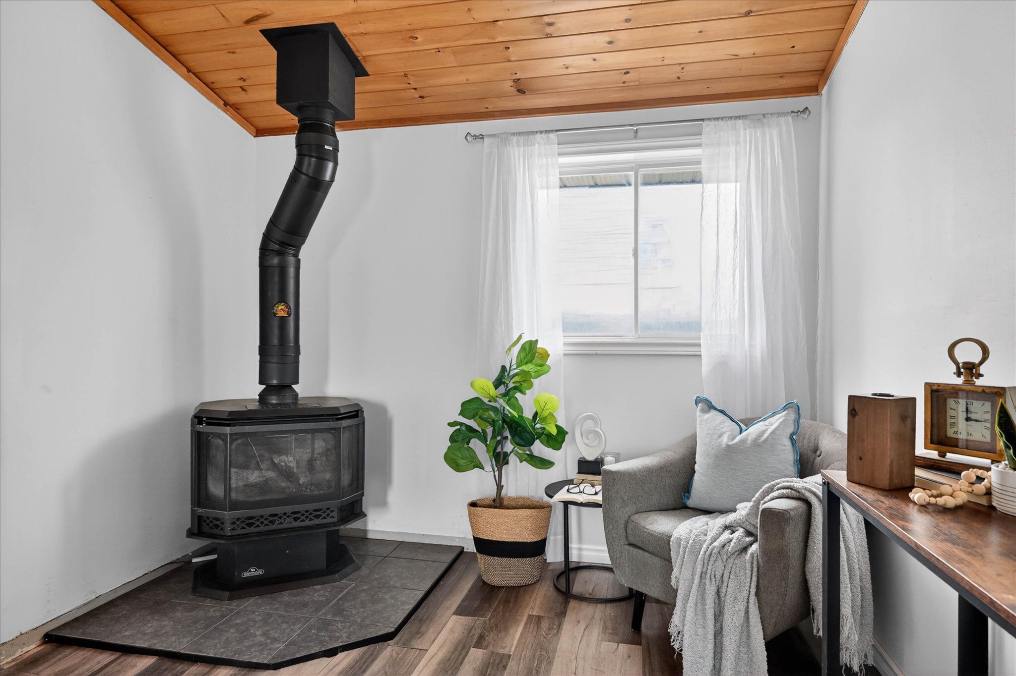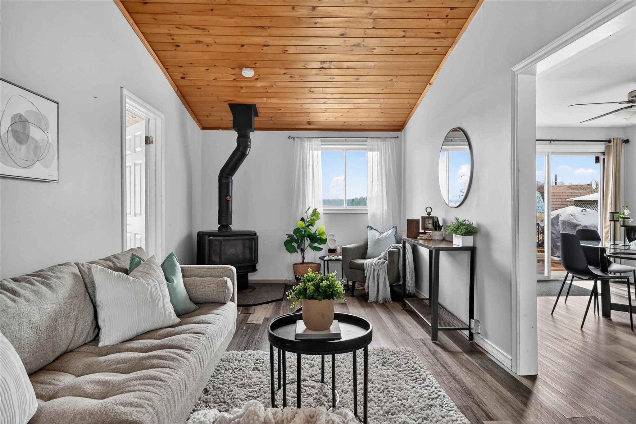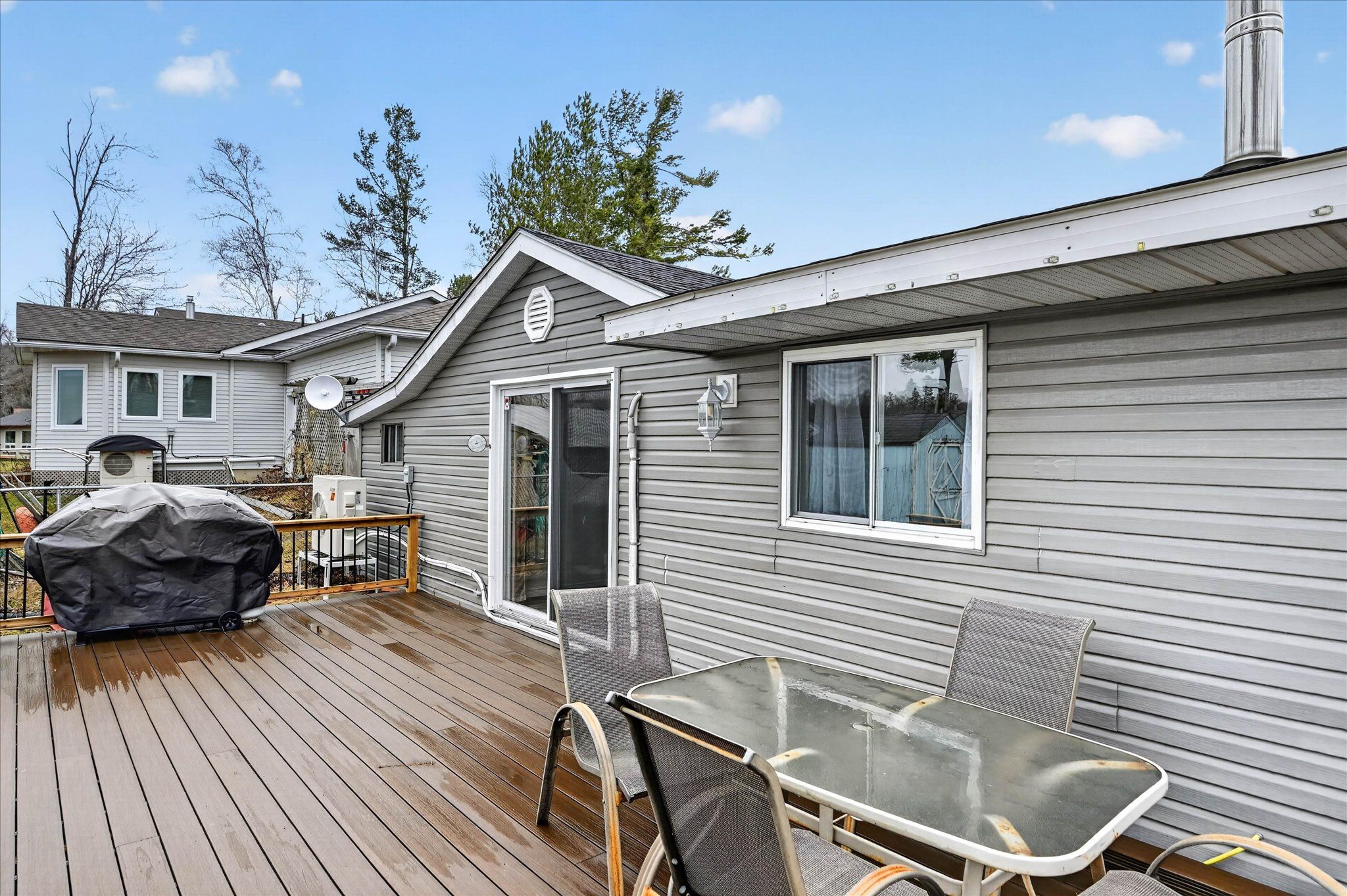 Welcome to your serene waterfront retreat on beautiful seymour lake, located on the trent severn, where west-facing views deliver breathtaking sunsets every evening. Nestled in a calm, sheltered bay, this property offers the perfect setting for canoeing, kayaking, and paddleboarding, all while being surrounded by nature-watch ducks, swans, and loons right from your own backyard. If you choose to take trips beyond the bay, you have 20kms of lock free boating! Inside, the home features a bright open-concept kitchen and dining area, complete with granite countertops and modern finishes. The living room impresses with vaulted ceilings and a warm pine tongue-and-groove finish, centered around a cozy propane fireplace-perfect for year-round comfort. Luxury vinyl plank flooring runs throughout, combining style and durability. The spacious primary bedroom is a standout feature, thoughtfully expanded to maximize comfort and views, with a large waterfront window and double-door closet. This enhancement was achieved by incorporating a portion of the former garage, creating a more luxurious and functional living space. The remaining garage area is still highly practical-perfectly sized for storing a quad, side-by-side, motorcycle, or all your seasonal toys. The 4-piece bathroom includes the potential for in-home laundry with an existing dryer hookup. A 4-year-old heat pump provides efficient year-round heating and cooling, complemented by a 200-amp electrical panel to support modern living and future upgrades. Step outside to a newer large composite deck with new railings, designed for entertaining or simply soaking in the tranquil lake views. The property also includes two garden sheds for added storage and ample parking for up to six vehicles. Whether you're looking for a year-round home or a relaxing getaway, this lakeside gem offers comfort, charm, and an unbeatable natural setting.