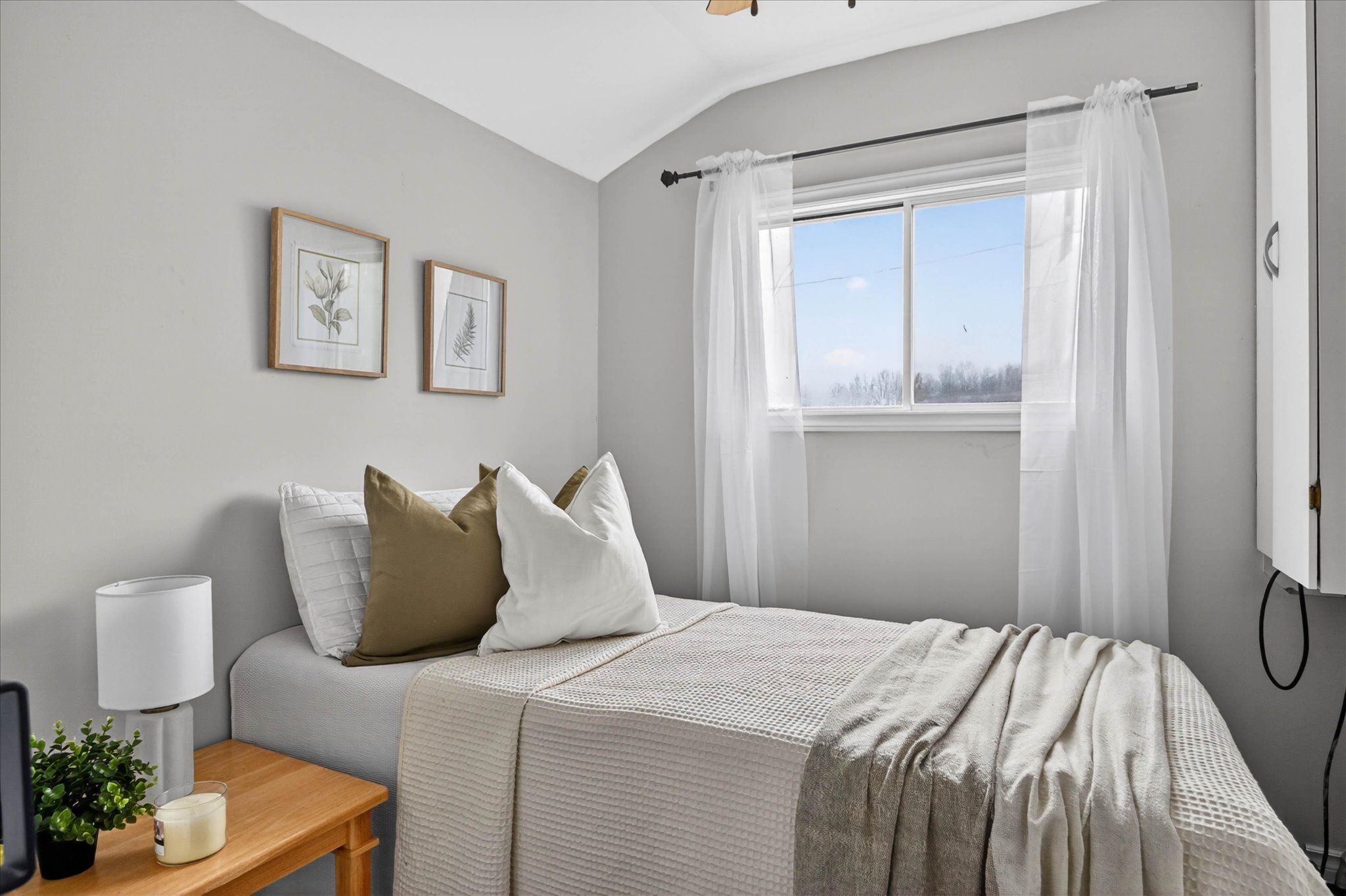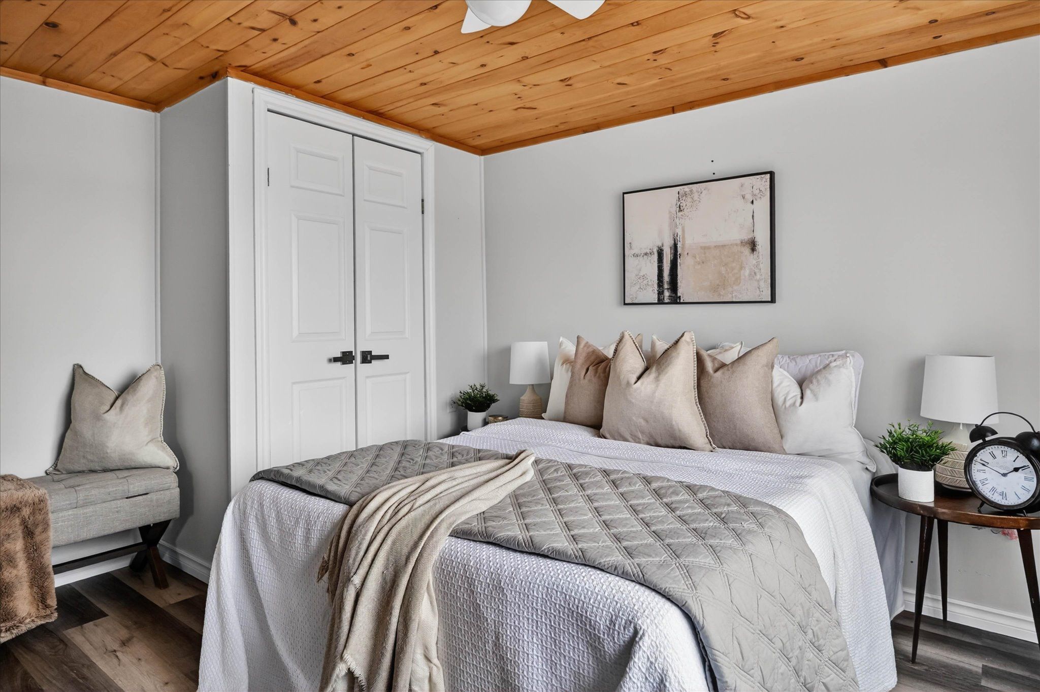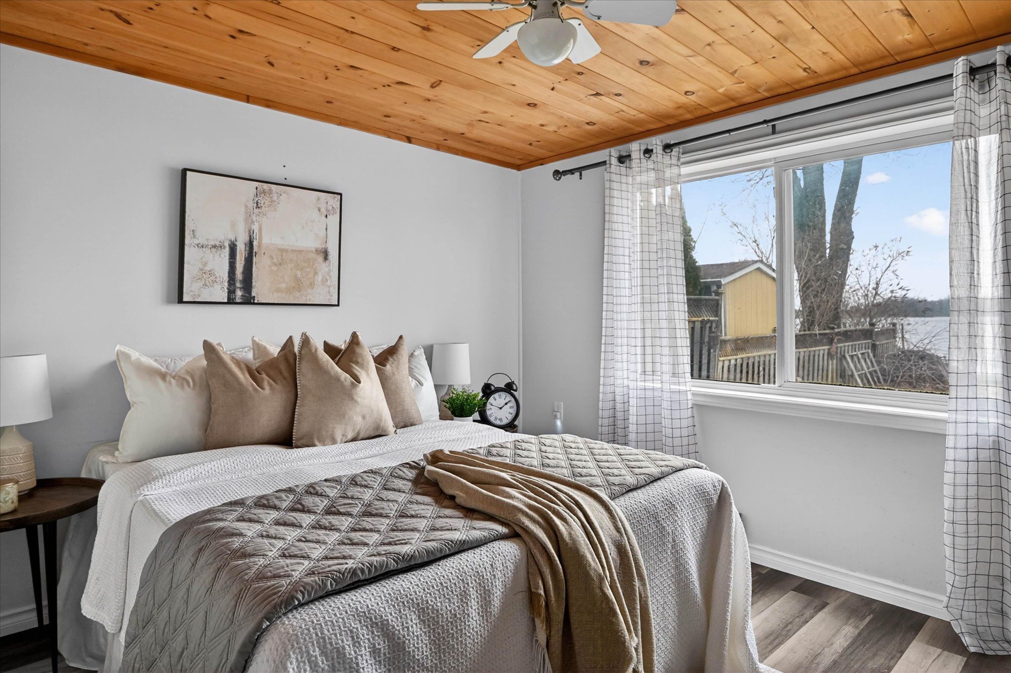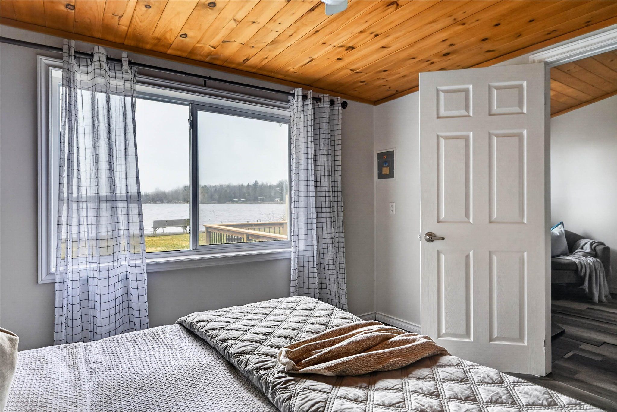 • Spacious primary bedroom featuring large waterfront window and double-door closet.