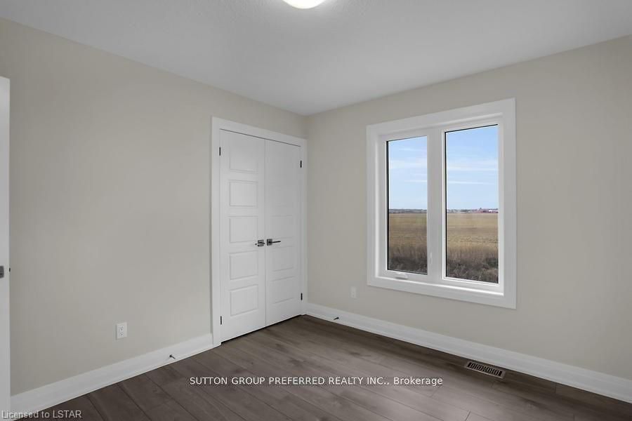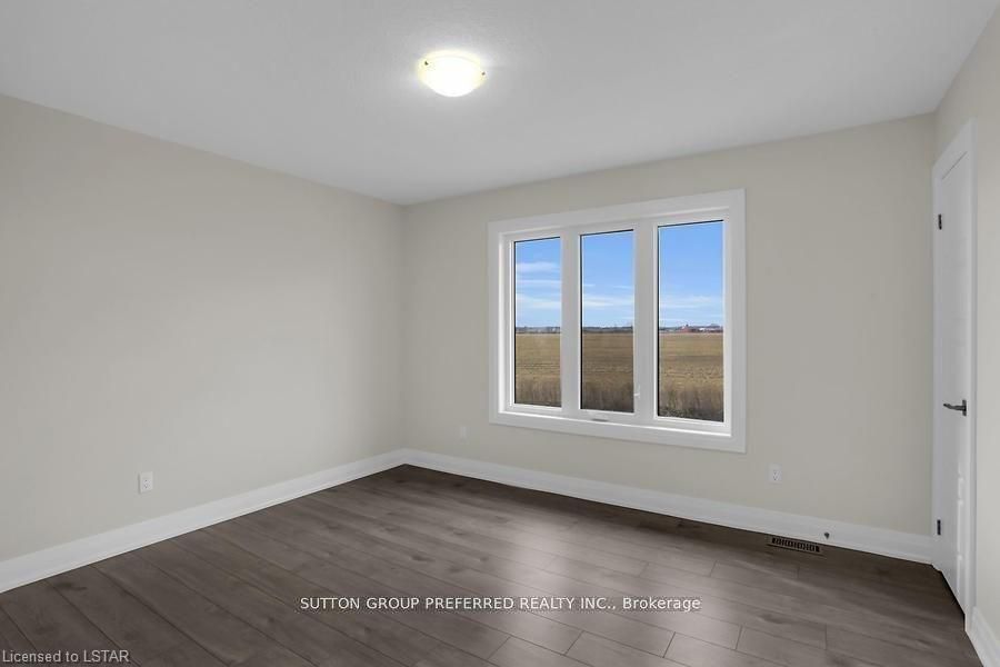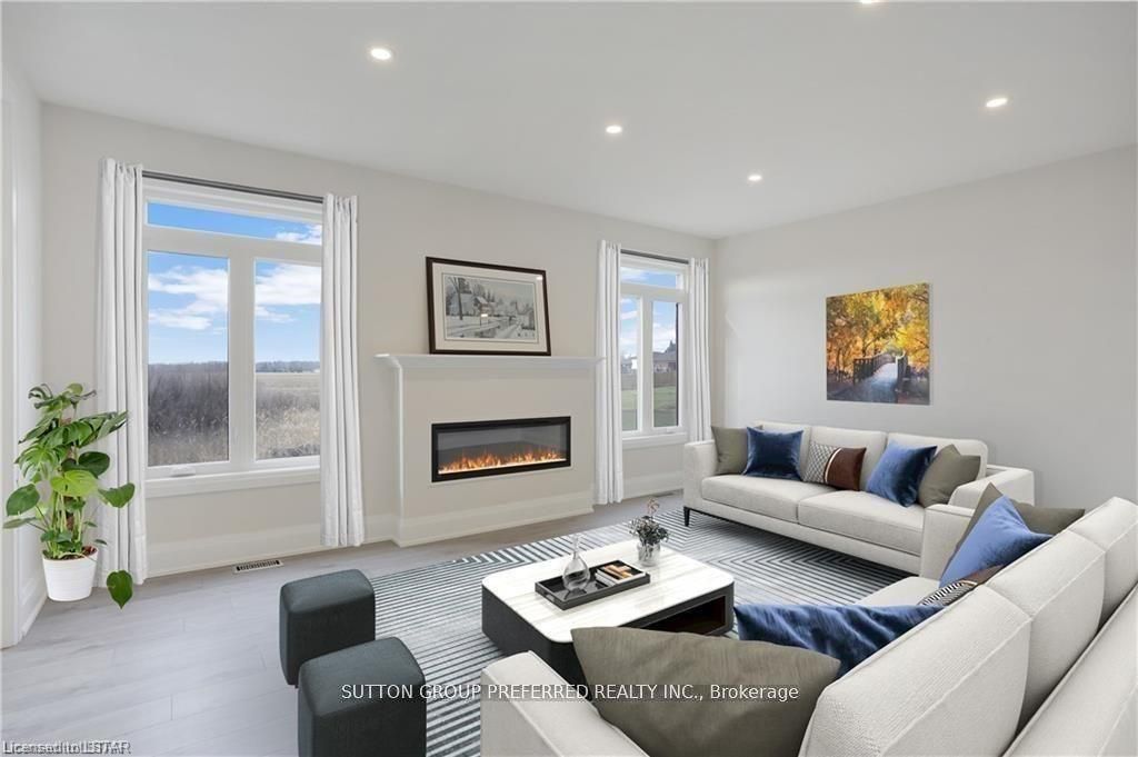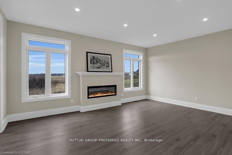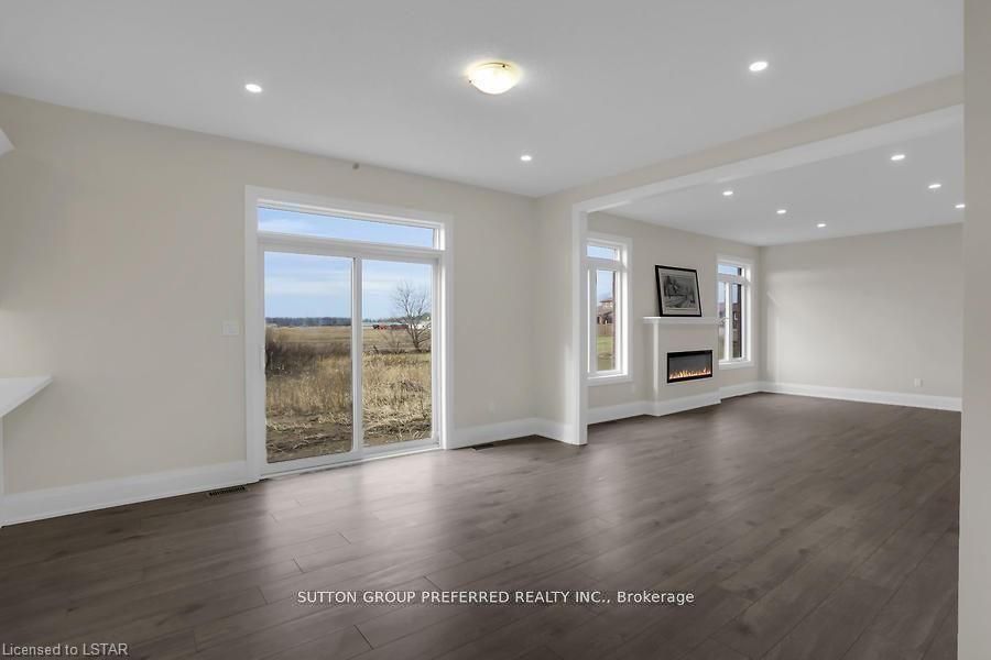 Stunning executive 2-storey with 5 bedrooms& 4 bathrooms is on a premium pie shaped lot backing onto farmland! This brick & stone 2851 sqft family home with 3 car attached garage is ready to move in! Tastefully designed with high quality finishing, this home features an open concept floor plan. Great room showcases the electric fireplace. Quartz countertops in bright kitchen and bathrooms. 4-pc ensuite with large glass corner shower & 2 sinks and walk-in closet off main bedroom. Convenient second floor laundry with cupboards. Impressive 9ft ceilings, 8ft doors, beautiful luxury plank vinyl & gleaming tile floors. Desirable location in highland estate subdivision close to park, walking path, rec centre, shopping, library, splash pad, pickle ball court, & public school with quick access to the 401. Move in and enjoy this family home. Other new homes for sale - contact listing agent.