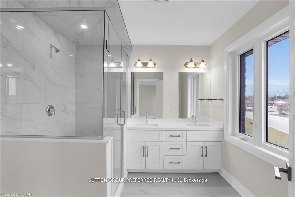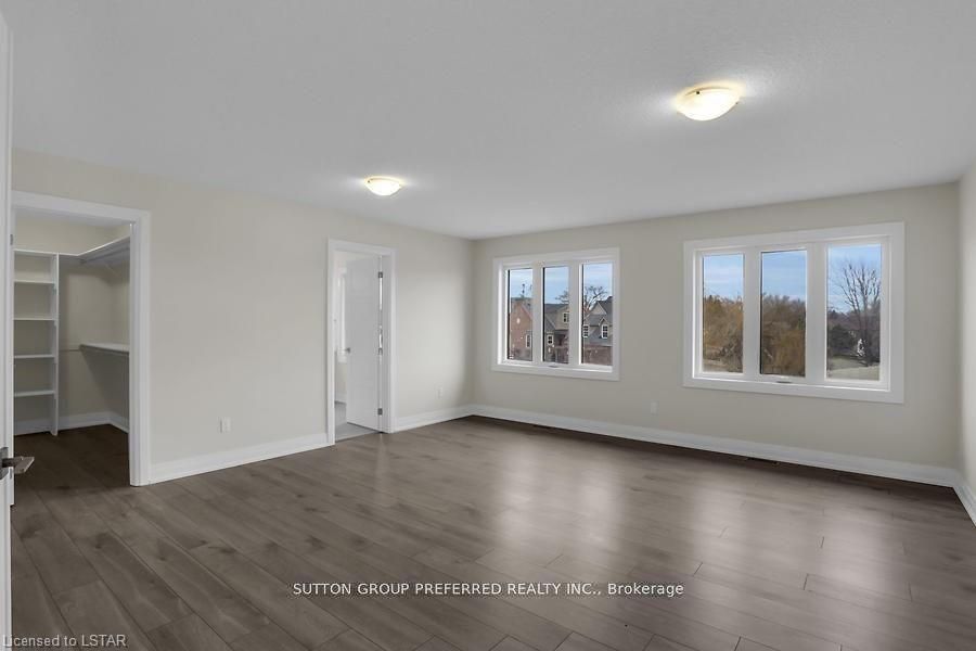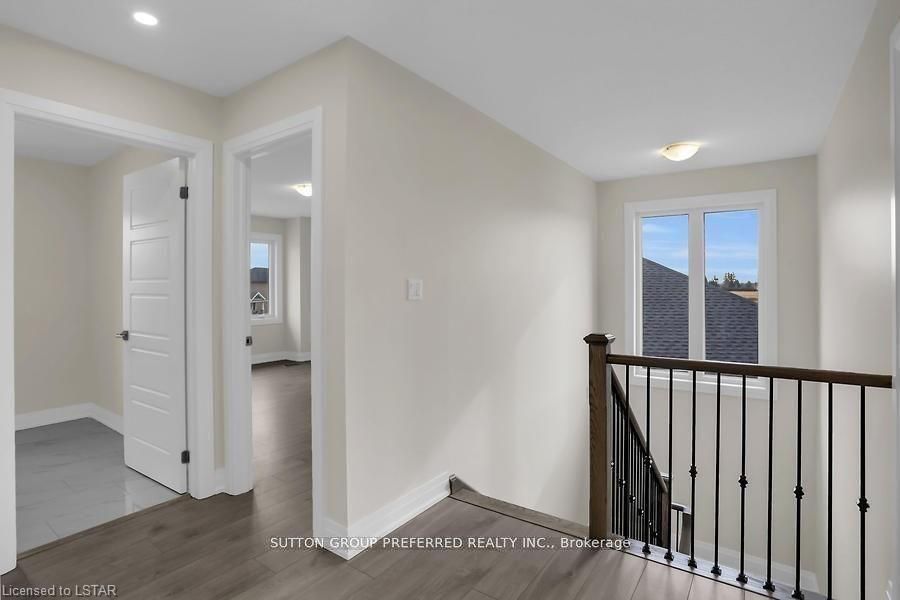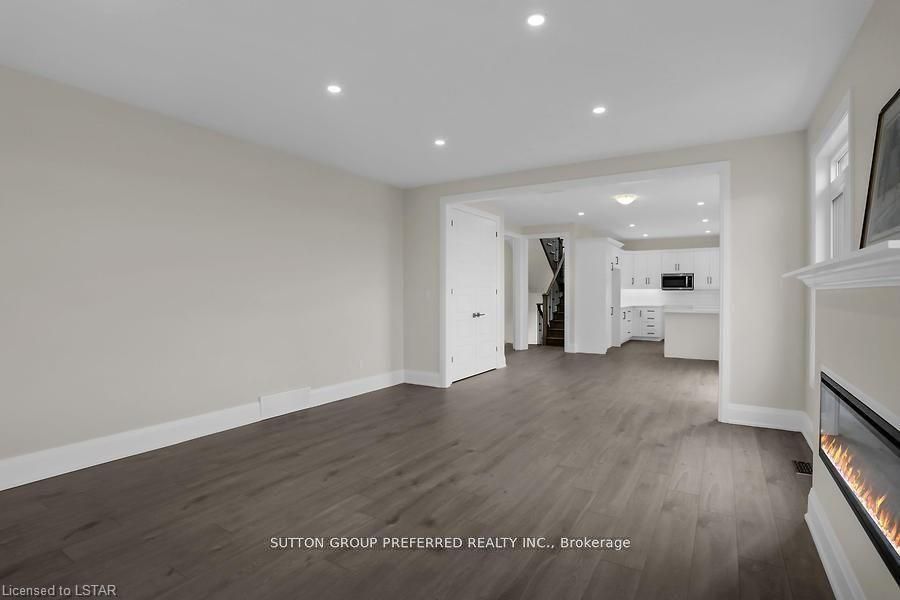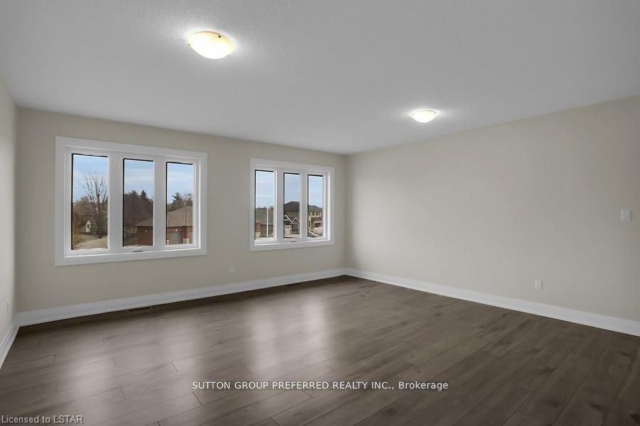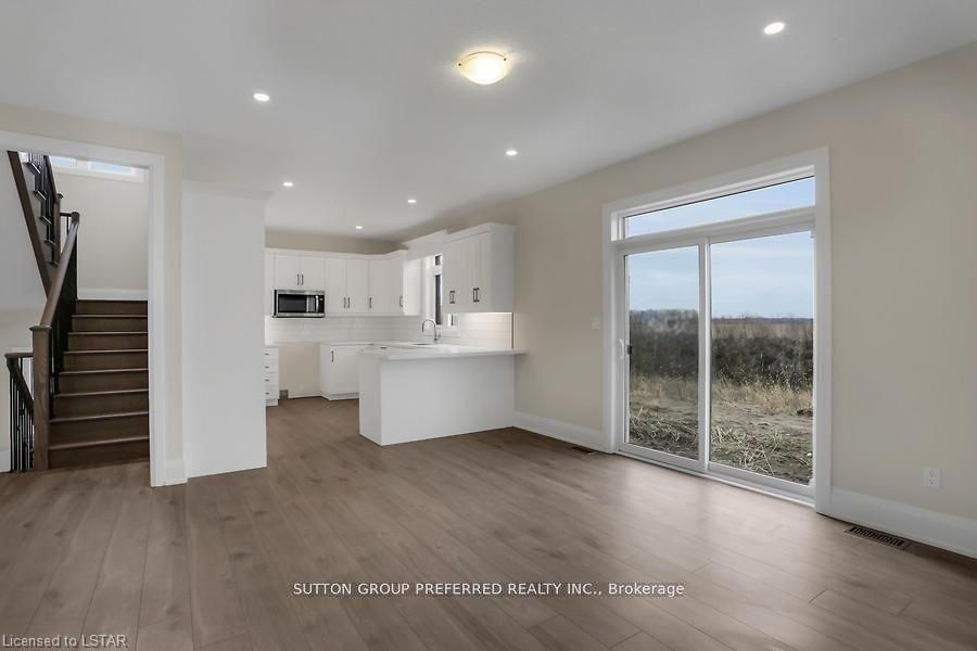 Stunning executive 2-storey with 5 bedrooms& 4 bathrooms is on a premium pie shaped lot backing onto farmland! This brick & stone 2851 sqft family home with 3 car attached garage is ready to move in! Tastefully designed with high quality finishing, this home features an open concept floor plan. Great room showcases the electric fireplace. Quartz countertops in bright kitchen and bathrooms. 4-pc ensuite with large glass corner shower & 2 sinks and walk-in closet off main bedroom. Convenient second floor laundry with cupboards. Impressive 9ft ceilings, 8ft doors, beautiful luxury plank vinyl & gleaming tile floors. Desirable location in highland estate subdivision close to park, walking path, rec centre, shopping, library, splash pad, pickle ball court, & public school with quick access to the 401. Move in and enjoy this family home. Other new homes for sale - contact listing agent.