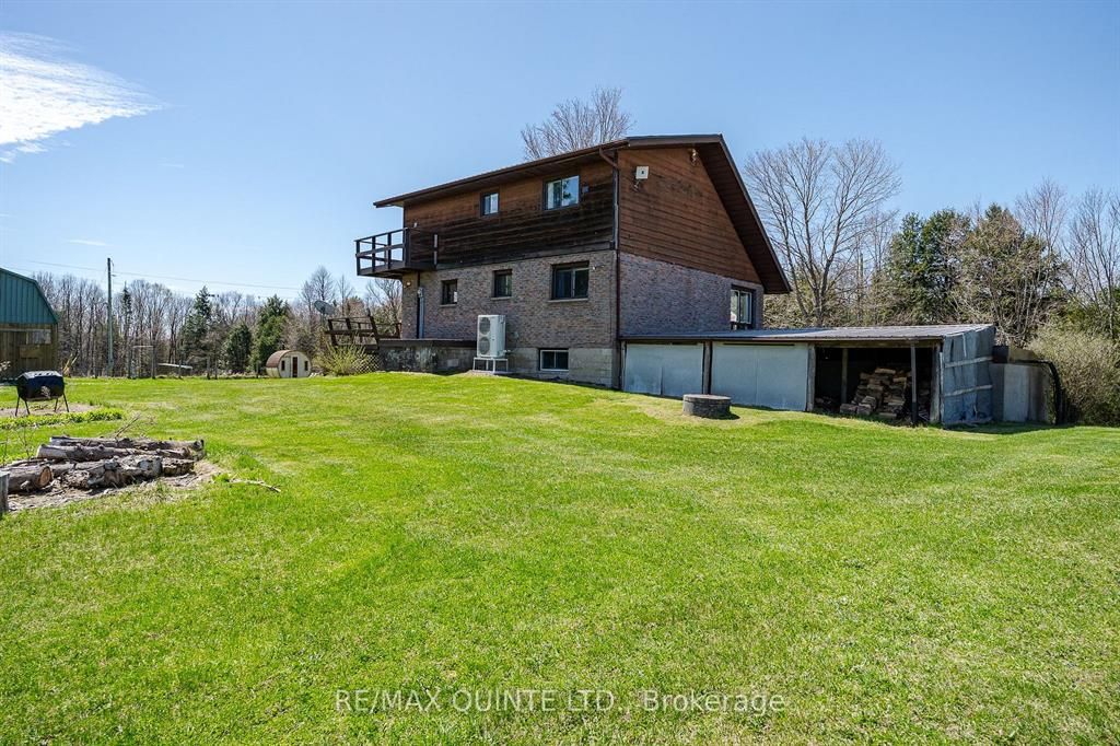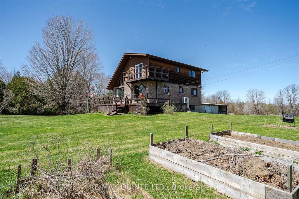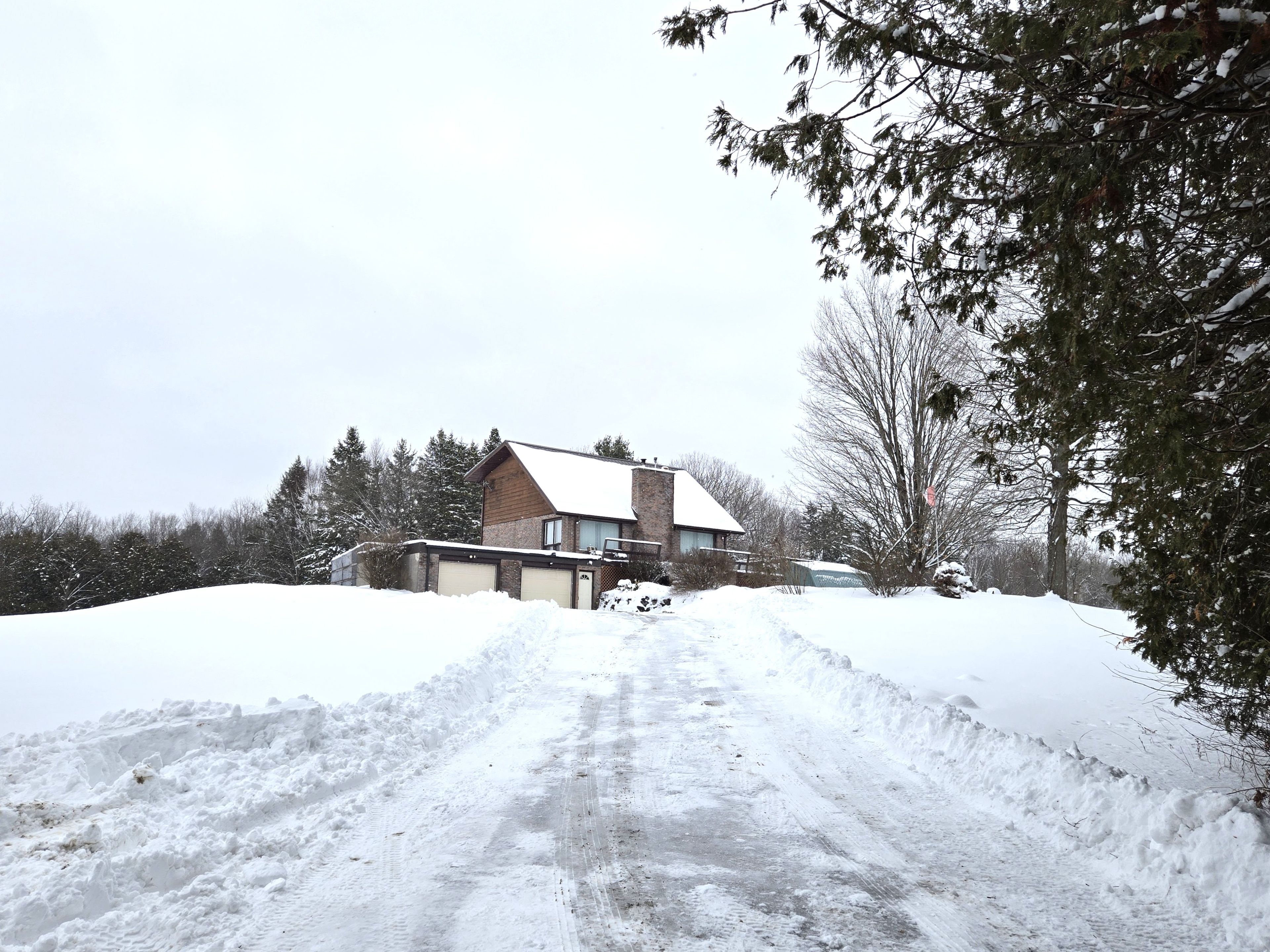If you're looking for a privacy with lot's of room to roam, or a hobby farm for your animals, this unique custom built 3 bedroom home with 2240sq ft of living space, a large barn and 20 acres could be the one! The homes main level boasts a living/dining room with vaulted ceiling for lots of natural light, gorgeous hardwood floors, and a cozy pellet stove. Kitchen with plenty of cabinetry, appliances, center island, and walkout to wrap around deck for entertaining. Spacious main floor bedroom and a 2-pc bathroom. Second floor features a primary bedroom with walkout to deck overlooking the acreage, a nice size guest bedroom, and an updated 4-pc bathroom. The lower level has its own entrance from the garage with a lovely rec room with stone fireplace with insert, an extra space for a 4th bedroom, home office or a workshop, utility/laundry room and a cold room. Some updates include high-efficiency heat pump, sauna, some new flooring, range hood etc. Outside you'll find a large barn with hydro, water by barn, a riding ring, 3 workable or pasture fields that are fenced for your animals, a creek and mixed bush with trails throughout the property. Whether relaxing on your deck or enjoying a sauna or riding the trails, this private and peaceful property has endless possibilities! Quick possession available.