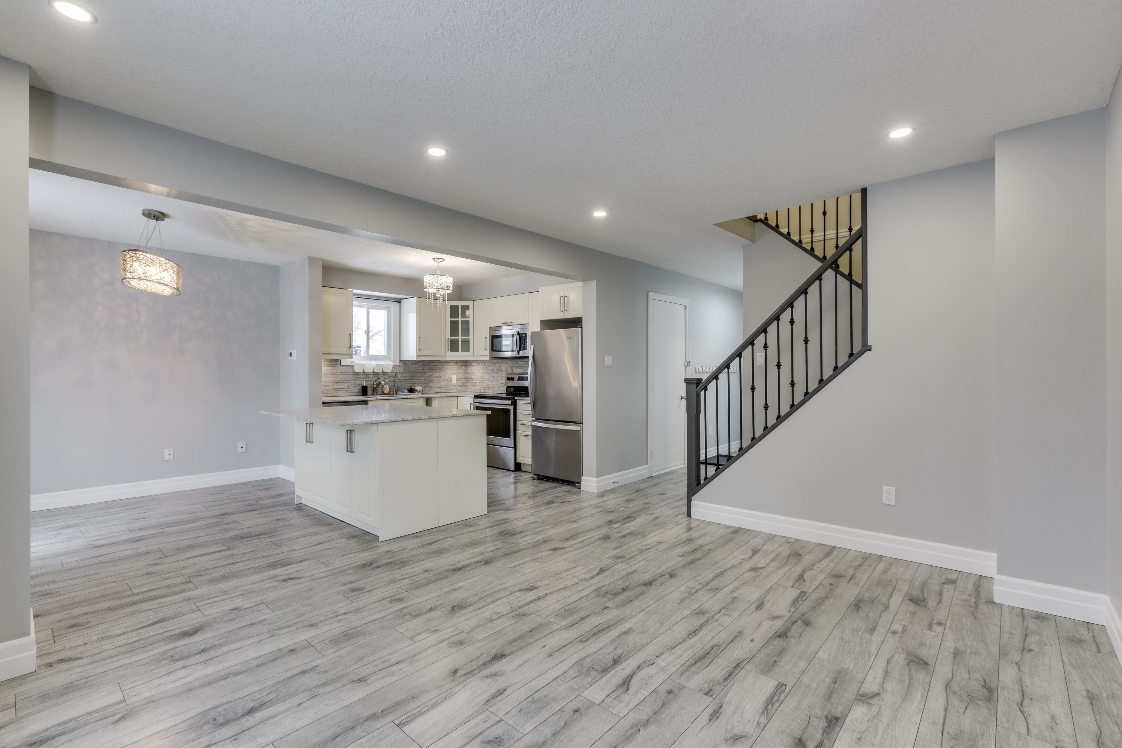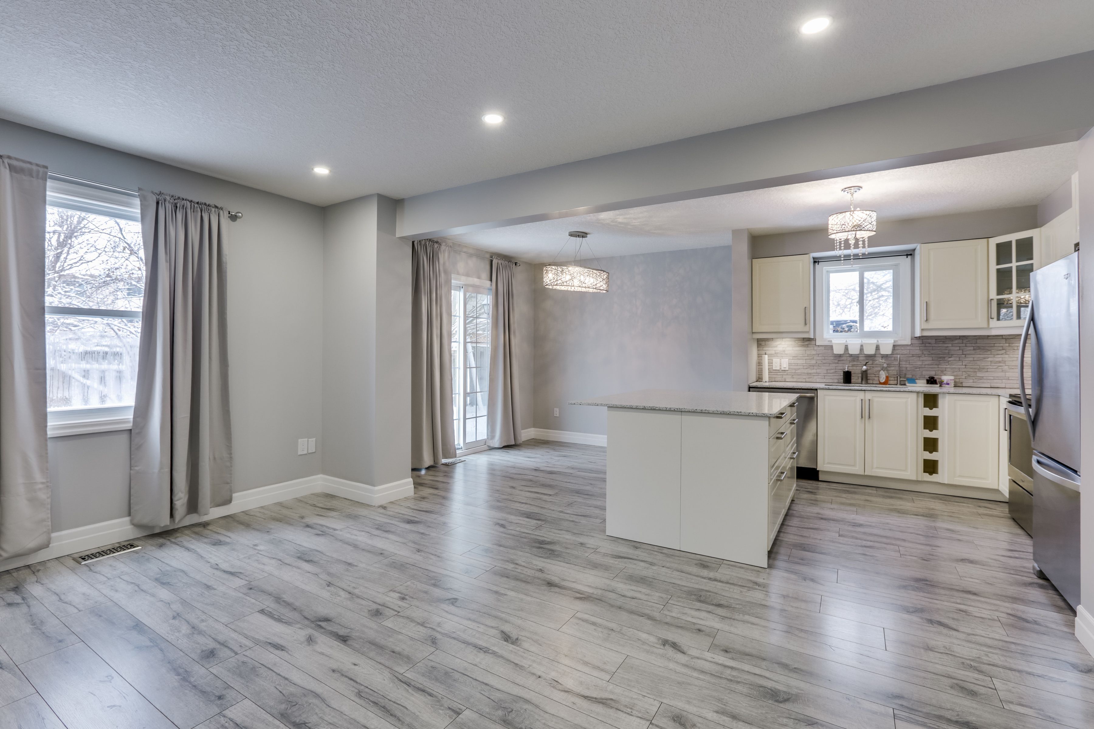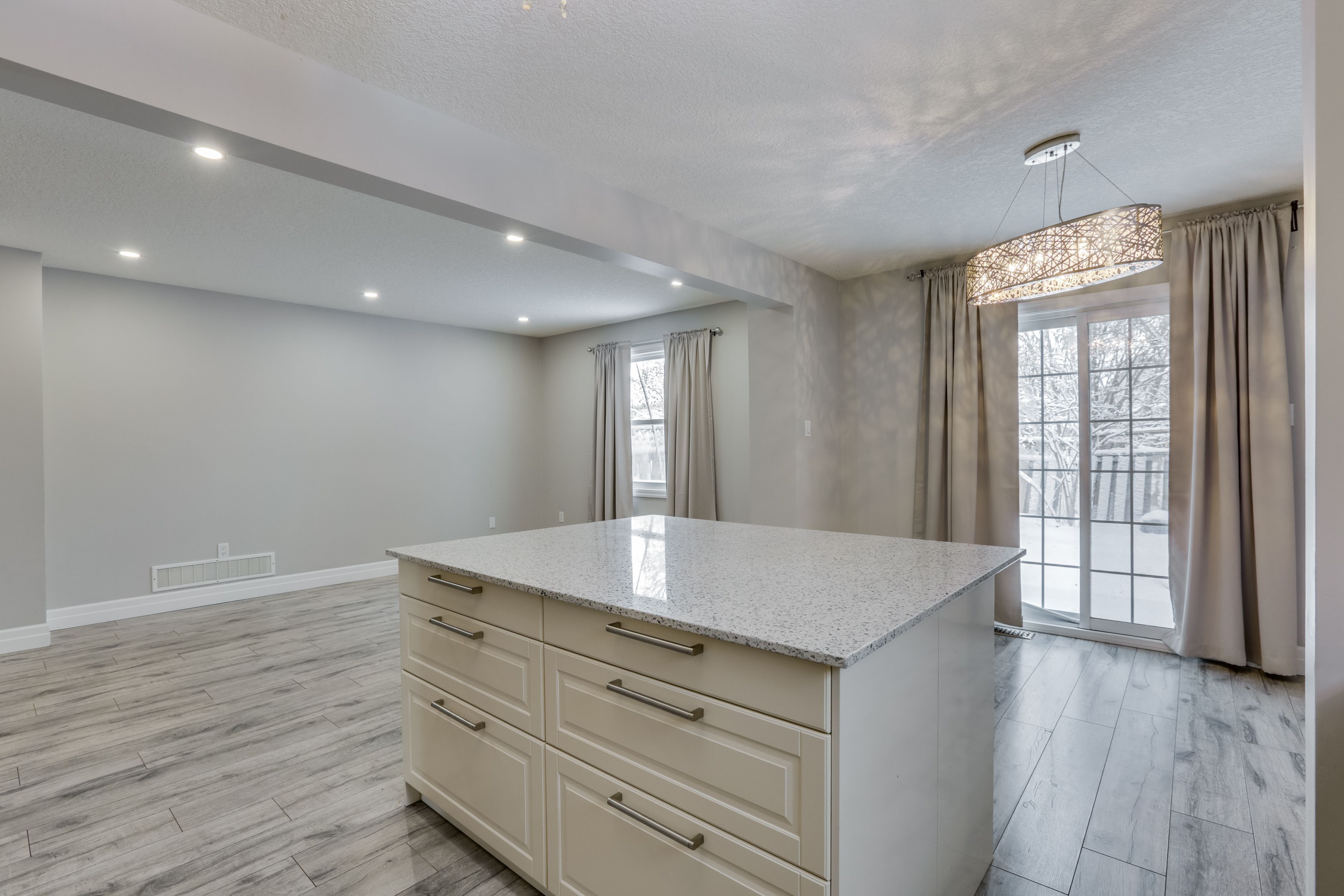 Incredible location and spacious home, perfect size for a growing family. Enjoy an open concept main floor with laminate flooring and beautiful upgraded light fixtures and pot light galore. Elegant kitchen with granite countertops, generous size kitchen island perfect for entertaining your guests. Enjoy a spacious living room and main floor 2 piece powder. Traditional dinette area with sliding doors walks out to huge backyard. Second floor offers a wood staircase with iron pickets. Master features a semi-ensuite bath and large double door closets. Upstairs bathroom is very spacious and has a convenient double sink vanity. Home is very cozy and feels very private, super clean, well-kept home with lots to offer. Beautiful, finished basement with pot lights and open concept floor for plan. Roof completed last year2024. Home also has a side garage entry. Check out the huge back yard, great for entertaining, lots of parking and much more. Close to schools, parks, trails, shopping and restaurant.